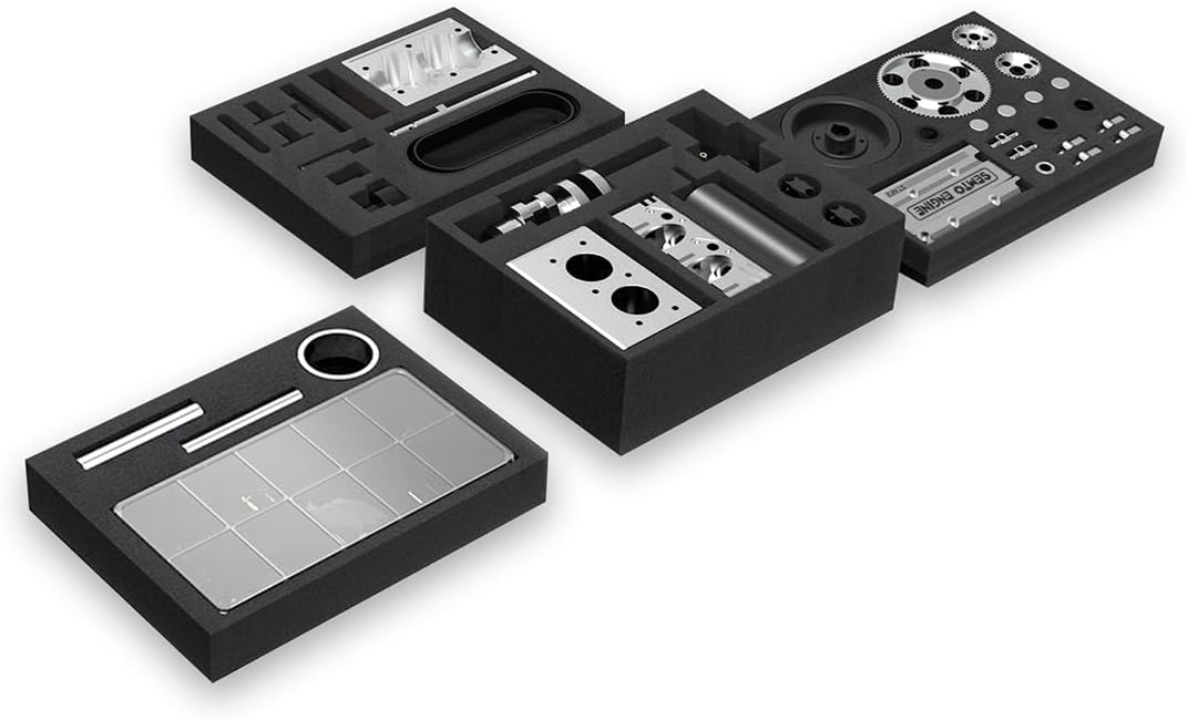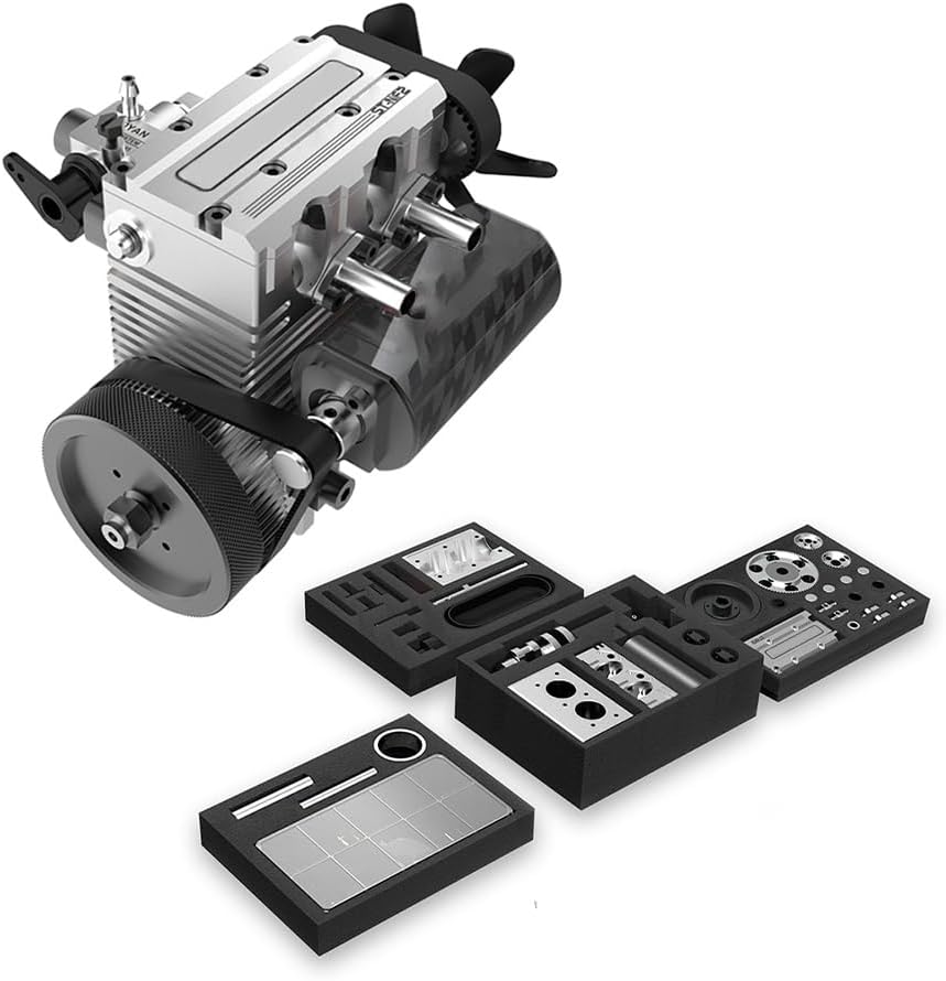 ️Design realistico e sportivo: modello mini motore altamente dettagliato con look sportivo rosso che riproduce autenticamente la dinamica e l'aspetto di un vero motore ad alte prestazioni. Ideale per collezionisti, modellisti e appassionati di tecnologia. Lavorazione di precisione in alluminio CNC: realizzato in alluminio di alta qualità lavorato a CNC e anodizzato per una superficie elegante, struttura compatta e peso leggero: robusto, durevole e visivamente accattivante. Doppia trasmissione a cinghia dentata e tecnologia di precisione: con doppia cinghia sincrona, leva a bilanciere corta e albero motore asincrono per un controllo preciso della valvola, alta scorrevolezza e forte potenza, fino a 16.000 giri/min. Avviamento elettrico semplice: dotato di un potente motore CC a 480 spazzole per un avvio fluido e confortevole. Nuovo carburatore per una regolazione più facile e una risposta dell'acceleratore più sensibile. Perfetto per modellismo, insegnamento e idee regalo: compatibile con ingranaggi per molteplici applicazioni. È adatto come opera d'arte meccanica, strumento didattico in fisica e tecnica o come regalo esclusivo per gli appassionati di motori e modellismo.