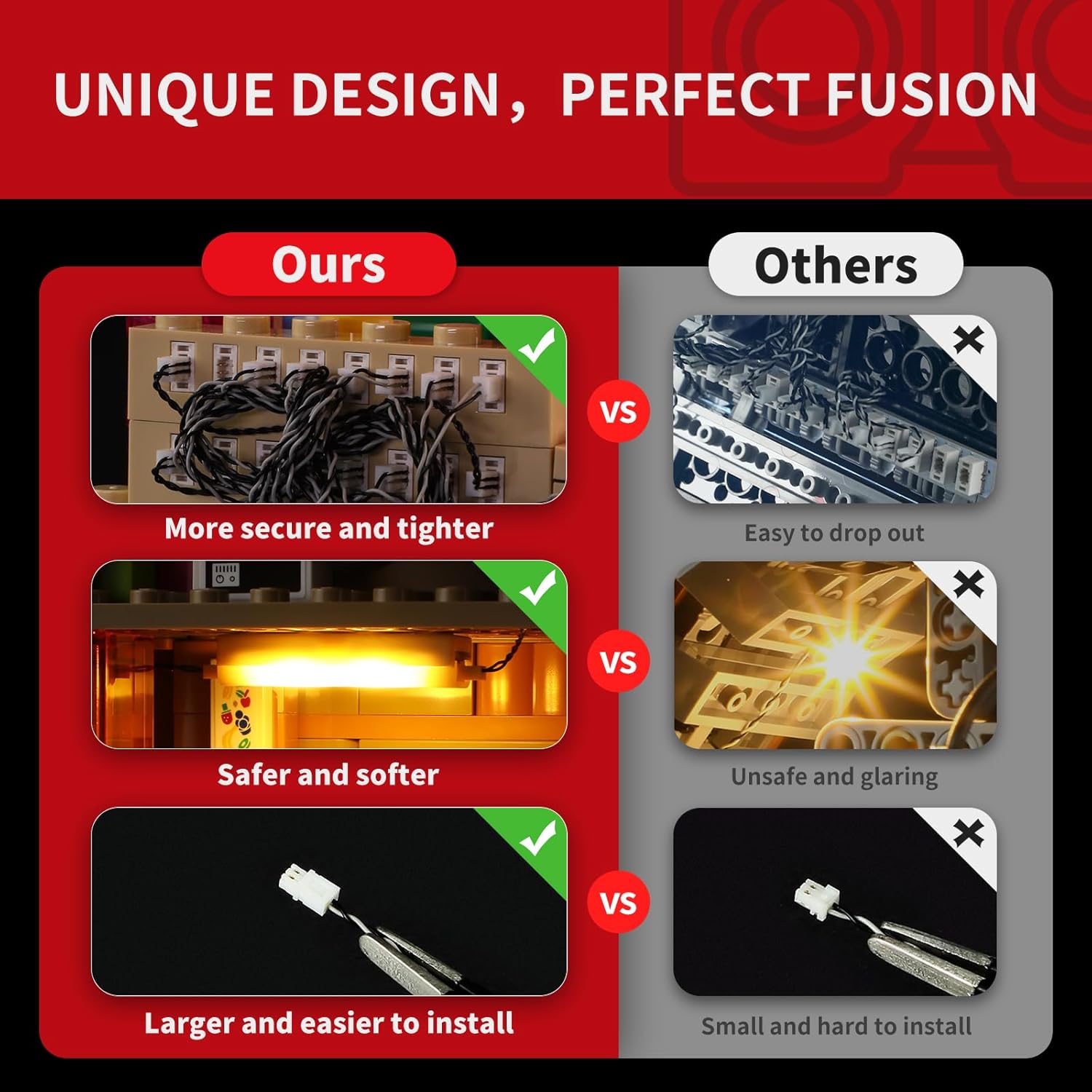 Effetti di illuminazione innovativi: progettato per Lego 21360, questo kit di luci dà vita al tuo Lego Willy Wonka e alla fabbrica di cioccolato con colori vivaci, creando un display visivo vivido e realistico. Artigianato aggiornato: luci e schede di espansione aumentano un guscio di mattoni, riducendo i componenti esposti. Il montaggio e lo smontaggio più facili migliorano la sicurezza e l'estetica. Design originale: le parti organizer per cavi di nuova concezione aiutano a nascondere i fili, prevenendo la rottura e garantendo una vestibilità ordinata per il tuo kit Lego Willy Wonka e Chocolate Factory. Fai da te flessibile: gli accessori indipendenti rendono l'installazione flessibile. È possibile smontare i punti luce per creare un effetto di visualizzazione unico per il tuo set Lego. Servizio caldo: i kit di legatura a LED BRIKSMAX sono realizzati con materiali sicuri e affidabili. Se ci sono parti danneggiate o mancanti, vi preghiamo di contattarci per una sostituzione.