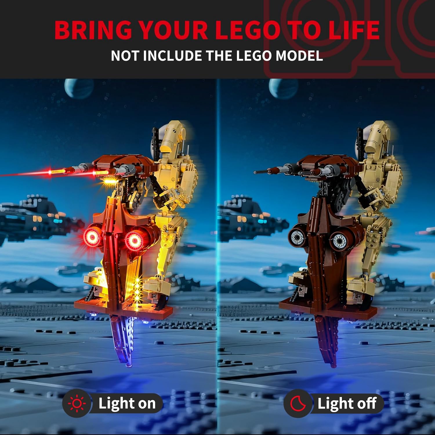 Design innovativo: progettato per Lego 75428, con questo kit di luci, puoi portare il tuo Lego Battle Droid con STAP dal buio al luminoso, farlo prendere vita. Artigianato brillante: sulla premessa di utilizzare materiali sicuri e affidabili, l'uso di luci diverse e nascondere le linee può rendere l'effetto di visualizzazione del modello è più perfetto. È una grande aggiunta per i collezionisti di modelli che vogliono aggiungere maggiori dettagli ai loro set. Facile da installare: con istruzioni passo-passo, troverai un modo più semplice per goderti il piacevole processo fai da te e fare un enorme aggiornamento al tuo kit di costruzione preferito. Servizio caldo: facciamo sempre del nostro meglio per fornire prodotti di buona qualità e un servizio eccellente ai nostri clienti. Se hai difficoltà con il tuo prodotto, ti preghiamo di inviarci un'e-mail, ti aiuteremo a risolvere il problema in tempo. Regalo perfetto: l'illuminazione brillante BRIKSMAX è una grande aggiunta per i fan LEGO, i collezionisti di modelli che vogliono aggiungere maggiori dettagli ai loro set.