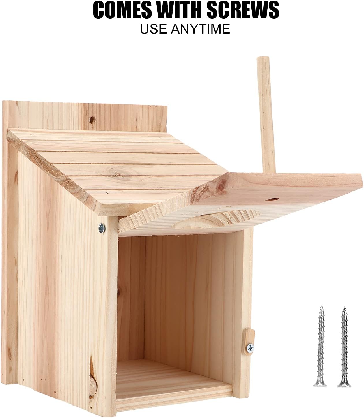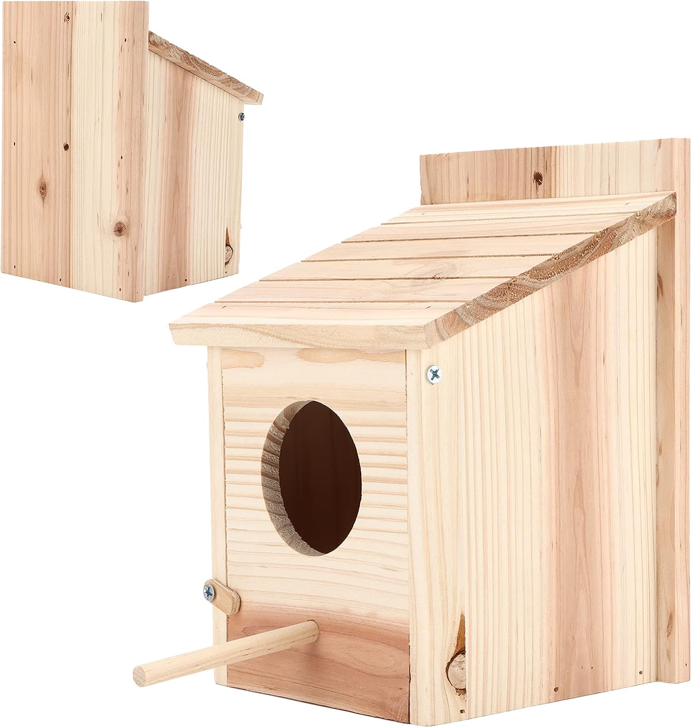 【Design del tetto inclinato】 Caratterizzate da un design inclinato ben congegnato, le casette per uccelli in legno consentono all'acqua piovana di defluire in modo efficiente, mantenendo l'interno asciutto e confortevole per gli uccelli nidificanti, anche durante forti piogge. 【Pannello frontale accessibile】 Il pannello frontale di Wooden Birdhouse può essere aperto per un facile monitoraggio dell'attività degli uccelli. Questa caratteristica consente ai pulcini di entrare facilmente e fornisce un'uscita per i pulcini maturi quando sono pronti a volare. 【Struttura robusta】 Dotata di un'asta fissa per un facile accesso, la casetta per uccelli in legno supporta gli uccelli mentre riposano, stanno in piedi e entrano nel nido. Questo design accurato promuove un ambiente sicuro e confortevole per la crescita dei giovani uccelli. 【Installazione semplice】 La casetta per uccelli in legno viene fornita con viti incluse, rendendo l'installazione un gioco da ragazzi. Può essere montato su recinzioni, alberi o pilastri, offrendo flessibilità di posizionamento per attirare gli uccelli nel tuo giardino. 【Materiale naturale】 La casetta per uccelli è realizzata con tronchi naturali, fornendo una struttura robusta con una bella grana e una fragranza intrinseca di legno. Questo design garantisce sicurezza sia per gli uccelli che per le persone, rendendolo un'aggiunta a qualsiasi giardino.