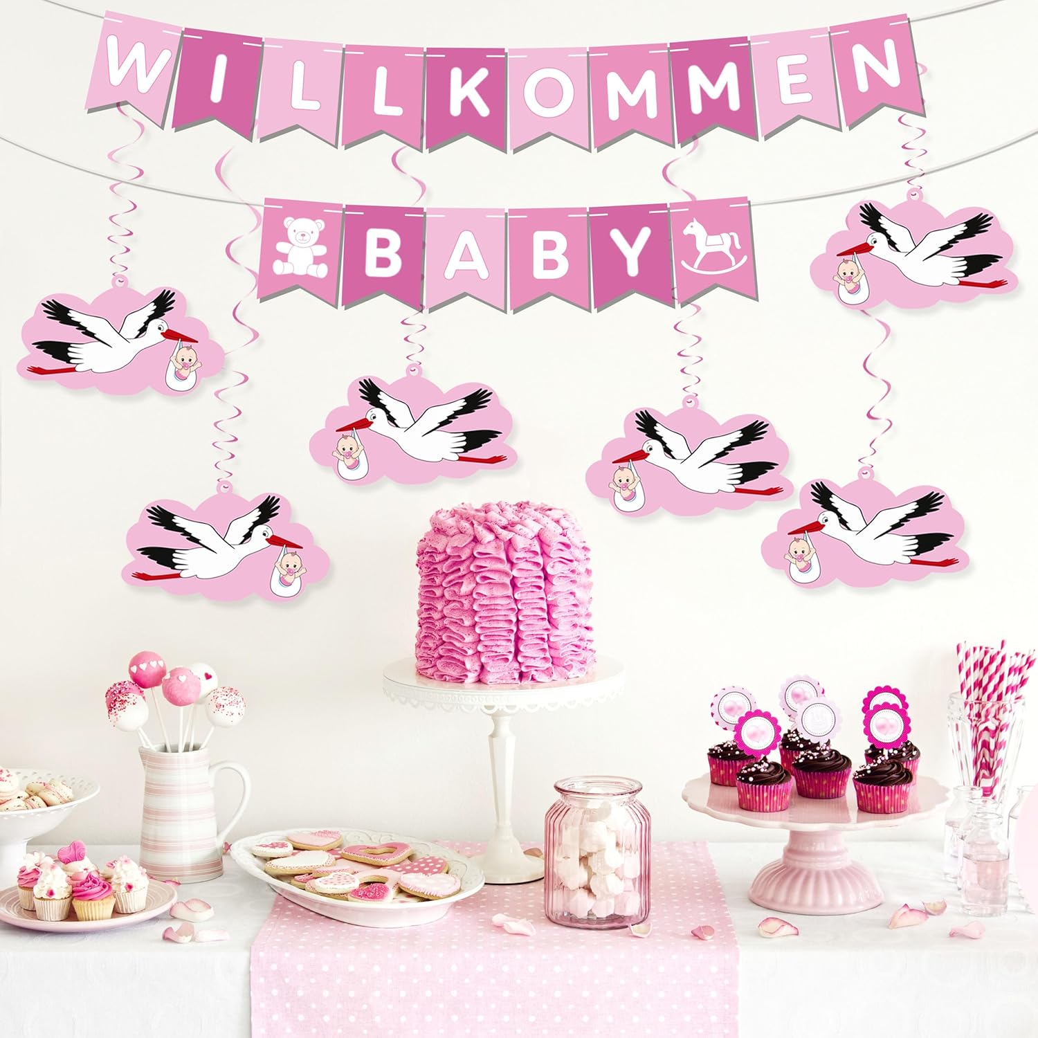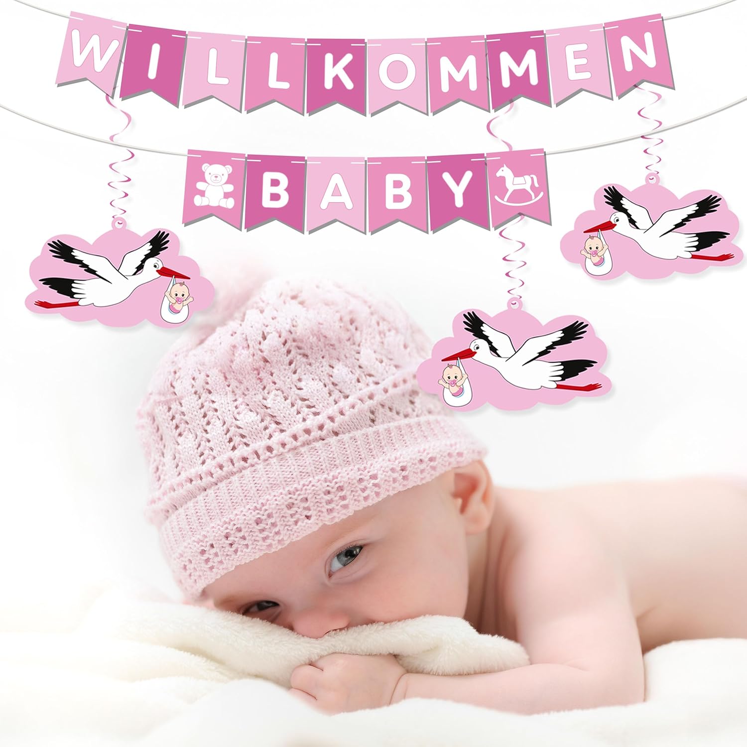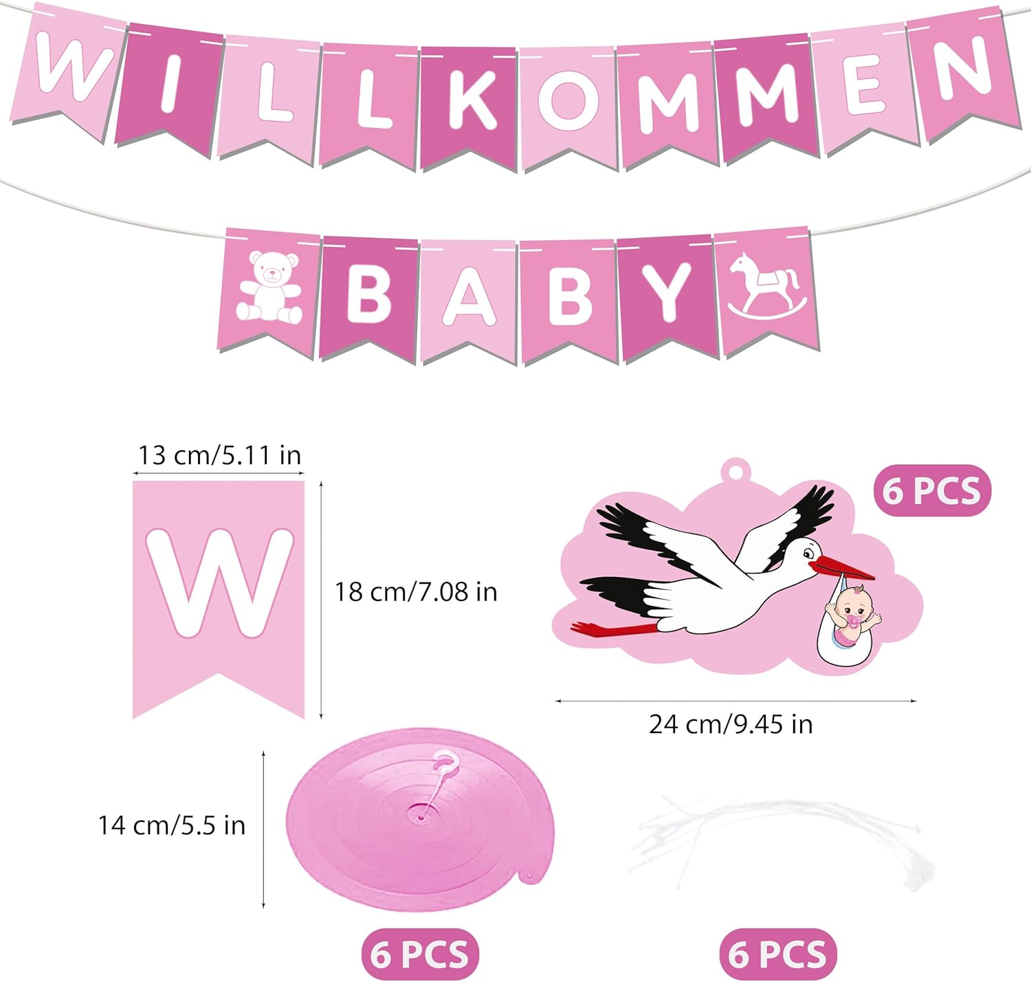 🎈 Adorabili ghirlande: il set di ghirlande Welcome Baby contiene due ghirlande festive, una con "Welcome" e una con "Baby". Ogni ghirlanda misura 2,8 metri e crea un'atmosfera allegra ad ogni baby shower o battesimo. 👶 Graziosi ciondoli a forma di cicogna: sono inclusi sei ciondoli a forma di cicogna disegnati con amore che portano un panno con un bambino nel becco. Questi affascinanti ciondoli non solo portano gioia ma anche un tocco di tradizione alla tua celebrazione. 🌟 Spirali lucenti: il set contiene sei spirali lucide che fungono da grucce per le cicogne. Questa decorazione a forma di spirale dona alla vostra ghirlanda per bambini un effetto visivo speciale e la rende una vera attrazione. 🎨 Materiali di alta qualità: sia i gagliardetti che i pendenti con la cicogna sono realizzati in cartone artigianale di alta qualità, che garantisce stabilità e longevità. Le spirali lucide sono realizzate in plastica robusta, così potrai goderti la decorazione a lungo. 🎉 Scelta versatile dei colori: il set di ghirlande è disponibile in rosa e blu, perfetto per ragazzi e ragazze. Questi colori classici si adattano ad ogni baby shower e battesimo e creano un'atmosfera festosa che delizia tutti gli ospiti.