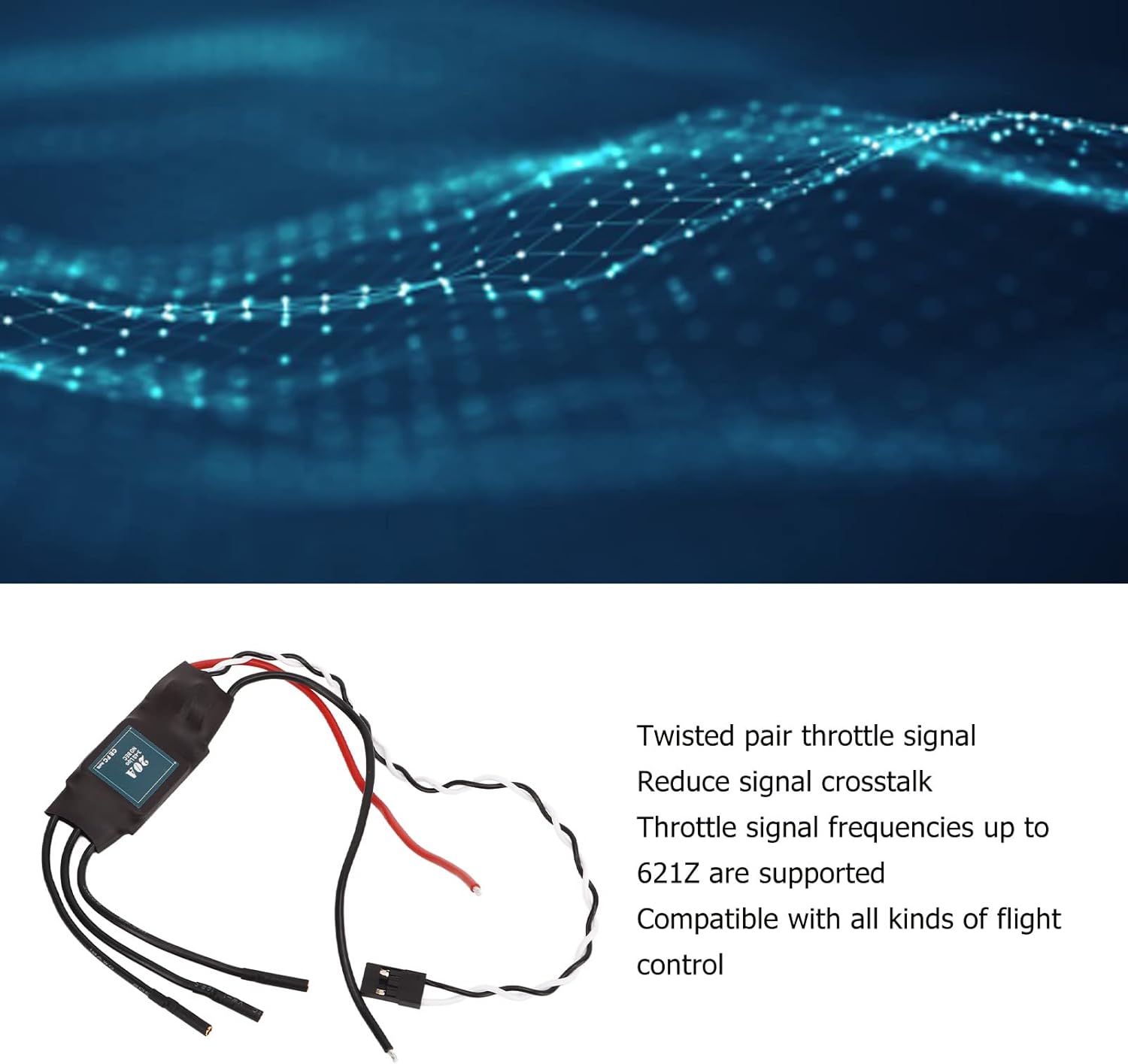 [ALTE PRESTAZIONI] Questo controller brushless da 20 A ha un programma speciale progettato specificamente per le applicazioni ad ala fissa. La tecnologia avanzata di risposta dell'acceleratore fornisce un'accelerazione più rapida e un funzionamento più fluido, rendendolo ideale per auto RC, barche ed eliche subacquee ad alta velocità. Il suo design ottimizzato riduce al minimo la perdita di potenza e offre efficienza e prestazioni superiori per le tue avventure RC. [FACILE DA USARE] Progettato pensando alla facilità d'uso, questo controller brushless intelligente offre forti capacità di personalizzazione e impostazioni semplificate. Grazie alla disponibilità delle sole opzioni con angolo di ingresso alto e medio, l'installazione è semplice e senza sforzo. Che tu sia un principiante o un hobbista esperto, apprezzerai la funzionalità plug-and-play che ti consentirà di essere subito operativo. [TRASMISSIONE DEL SEGNALE STABILE] Dotato di tecnologia del segnale d'arresto a doppino intrecciato, questo regolatore riduce efficacemente la diafonia e le interferenze nella trasmissione del segnale su fili di rame. Ciò si traduce in prestazioni più stabili e affidabili, il che è particolarmente importante per il volo di precisione e le gare ad alta velocità dove la risposta coerente dell'acceleratore è fondamentale. [SUPPORTO] Il design avanzato di questo controller brushless supporta le frequenze del segnale dell'acceleratore con frequenze di aggiornamento fino a 621 Hz, garantendo un controllo altamente reattivo. Questa funzionalità è adatta per applicazioni impegnative che richiedono una risposta istantanea dell'acceleratore e un controllo preciso, rendendoti competitivo nelle gare o nelle manovre complesse. [AMPIA COMPATIBILITÀ] Questo versatile controller offre un'eccezionale compatibilità, funzionando perfettamente con programmi multi-rotore e vari sistemi di controllo di volo. Sia che lo utilizzi per auto, barche o aerei telecomandati, il suo design intelligente si adatta a diverse configurazioni. Lo stabilizzatore di tensione lineare BEC e il supporto per 3 batterie al litio 4S aumentano l'attrattiva per vari