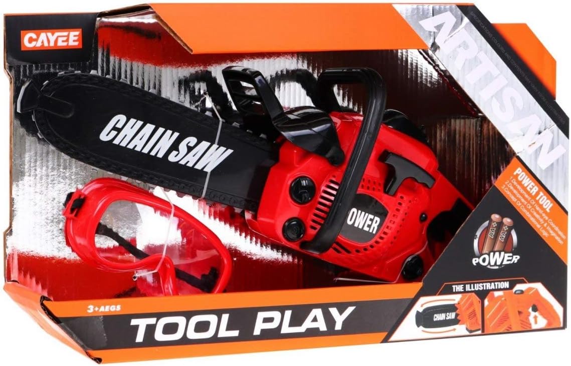 Questo giocattolo imita perfettamente una vera motosega. Produce suoni realistici e ha una catena di gomma rotante sicura. Dimensioni ; - altezza circa 15 cm ; - larghezza ca. 10 cm ; - ca. 41 cm di lunghezza ; Dimensioni imballo: 39,5 cm x 23 cm x 11 cm. Contenuto del kit ; - visto, ; - occhiali. ; Il giocattolo è destinato a bambini dai 3 anni e ha il certificato CE. ; Il giocattolo è alimentato da 3 batterie AA (non incluse).