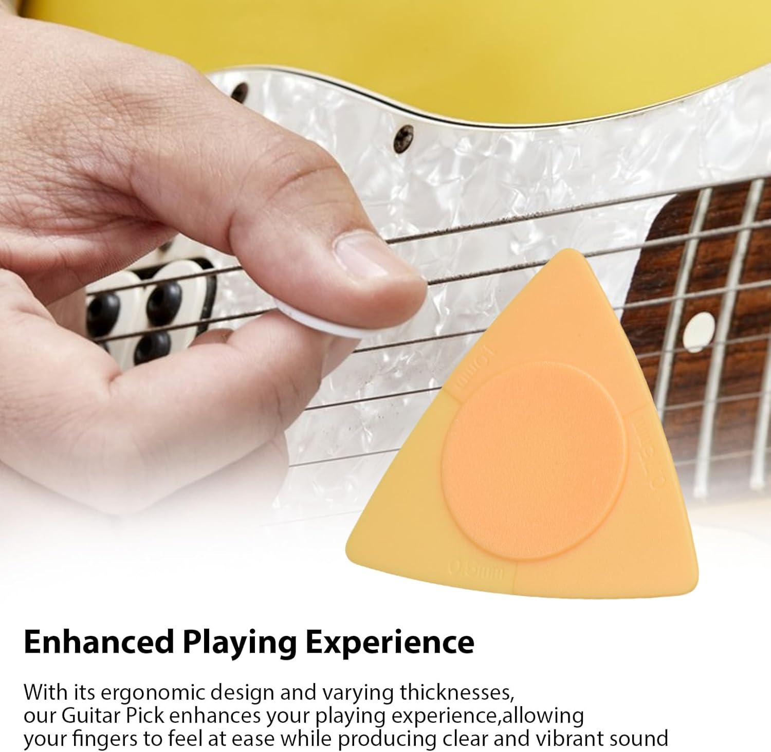 Facilmente trasportabile: questa selezione di chitarre è facile da trasportare, rendendola un accessorio conveniente per i musicisti in movimento. Mettilo in tasca o in una borsa da concerto senza problemi! Design liscio: la selezione fluida della chitarra garantisce una presa comoda e facilita le lunghe sessioni di pratica o esibizioni, così puoi suonare con sicurezza. Esperienza di gioco migliorata: con il suo design ergonomico e diversi spessori, la nostra selezione di chitarre migliora la tua esperienza di gioco e consente alle tue dita di sentirsi a proprio agio producendo un suono chiaro e vibrante. Materiale robusto: realizzata in ABS, questa scelta di chitarra è progettata per durabilità e longevità, garantendo che possa resistere ai rigori dell'uso quotidiano offrendo allo stesso tempo prestazioni. Opzioni di spessore versatili: la nostra selezione di chitarre è disponibile in tre diversi spessori - 0,5 mm, 0,75 mm e 1,0 mm - tra cui scegliere per adattarsi al tuo stile di gioco e alle tue preferenze.