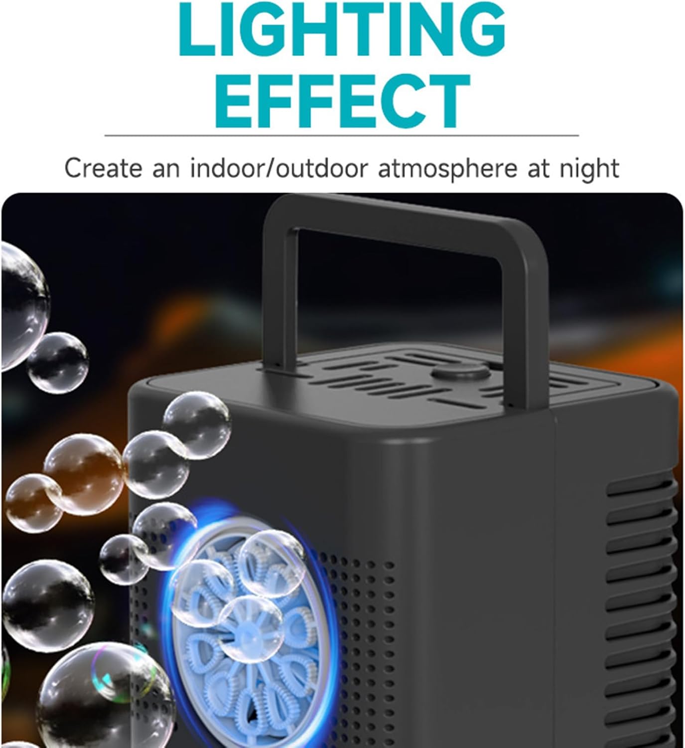 Densa Bubble Delight: goditi il divertimento senza sforzo generando bolle dense e installazione rapida, con un controllo a pulsante che garantisce un'attivazione immediata per un ambiente vivace e coinvolgente Produzione di bolle efficiente: con un sistema di flusso d'aria ad alta efficienza, questa macchina per bolle raggiunge un rilascio continuo di bolle mantenendo prestazioni fluide e distribuzione uniforme delle bolle durante l'uso Ciondolo a bolle facile da viaggio: la struttura robusta supporta le esigenze di intrattenimento all'aperto, il design portatile offre una praticità senza pari, rendendolo ideale per diverse impostazioni garantendo una facile mobilità in qualsiasi momento Tecnologia a prova di fuoriuscite: con un serbatoio a prova di perdite da 400 ml e un'ingegneria avanzata a prova di fuoriuscite per fornire prestazioni affidabili per ore di divertimento continuo Miglioramento visivo vivido: con un modulo LED integrato, questo dispositivo produce effetti di luce dinamici che creano un ambiente coinvolgente, arricchito da cambiamenti automatici del colore e semplice controllo dei pulsanti
