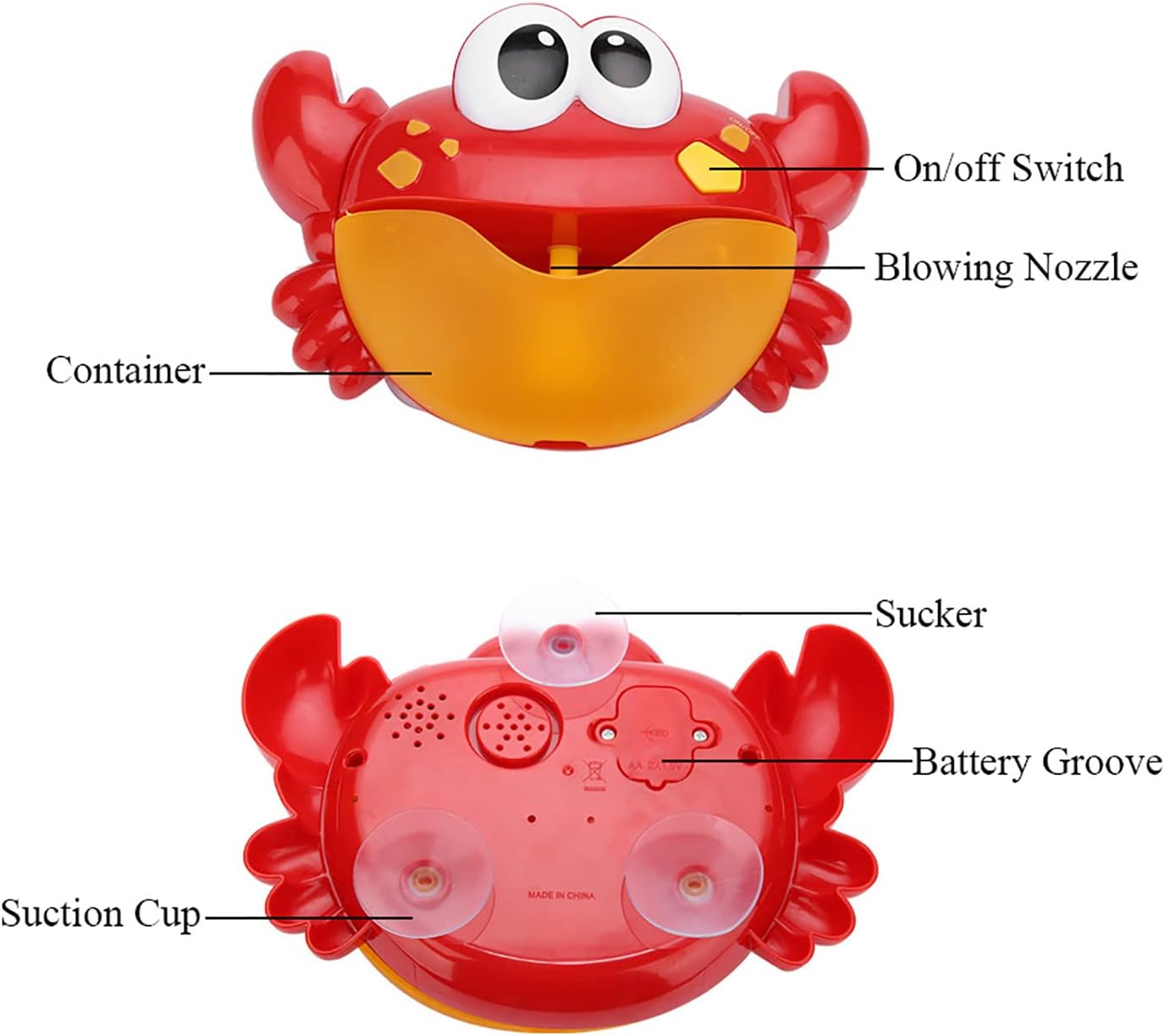 Questo soffiatore a è realizzato in plastica ecologica, non tossica, buona tenacia, robusta e confina con La modella di granchio dei cartoni animati è così carino e interessante, la sua bocca fa esplodere innumerevoli e crea un mondo di da sogno per i bambini Caratteristiche con 12 classiche musica incorporata, che può portare grande felicità per il bagno Può essere saldamente fissato alla vasca o sulla parete del bagno con 3 pc forti di aspirazione Giocattolo da bagno che rende la sala da bagno piena di risate e fa il tuo bambino amare