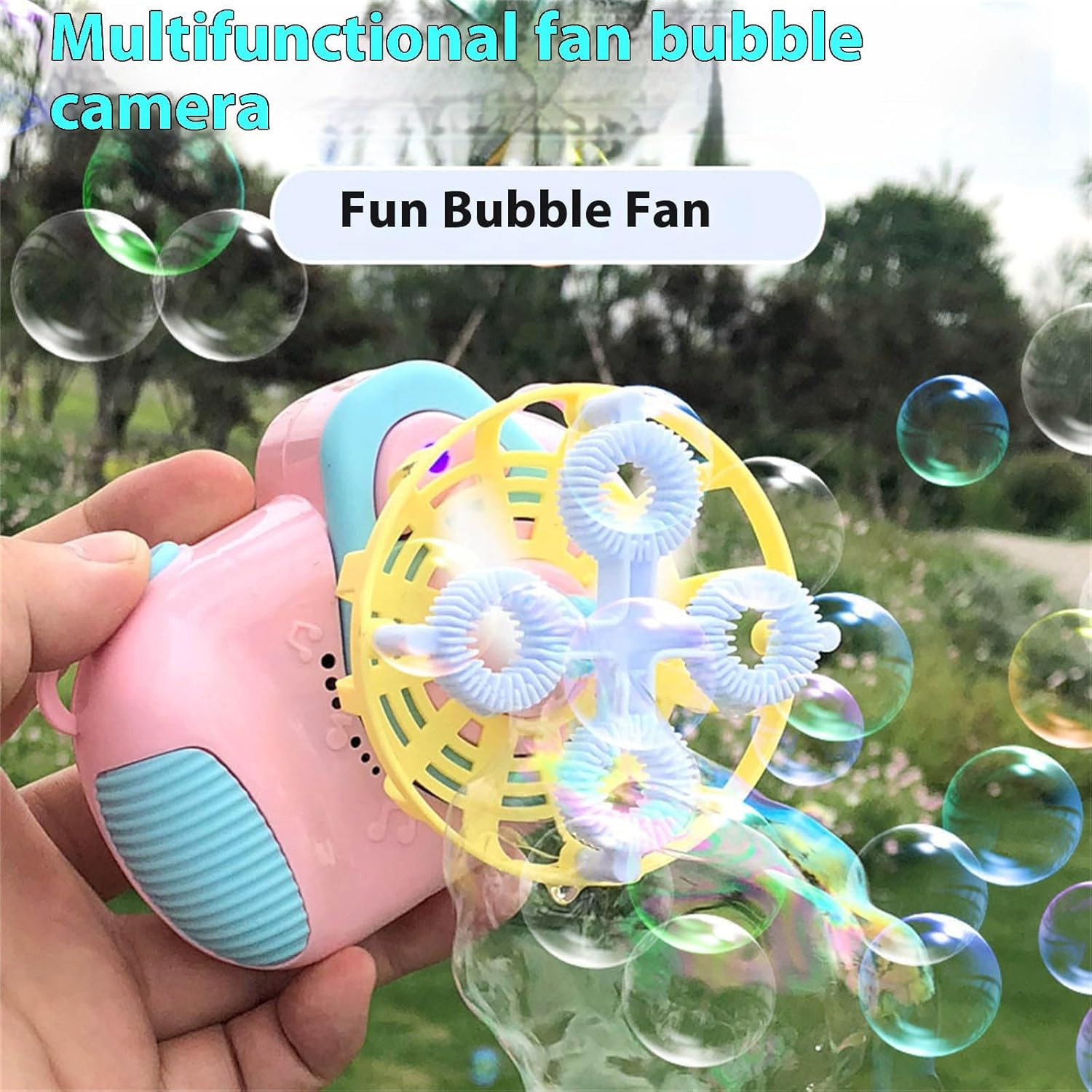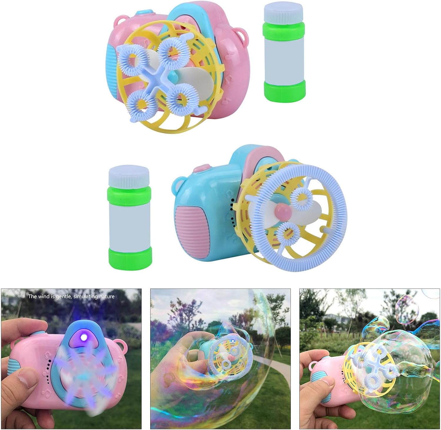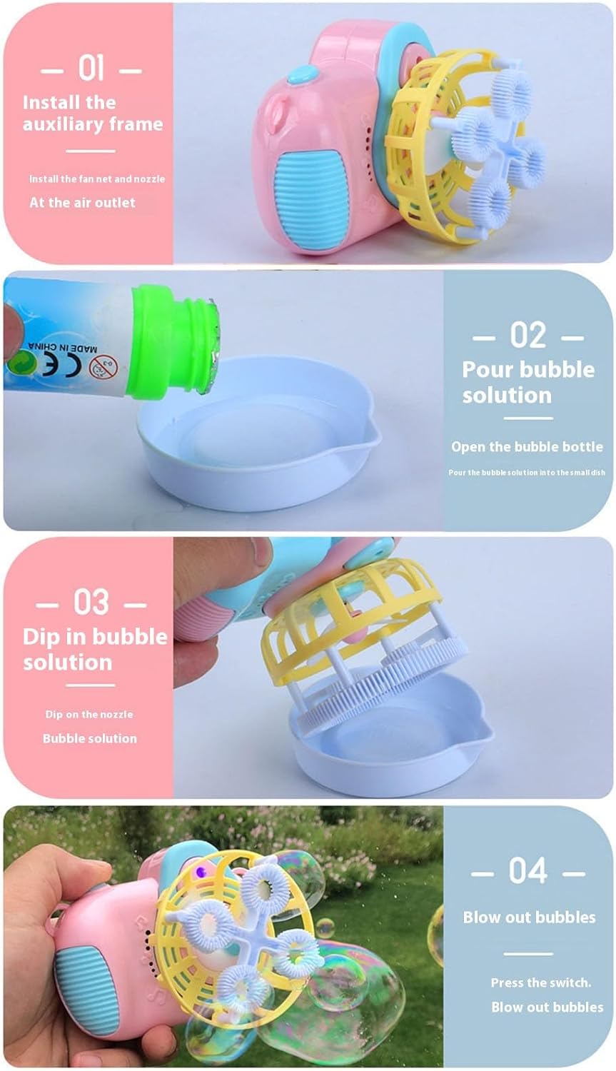 Design per bambini di 3+ per esplorare il gioco sensoriale in modo sicuro Usa il controllo dei pulsanti a misura di bambino e facile da usare. Questa macchina a bolle elimina i problemi di montaggio complessi che si vedono nei tradizionali giocattoli a bolle in modo che i bambini possano sgorgare immediatamente la magia senza sforzo Perfetto per feste all'aperto, riunioni in giardino o giochi fantasiosi, trasforma il momento ordinario in una festa vivace con bolla vorticosa e allegre melodie Utilizzando plastica selezionata, questa telecamera a bolle di lavaggio della luce resiste all'uso ripetuto quando si dà priorità alla sicurezza dei bambini durante il gioco energetico Giocattolo automatico Bubble Blower con luce LED colorata e musica crea un divertimento infinito grazie alle semplici operazioni tattili, libera le correnti di bolle e illumina il tempo di gioco con stimolazione visiva e uditiva dinamica
