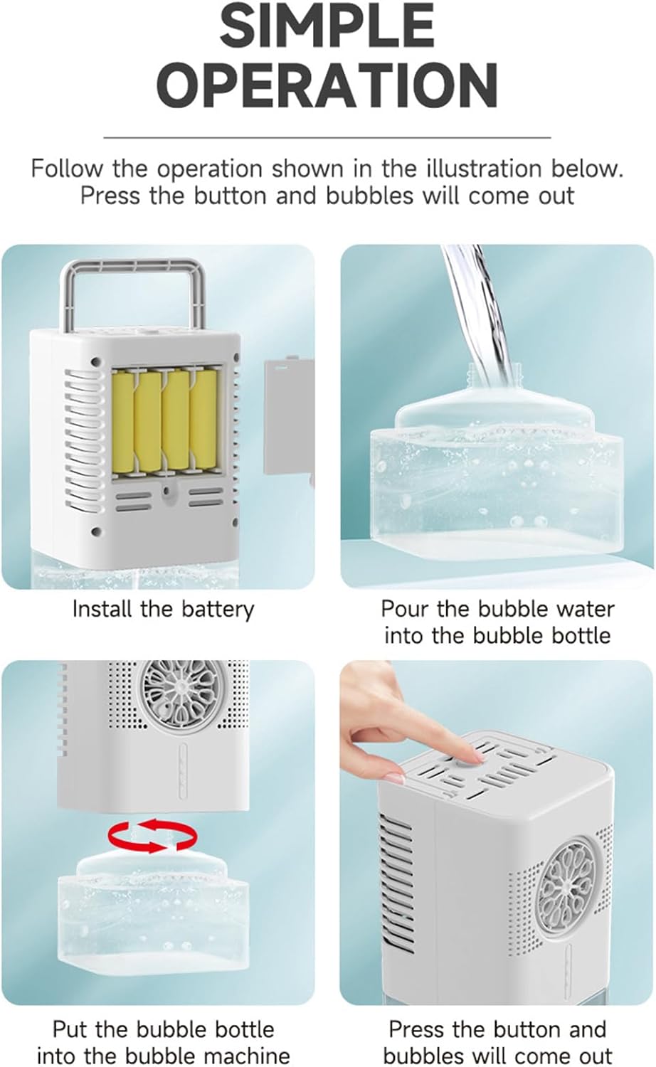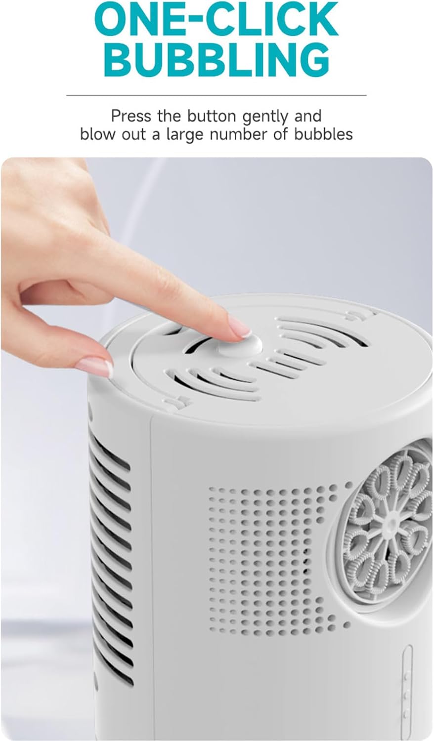 Attivazione istantanea del divertimento: prova il divertimento istantaneo con una macchina che offre un miglioramento dell'atmosfera senza sforzo, un montaggio rapido e un'abbondante produzione di bolle tramite attivazione a tocco singolo Efficiente produzione di bolle: dotata di un sistema di flusso d'aria ad alta efficienza, questa macchina per bolle raggiunge il rilascio continuo delle bolle mantenendo prestazioni fluide e distribuzione uniforme delle bolle durante l'uso Ciondolo a forma di bolla adatto ai viaggi: la costruzione robusta supporta le esigenze di intrattenimento all'aperto, il design portatile offre una comodità senza pari, rendendolo ideale per varie impostazioni garantendo una facile mobilità in ogni momento Design a prova di perdite: la tecnologia di tenuta ottimizzata impedisce fuoriuscite, mentre il grande serbatoio da 400 ml supporta prestazioni ininterrotte per un intrattenimento e un'affidabilità di lunga durata Attivazione touch: il modulo LED integrato genera un'atmosfera coinvolgente utilizzando l'illuminazione automatica a colori, elevando la vivacità visiva garantendo al contempo un facile funzionamento con l'attivazione dei pulsanti per un uso senza interruzioni