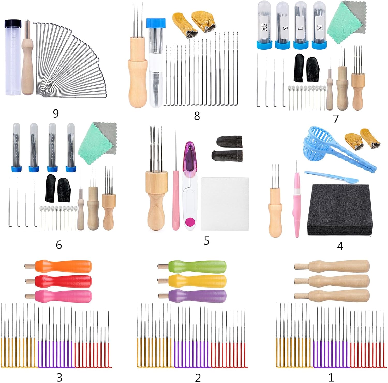 Ago accessorio in feltro perfetto per giocattoli di lana, tessuto non tessuto, materiale filato felch Più dimensioni è possibile utilizzare aghi diversi in base alle proprie esigenze. Felting lunghezza ago: S 79 mm), m 86 mm), L 91 mm L'ago in feltro è realizzato in ferro di metallo, duro e non facile da rompere Il kit per il felting dell'ago dispone di 3-4 misure di ago per felting, e il pacchetto include manici in legno e altri accessori, abbastanza per le vostre esigenze di base e la sostituzione Kit per principianti di avviamento in feltro: sulle superfici di questi kit c'è un olio per macchine e l'olio può aiutare