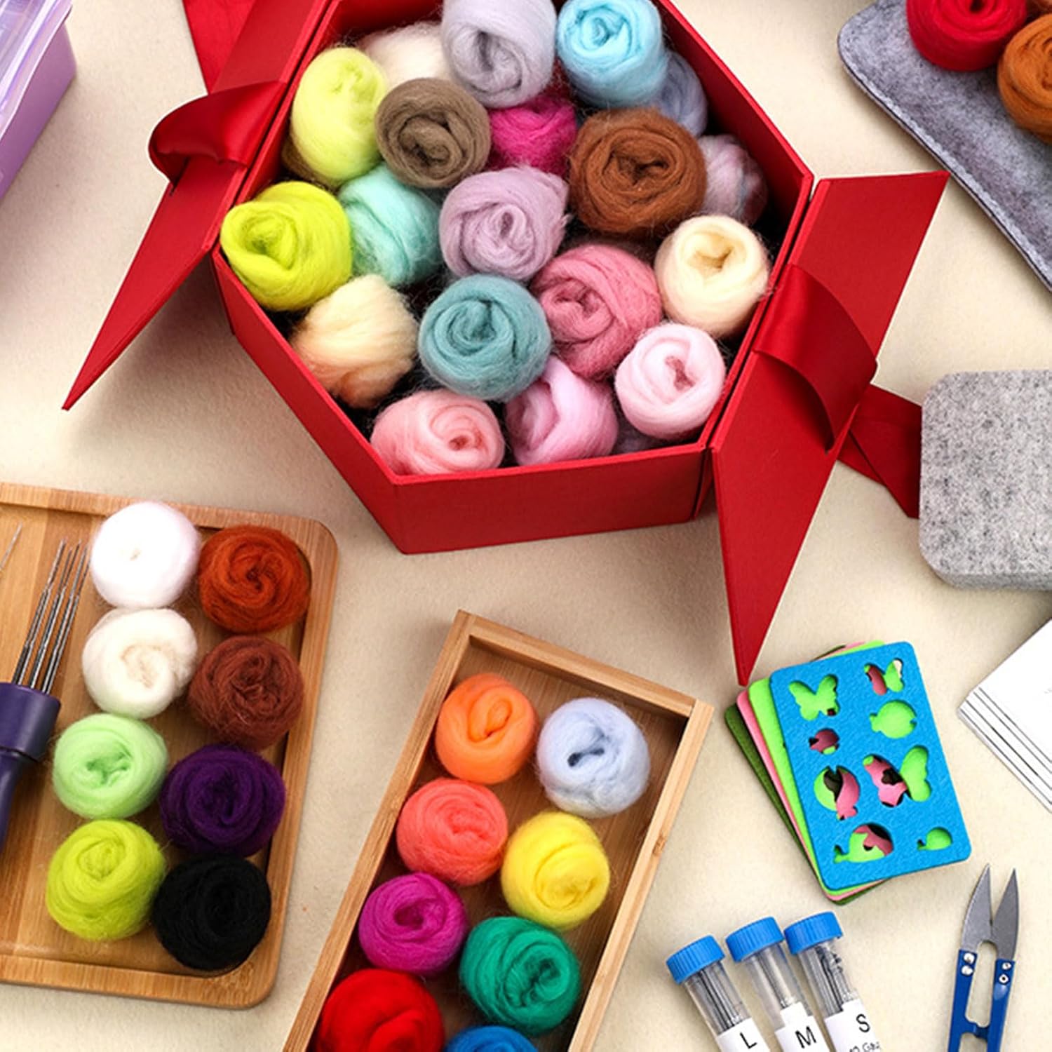 Perfetto per appassionati di artigianato, bambini e istituti scolastici che cercano espressione artistica Scatena la creatività e mostra il tuo lato artistico attraverso la creazione fatta a mano che riflette la tua individualità Kit di feltro con aghi di lana, aggiungi un tocco di stile alla tua decorazione domestica o crea artigianato come ornamenti e portachiavi Questo set di aghi è perfetto per decorazioni e facile da esplorare l'arte del mestiere della lana Set di aghi per la produzione di giocattoli e artigianato