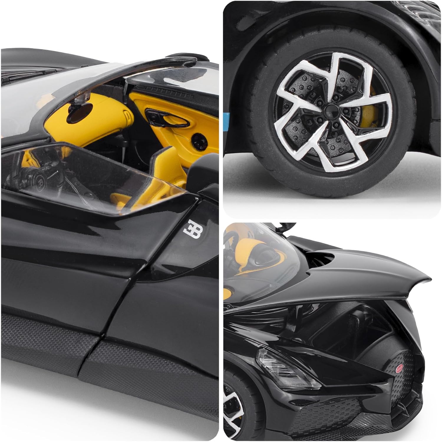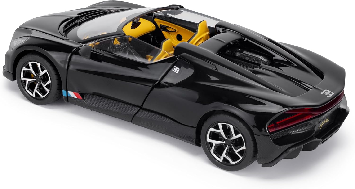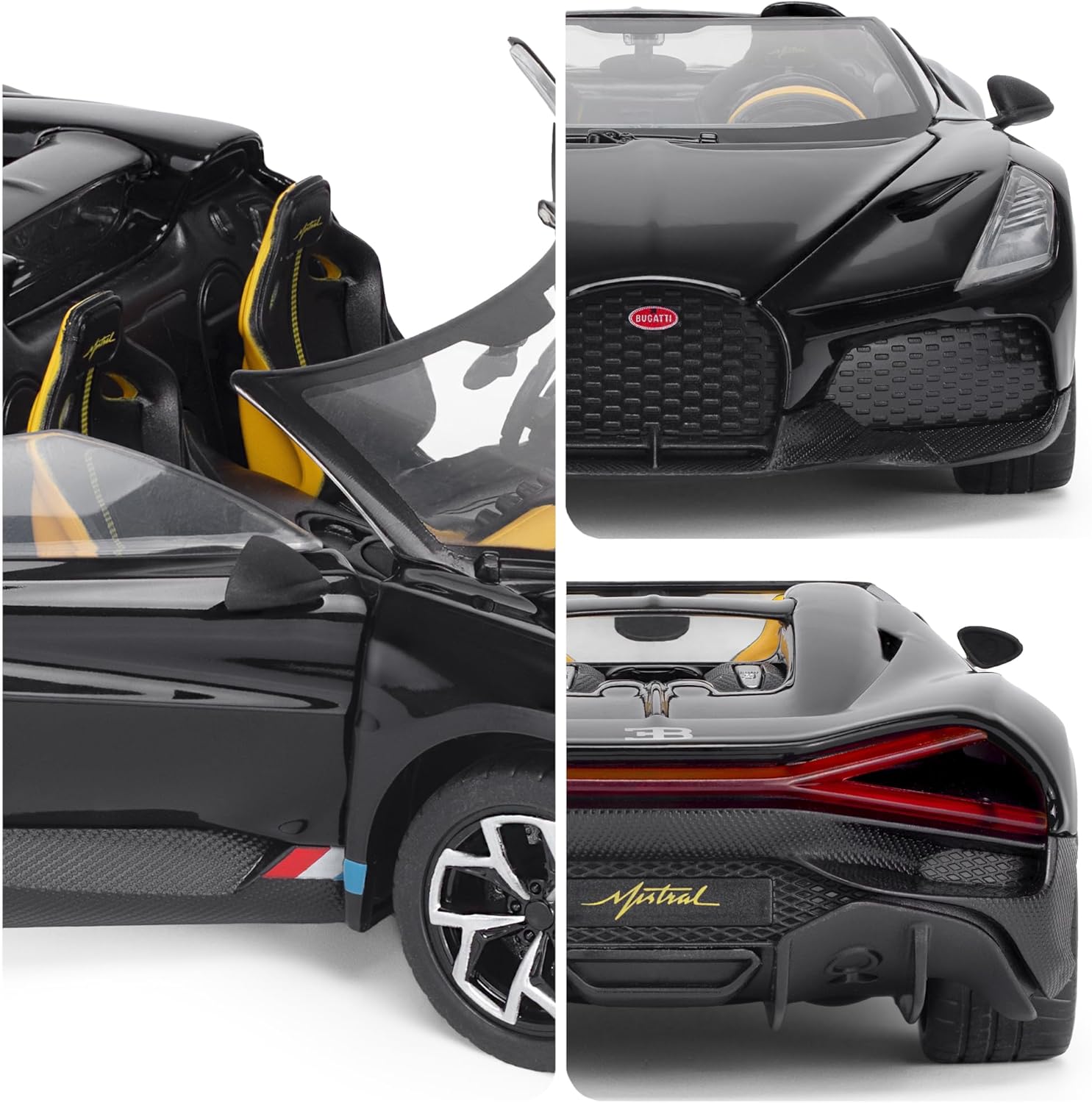 Licenza ufficiale Bugatti – Mistral modellino di auto pressofusa in scala 1:24 – giallo | edizione dettagliata da collezione pressofuso Fedele al design originale: questo modello di auto presenta vernice accattivante e loghi ufficiali degli sponsor, proprio come la vera auto da corsa. Dettagli autentici: include raffinati tocchi interni ed esterni per un maggiore realismo e fascino espositivo. Regalo perfetto o pezzo da collezione - Modello in scala 1:24 (misure: altezza 4,5 cm x larghezza 8 cm x lunghezza 19 cm) ideale per esposizione o giochi di luce Display pronto: fornito in una scatola di finestra per collezionisti, questo modello può essere rimosso dalla sua confezione in modo sicuro utilizzando un cacciavite.