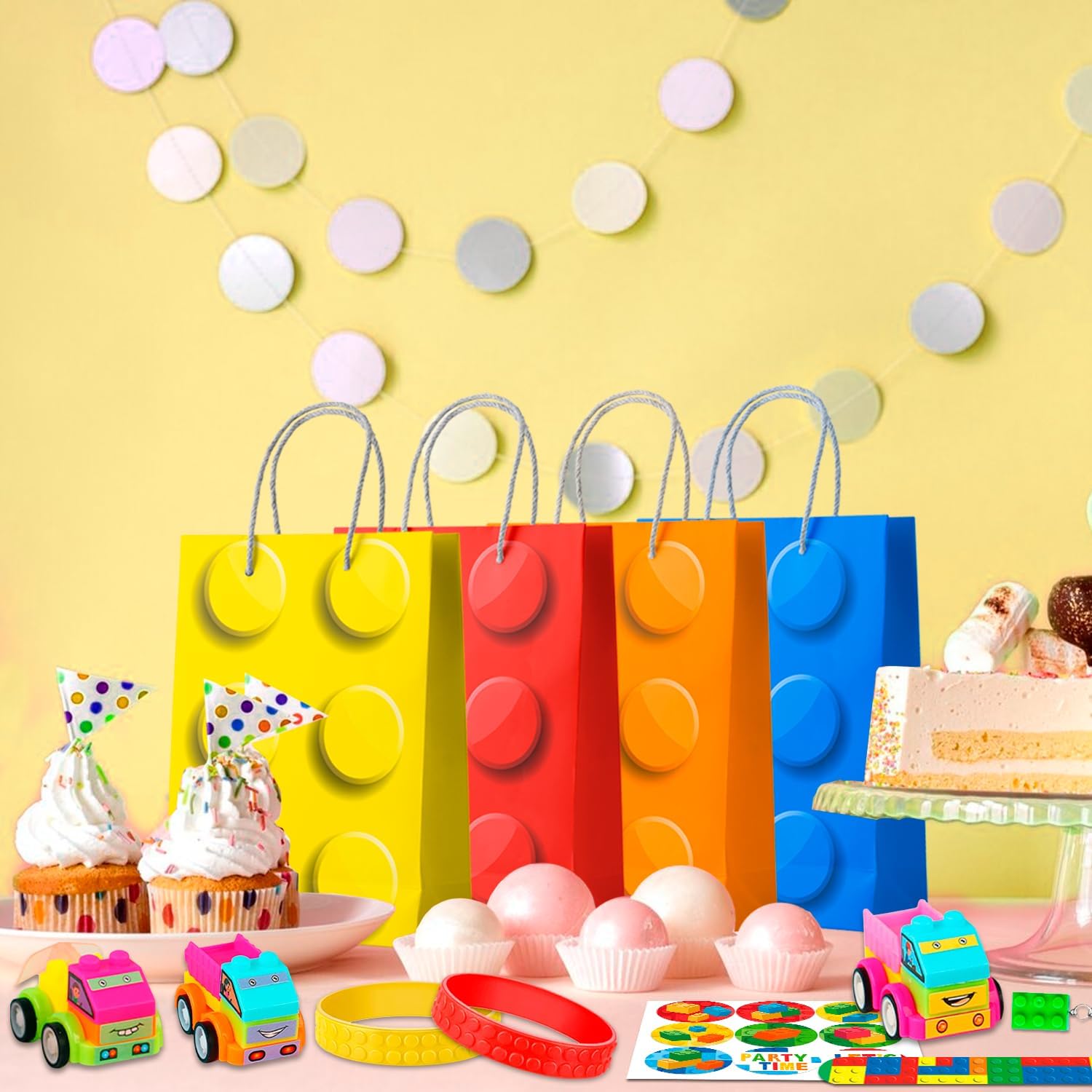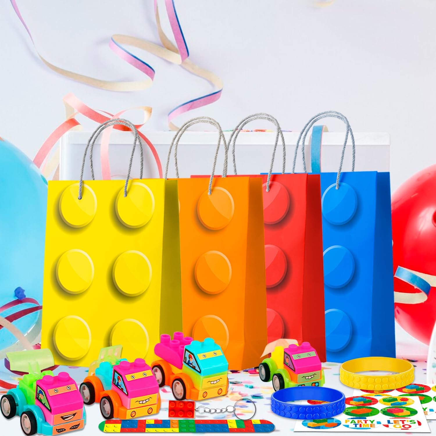 Decorazione Mattoncini Feste Regali: Il nostro set regalo mattoncini per feste di compleanno include 2 set di adesivi di feste mattoncini, 12 portachiavi mattoncini di compleanno, 12 mattoncini sacchetti regalo per compleanno etc blocchi decorazione compleanno Design Interessante: I regali di building block per feste decorazioni sono progettati ispirandosi a mattoncini colorati, abbinati a idee molto creative, in modo che questi mattoncini regalo per compleanno portino più sorprese agli ospiti Materiali di Alta Qualità: Tutti i regali di building block decorazioni di compleanno sono realizzati con materiali di alta qualità, come il sacchetto regalo a mattoncini realizzato con carta di alta qualità che non è facile da rompere Varietà di Varietà: Blocchi di costruzione gadget compleanno contiene una varietà di piccoli oggetti che possono ben soddisfare le esigenze individuali degli ospiti e offrire loro una migliore esperienza di feste di mattoncini Ampia Applicazione: Il souvenir per feste in mattoncini è ampiamente utilizzato in una varietà di occasioni, come feste di mattoncini, feste di compleanno mattoncini, riunioni di amici, attività extrascolastiche, ecc