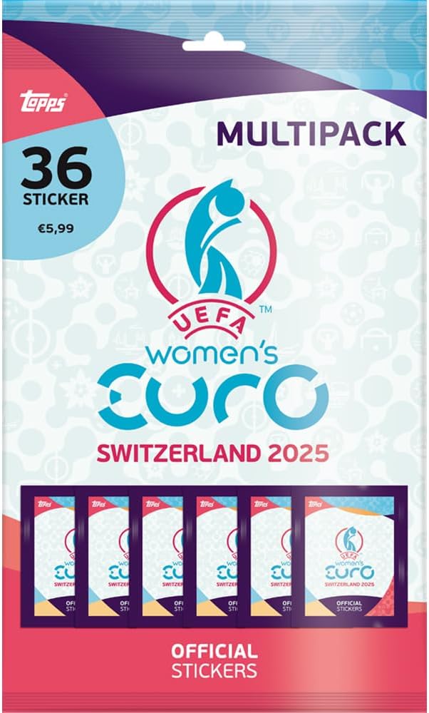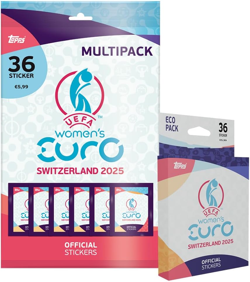 UEFA Euro 2025 Switzerland – Bundle con esclusivi maniche collect-it.de MY HOME OF CARDS + TOYS Riceverete 1 blister con 6 sacchetti + 1 confezione multipla con 6 sacchetti della serie Topps UEFA Women's Euro 2025 Switzerland 1 sacchetto contiene 6 adesivi 40 custodie collect-it.de MY HOME OF CARDS + TOYS esclusive Immergetevi nell'emozionante mondo della UEFA Women's Euro 2025 con la nostra esclusiva serie di adesivi Questa collezione offre oltre 300 adesivi di alta qualità che faranno battere il cuore di ogni tifoso di calcio. Ogni confezione di adesivi contiene una varietà di motivi, tra cui giocatori, squadre e momenti indimenticabili del torneo.