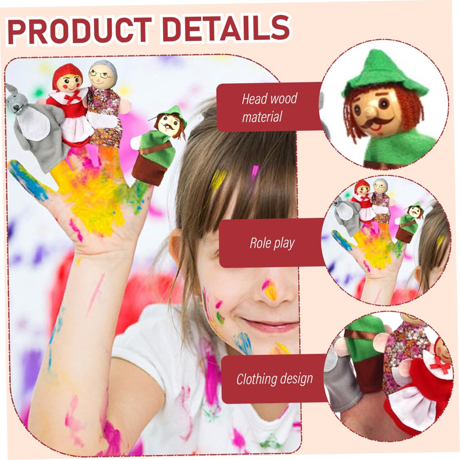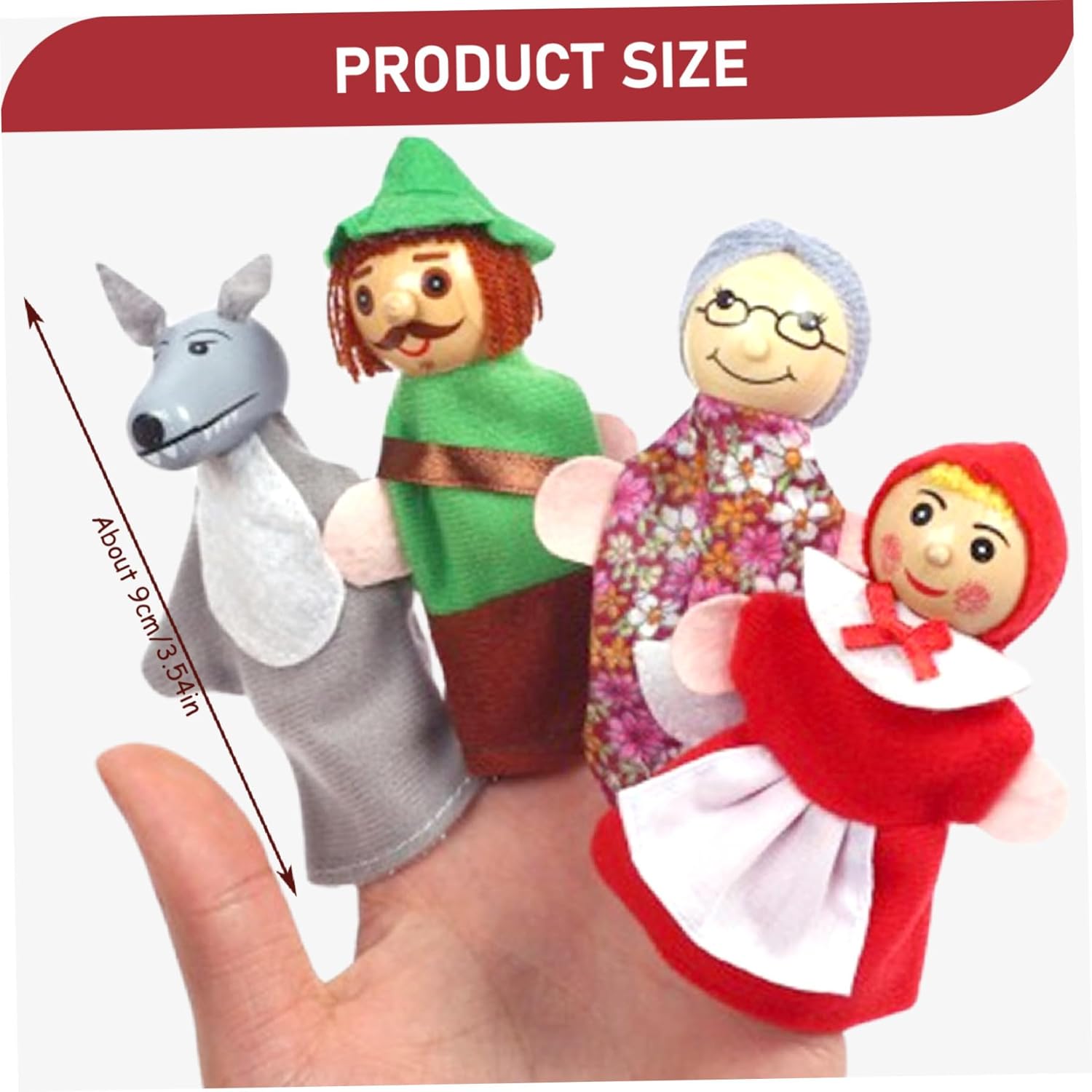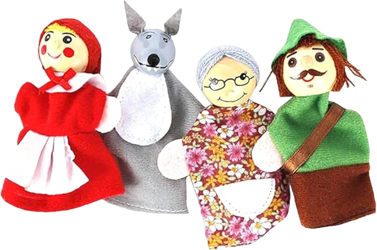 Dai vita al classico: con i personaggi di Cappuccetto Rosso, queste marionette permettono ai bambini di immergersi nelle storie classiche..Possono recitare ruoli, rendendo l'apprendimento divertente e sviluppando allo stesso tempo abilità linguistiche, comprensione ed espressione. Promuove lo sviluppo sociale ed emotivo: il gioco di ruolo con le marionette favorisce le abilità sociali e l'intelligenza emotiva..I bambini imparano a comunicare, lavorare insieme ed esprimere i propri sentimenti mentre impegnano in giochi fantasiosi con amici o familiari. Divertimento narrativo interattivo: queste marionette da 4 pezzi/set incoraggiano la narrazione interattiva, rendendolo uno strumento ideale per i bambini per ricostruire il loro preferito..Perfetti per i legami familiari o gli ambienti educativi, questi pupazzi stimolano la creatività e l'immaginazione. Perfetto per i più piccoli: queste marionette da mano sono perfette per compleanni, vacanze o qualsiasi occasione speciale..Sono adatti a neonati e bambini piccoli e offrono ore di intrattenimento e valore educativo. Materiali affidabili e sicuri: realizzati con materiali morbidi e sicuri, questi pupazzi sono durevoli e progettati per resistere ore di gioco..I genitori possono sentirsi sicuri che i loro figli giocano con giocattoli sicuri e a misura di bambino.