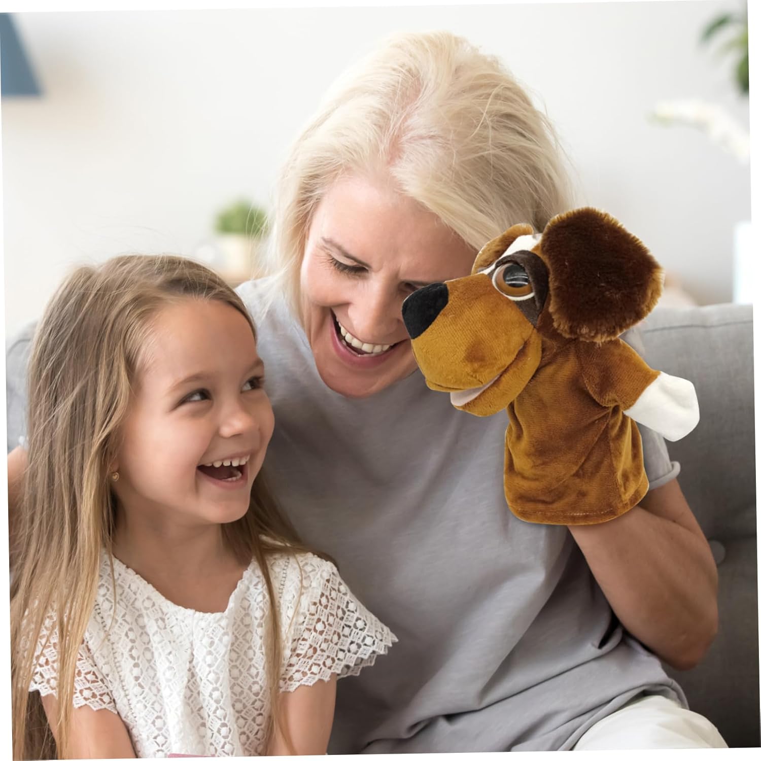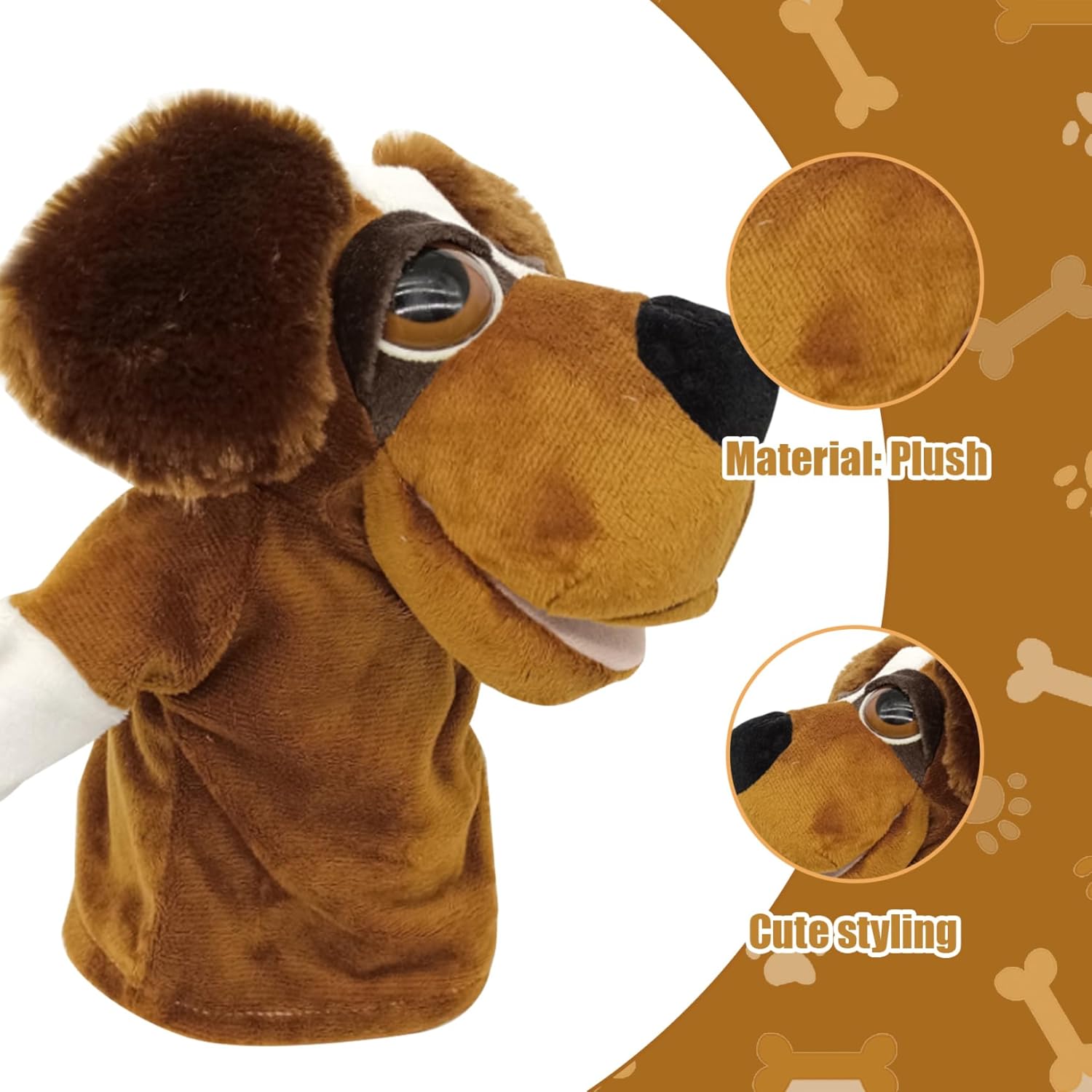 Sviluppa abilità: la nostra marionetta per cani ha una bocca mobile, queste marionette per cani consentono la narrazione interattiva, migliorando le capacità di comunicazione e la creatività dei bambini mentre intrattengono e coinvolgono il pubblico di tutte le età. Ottimo per la narrazione, lo sviluppo delle abilità motorie, la pratica del vocabolario, l'espressione di emozioni e la costruzione della fiducia. Ampiamente usato: ideali per l'insegnamento e le attività prescolari, queste marionette a mano fungono da eccellenti ausili nella comunicazione, sviluppo del linguaggio e nel gioco di ruolo, rendendo le sessioni di apprendimento più divertenti e interattive. Perfette anche per i compleanni o come occasione per ogni occasione. Materiale morbido peluche: realizzati in morbido tessuto peluche di qualità, comodi e accoglienti, sicuri e inodori, questi burattini a mano offrono un'esperienza accogliente, coinvolgendo sia i bambini che gli adulti in giochi fantasiosi o sessioni di narrazione. Adatto a tutte le età: le marionette per cani hanno dimensioni perfette, alte circa 27 cm/10,63 pollici, e adatte per adulti e bambini..Raccogliendoli tutti, potrai raccontare molte storie di animali ai tuoi bambini. Carino e adorabile: il design adorabile, compresi i grandi occhi espressivi, aggiunge una qualità affascinante e accattivante a questo burattino a mano per cani, incoraggiando connessioni emotive e accattivanti esperienze di narrazione.