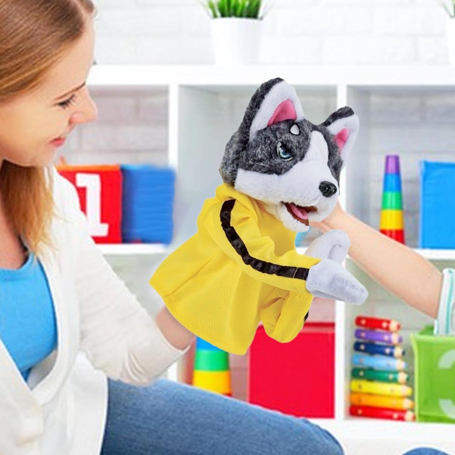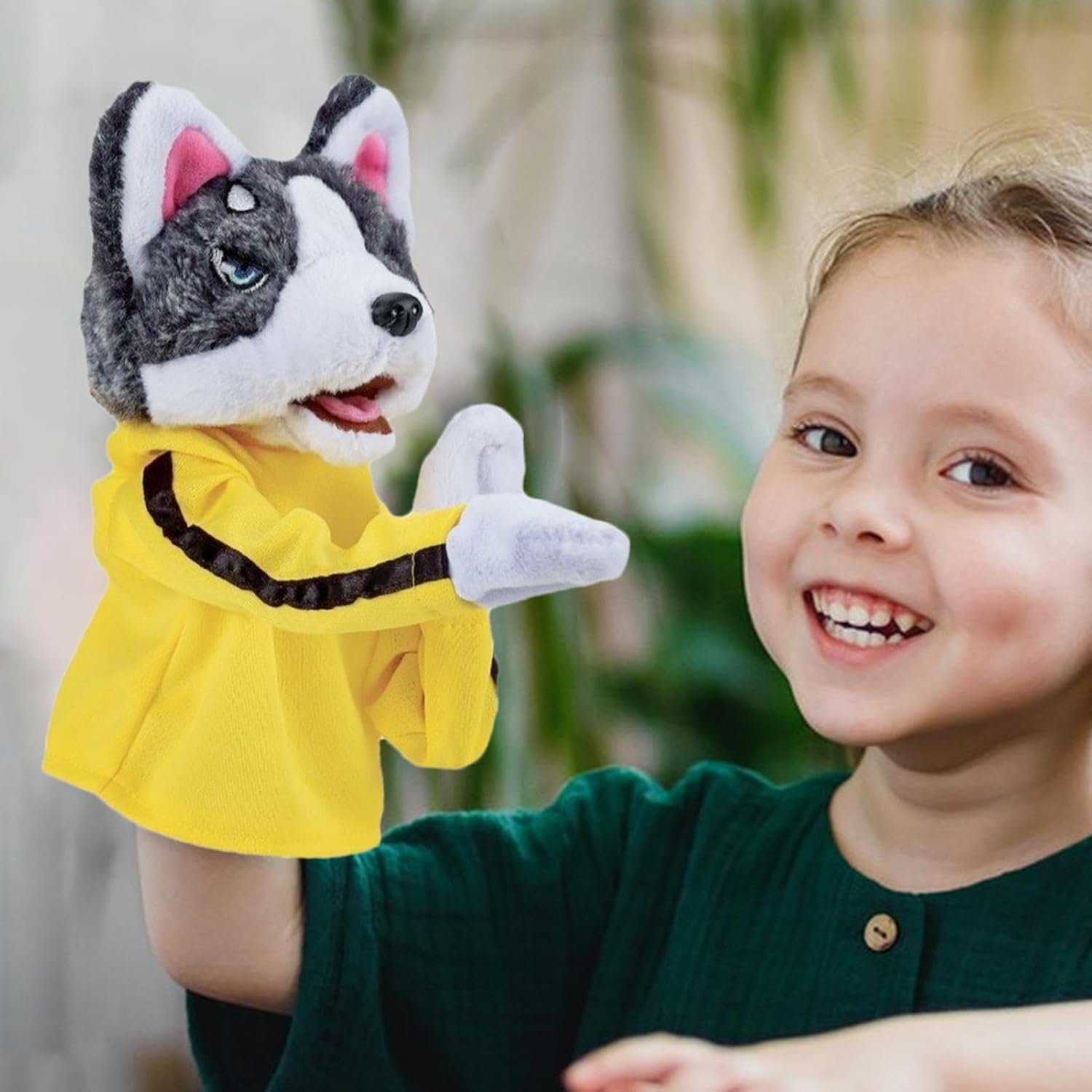 Gioco coinvolgente: goditi un'esperienza interattiva con questo burattino da boxe di peluche con animali husky. Funzionante con le dita e incredibilmente divertente, incoraggia la creatività e stimola l'immaginazione. Marionette di comunicazione rivoluzionarie: lasciati coinvolgere in nuove esibizioni di ventriloquo, migliora le avventure di gioco di ruolo e divertiti a raccontare storie e cantare con la nostra marionetta interattiva che non solo imita il movimento ma parla anche. Comunicazione migliorata: realizzata in morbido tessuto, la nostra marionetta interattiva fornisce un tocco delicato, garantendo un'esperienza non irritante e delicata sulla pelle; l'imbottitura piena e omogenea lo rende morbido e confortevole, oltre ad essere facile da pulire e manutenere. Più divertimento: la marionetta interattiva con il suo aspetto vivace e divertente di un pugile e un design unico, stimolerà l'immaginazione dei bambini, offrendo più ore di intrattenimento e stimolando la loro creatività. Regalo sorprendente: emoziona i bambini con questo burattino interattivo, un regalo pratico perfetto per compleanni, Natale, anno, anniversari e Pasqua. Incoraggia il gioco fantasioso, stimola la creatività e garantisce ore di gioco coinvolgente. Perfetto sia per ragazzi che per ragazze.