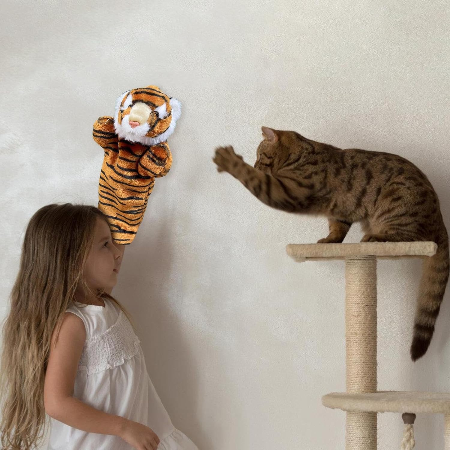 Aspetto attraente: burattini dai colori vivaci con dettagli amorevoli incantano sia i bambini che gli animali domestici come i gatti e arricchiscono naturalmente la narrazione a casa o in classe. Compagno giocoso e rilassante: queste marionette combinano la funzionalità di un giocattolo per gatti con la capacità di calmare le emozioni feline. Creano un'atmosfera armoniosa e aumentano il coinvolgimento attraverso allegri scenari di gioco. Interazione sicura: la marionetta per animali mantiene la distanza ottimale tra utente e animale domestico durante attività energiche come l'addestramento con acrobazie o la promozione del movimento, per momenti gioiosi nelle famiglie con gatti attivi. Aumenta il gioco interattivo: con materiale morbido peluche e superfici tattili, queste marionette offrono stimoli amati dai gatti. La combinazione di pregevole fattura e texture delicate stimola il comportamento giocoso e crea gioiose esperienze condivise per gli animali e gli esseri umani a casa. Attivatore dell'istinto di caccia: questa marionetta incoraggia i gatti a giocare a saltare e catturare, aumenta i livelli di attività e supporta un corpo in forma, perfetto per il gioco interattivo in case o ambienti tranquilli con animali domestici