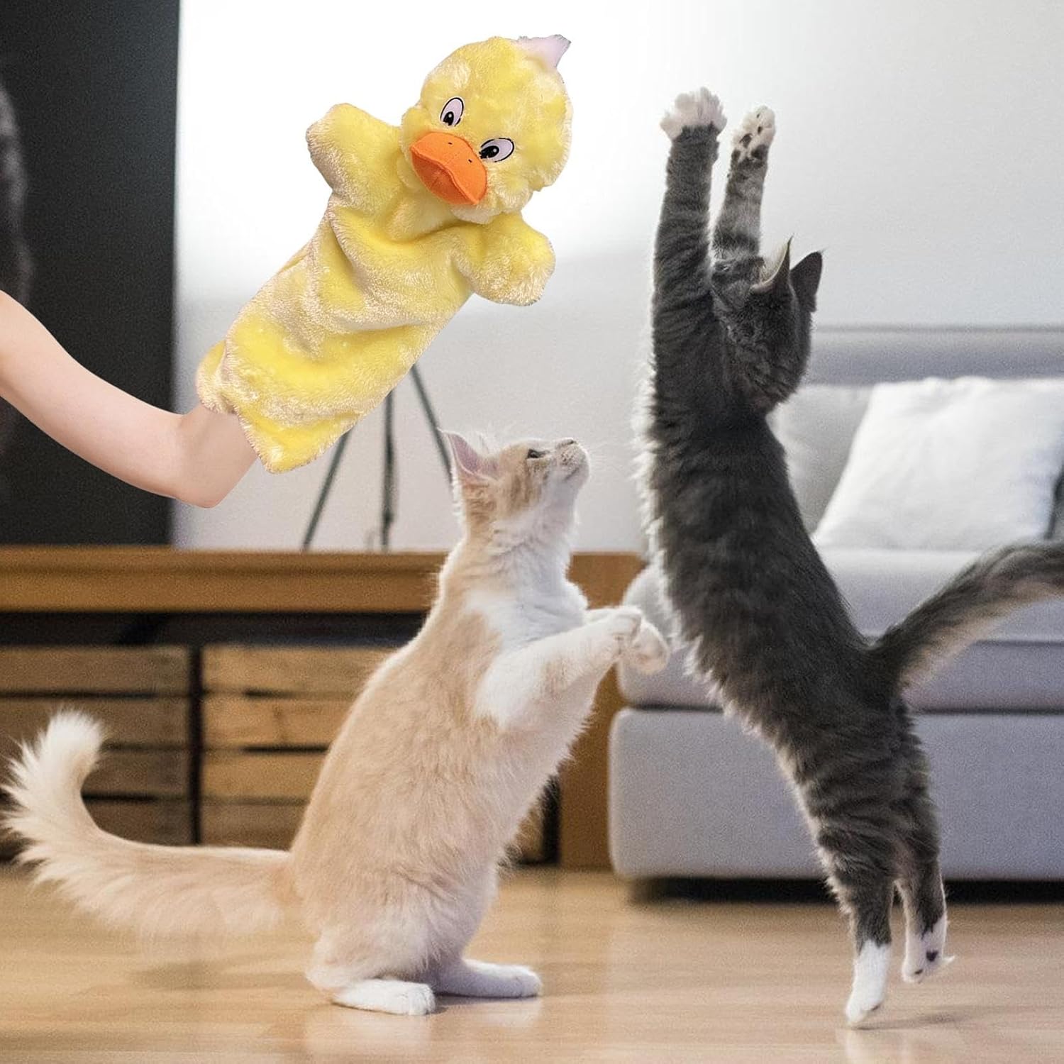 Divertente Attività Motoria: Progettato per intrattenere e stimolare i gatti, questo pupazzo favorisce l'esercizio fisico e il benessere generale, creando occasioni di gioco piacevoli e rafforzando la relazione tra proprietario e animale Coinvolgimento Sicuro: Progettato per mantenere una separazione ottimale tra utente e animale, il puppetto assicura sicurezza durante attività ad alta energia come insegnare trucchi o stimolare movimento, creando momenti di gioia per famiglie con gatti attivi. Artigianato Incantevole: L'aspetto delizioso e i toni luminosi dei pupazzi a mano intrigano i gatti, promuovendo esperienze gioiose durante spettacoli di burattini o intrattenimento casuale ovunque Intrattenimento Antistress: Si comporta come strumento rilassante per gatti, offrendo comfort e divertimento migliorando l'e incoraggiando l'interazione dinamica, ideale per le routine quotidiane di bonding Esperienza Tattile Morbida: I pupazzi da mano in morbido peluche offrono una sensazione tattile che i gatti adorano, con materiali delicati sulla loro pelle sensibile. La finitura artigianale di qualità favorisce momenti di gioco interattivo e emotivo tra pet e proprietari durante il trascorso in casa, garantendo intrattenimento senza fine