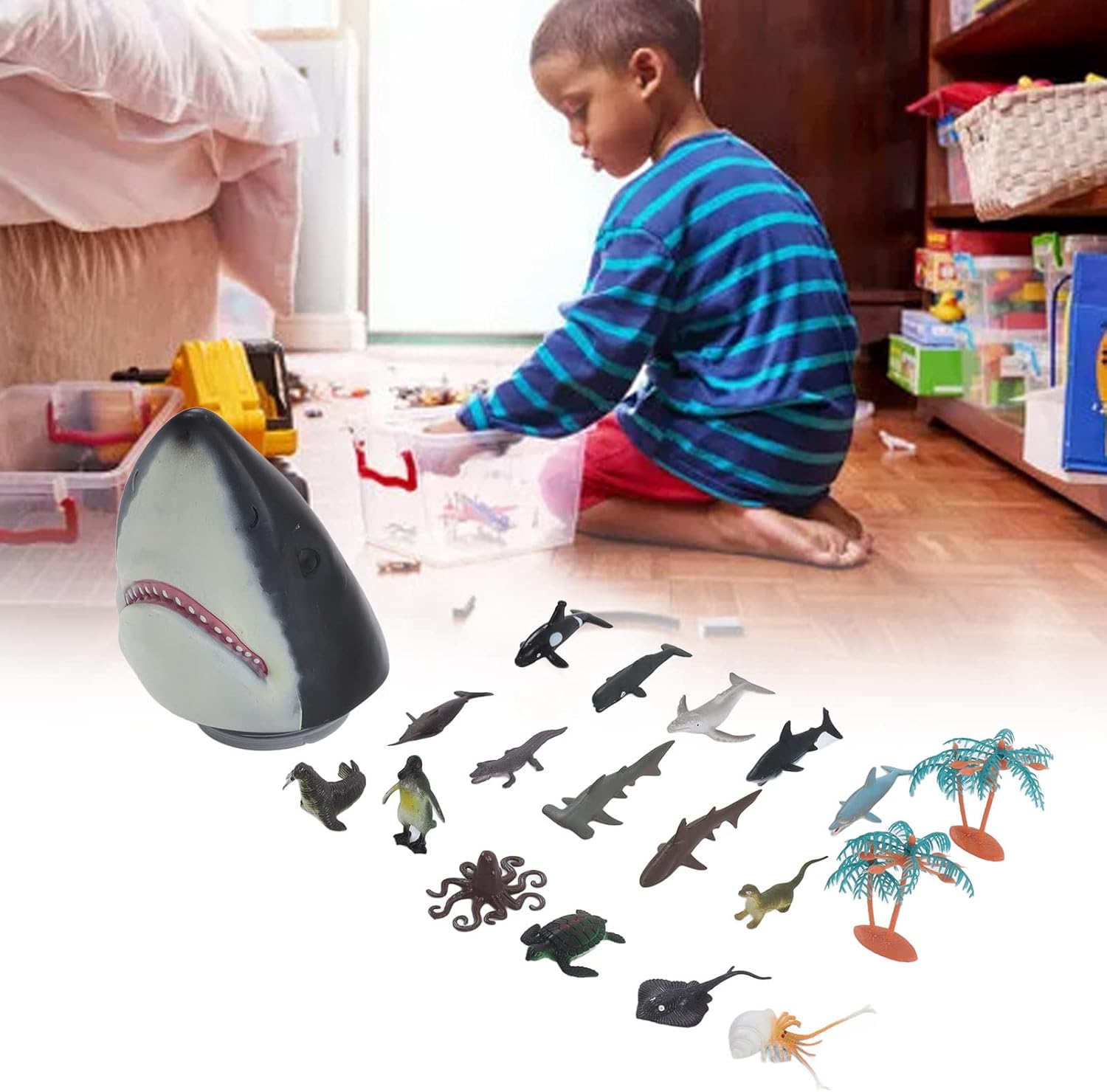 [Aspetto squisito]: Il burattino a mano di pesce presenta un design realistico con ottima consistenza, carino e vivido, fornendo un divertimento infinito per i bambini. [Promozione delle relazioni]: per i giochi di ruolo interattivi, questo burattino a testa di pesce aiuta a migliorare le relazioni familiari o di amici. [Migliora l'immaginazione]: Incoraggia i bambini a usare attivamente la loro immaginazione usando questo burattino manuale per rappresentare i ruoli dei pesci nella narrazione. [Vari modelli animali]: con 16 diversi giocattoli di modelli animali inclusi, i bambini possono ottenere una migliore comprensione di vari animali attraverso il gioco. [Materiale plastico sicuro]: realizzato in plastica, sicuro e non tossico, con superfici levigate e arrotondate, ideale per far giocare i bambini.