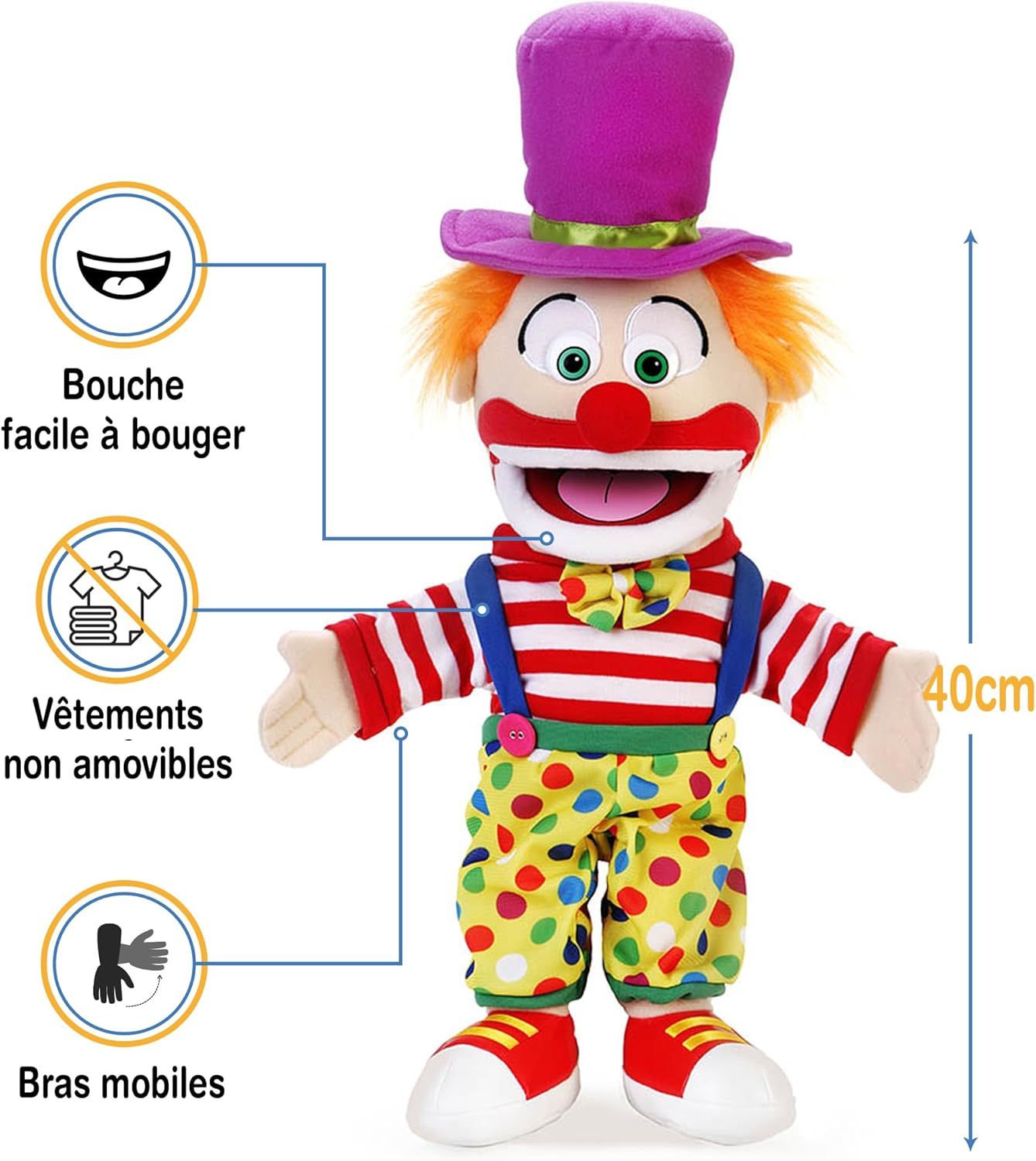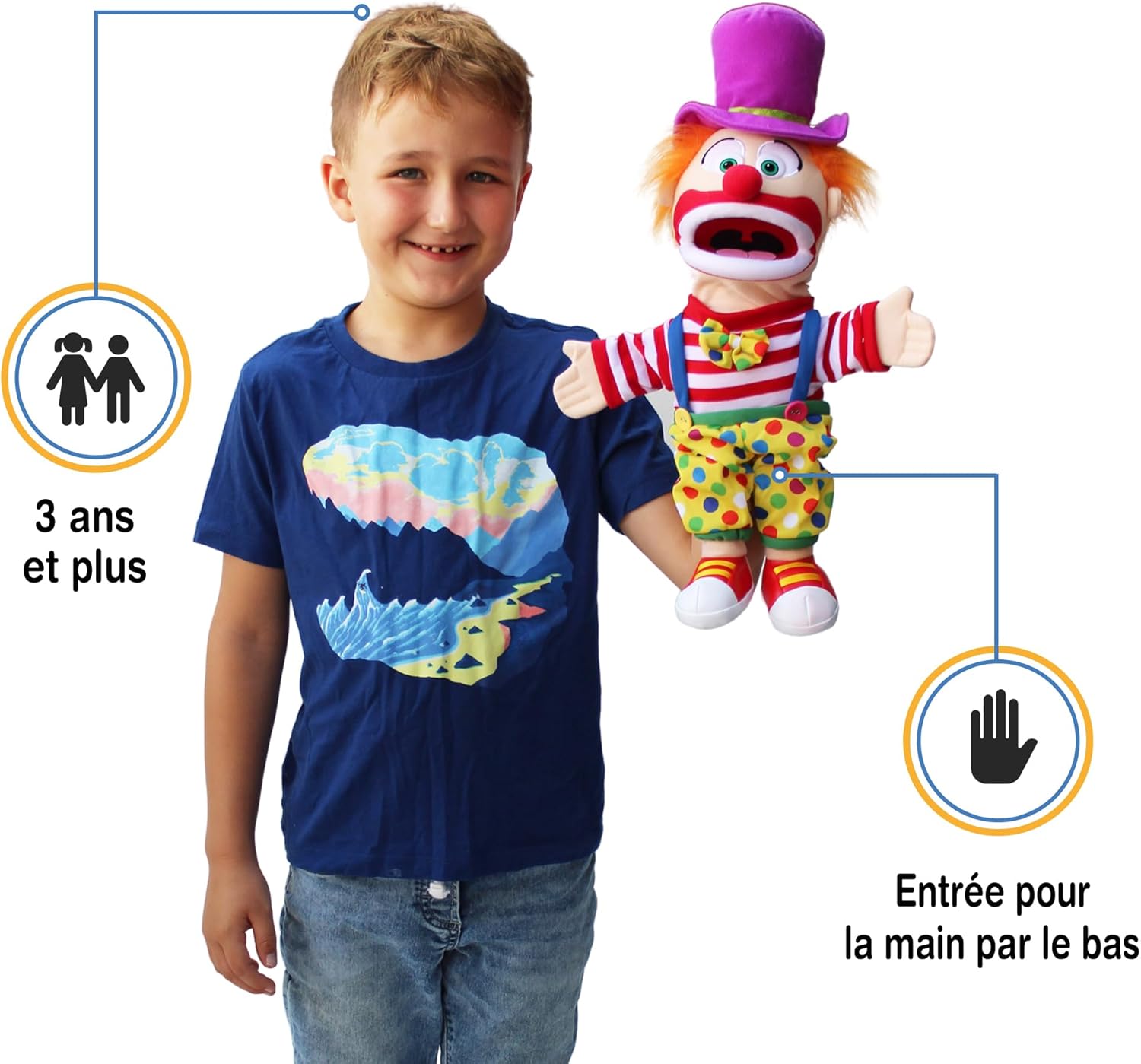 Burattino a bocca mobile di alta qualità realizzato da Silly Puppets. Progettato per i bambini ma si adatta alla maggior parte delle mani degli adulti. Bocca e braccia facili da spostare. Ingresso manuale dal fondo del burattino. Altezza: circa 40 cm. Peso leggero: solo 200 g. L'abbigliamento dal design accattivante e dettagliato non è rimovibile.