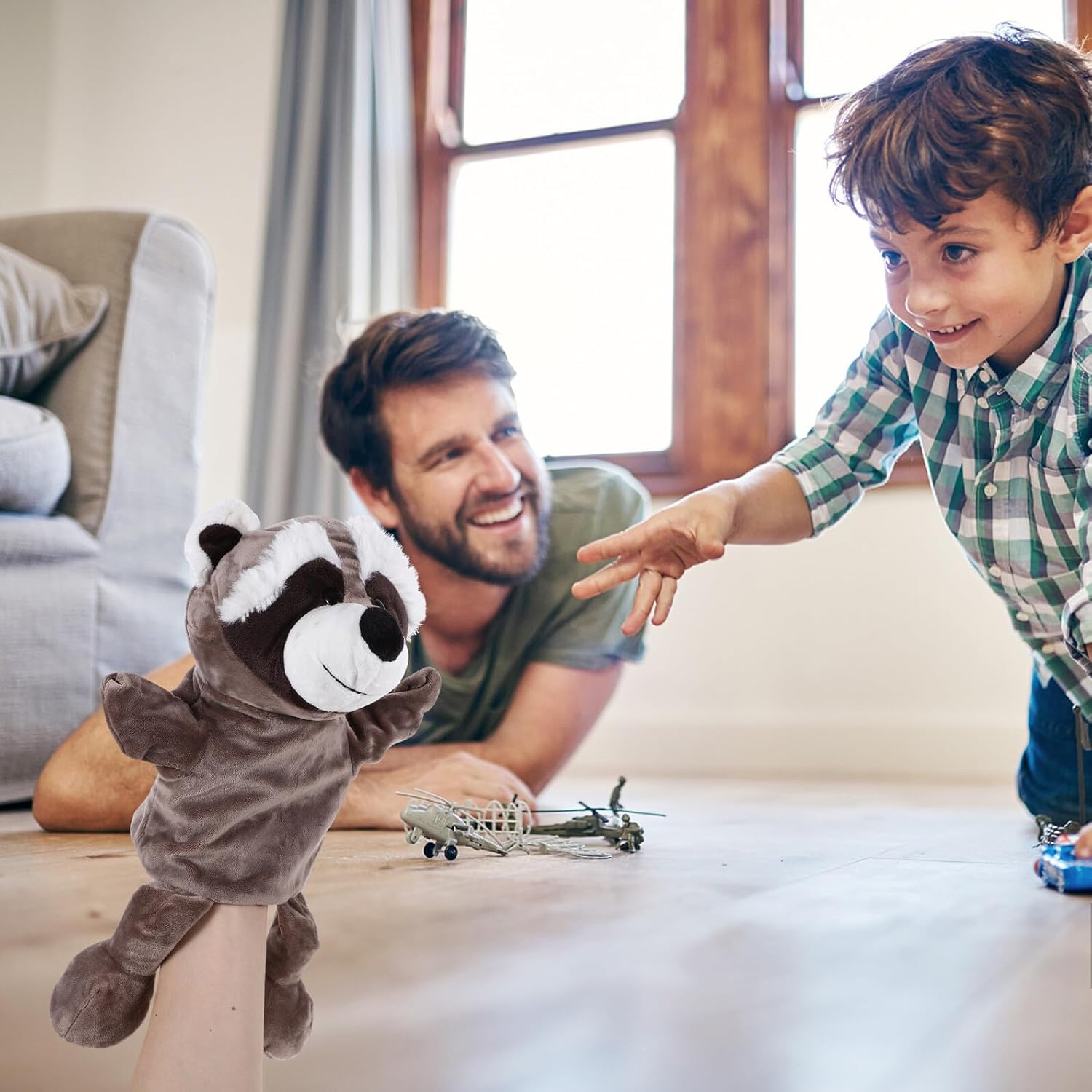 Divertente burattino a mano con animale - burattino a mano con animale selvatico, giochi interattivi, regala ai bambini un'infanzia divertente, gioco di ruolo burattino a mano con burattino a mano - il giocattolo della storia è l'ideale per ragazzi e ragazze. divertente design portatile, stimola la visione del bambino, carino, creativo per il simpatico giocattolo di procione - utile per migliorare la relazione genitore-figlio e aiutare i genitori a legare con i loro figli, burattino di cartone animato interattivo genitore-figlio - burattino a mano con animale per neonati, bambini piccoli, storie, spettacoli, momenti di gioco, scuole, giocattoli per bambini Marionetta di procione: queste marionette sono adatte per anni e quindi un regalo ideale per chi ama gli animali e le storie. burattino di mano