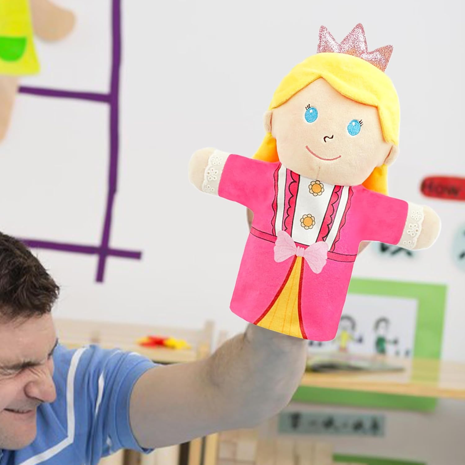 Regalo significativo: porta gioia ai bambini con le marionette a mano come regalo significativo che li sorprenderà in occasioni speciali come compleanni o celebrazioni e mostrerà il tuo affetto. Ideale per un'esperienza di gioco condivisa e sviluppo di fantasia. Strumento di apprendimento interattivo: promuove lo sviluppo delle capacità motorie attraverso il design interetà; rafforza l'impegno comune di gioco di ruolo per esperienze di apprendimento interattivo condivise Multiuso: adatto per aule, camere dei bambini e palcoscenici. Ideale per progettare attività di apprendimento, lezioni di narrazione interattive e piccole proiezioni. Supporta lo sviluppo di abilità linguistiche e sociali in situazioni di gioco creative. Facile da usare: favorisce connessioni significative attraverso giochi di marionette comuni. Facile lavaggio a mano e integrazione senza cuciture in scenari di gioco che stimolano l'apprendimento garantiscono un'occupazione duratura. Materiale confortevole: con superficie morbida in peluche e inserti in cotone, le bambole garantiscono una facile trasportabilità con mantenimento della forma elastica per una piacevole sensazione di gioco che i bambini adoreranno