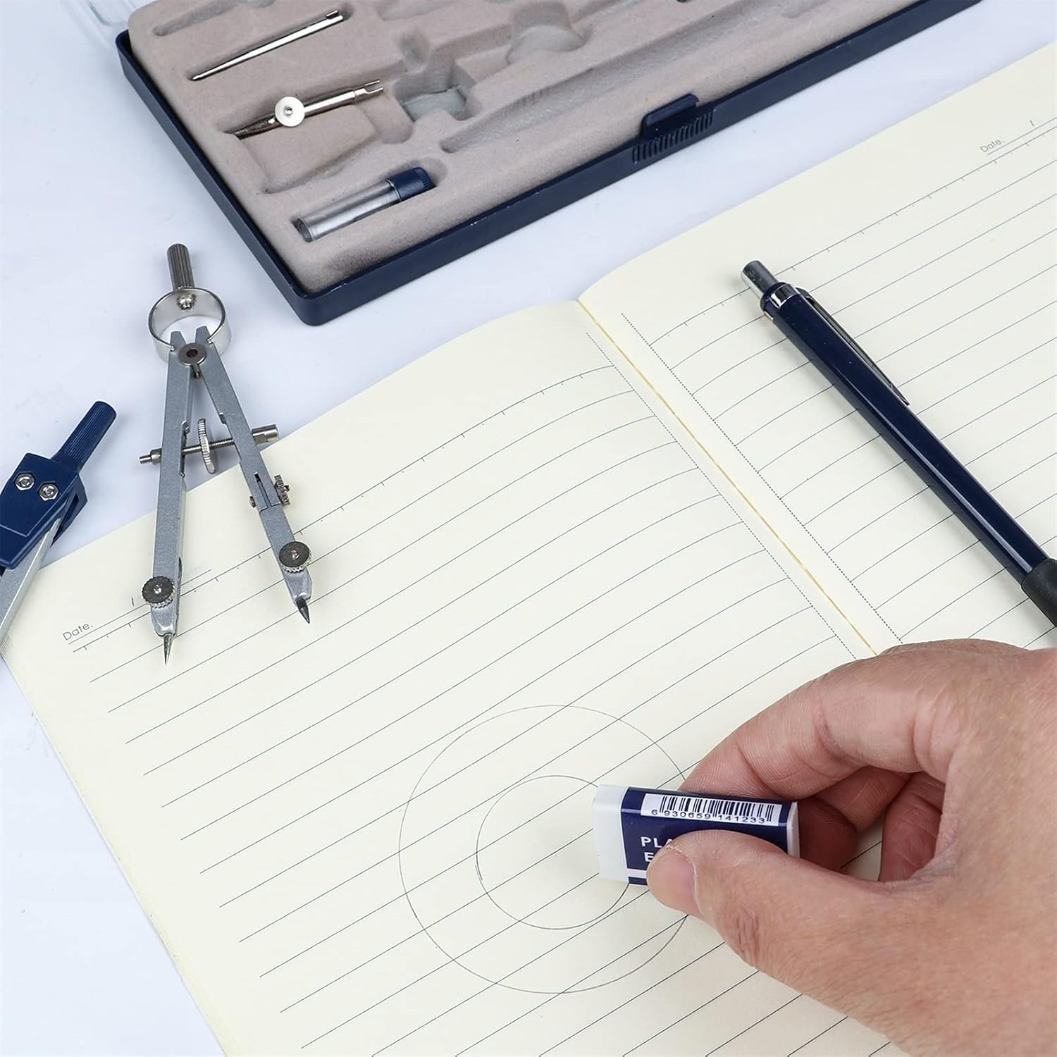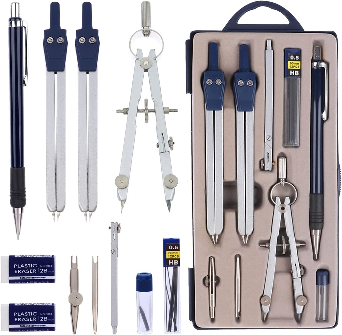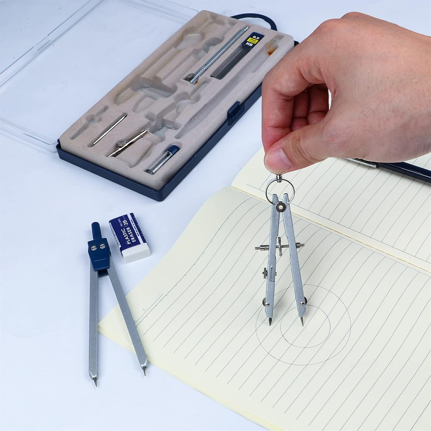 Strumenti pratici: perfetti per studenti, insegnanti, esperti di matematica, architetti, ingegneri, artisti, designer di qualsiasi livello. Può essere utilizzato a scuola, in ufficio, a casa o al lavoro. Quantità sufficiente: riceverai un pacchetto che include 3 bussole grafiche, 1 penna direzionale, 1 perno di localizzazione da 3,5 pollici, 1 perno per barra di estensione, 2 ricariche per matita, 1 matita meccanica, 2 righelli triangolari, 1 righello da 6 pollici, 1 righello da 3,5 pollici, 1 righello da 3,5 pollici, che vengono inseriti nella scatola di plastica SHATTATERPAPHER Set di strumenti di qualità: il kit bussola è realizzato in acciaio in lega di zinco che è robusto, durevole e facile da trasportare; I righelli e gli strumenti protresor sono realizzati in materiale PS che è leggero, chiaro e robusto. Pratico set di bussole geometriche: i righelli, i triangoli e i protreseurs funzionano con gradazioni per una facile identificazione; La robusta custodia in plastica serve a proteggere e riporre questi strumenti in un posto nello zaino o sulla scrivania. Design della trave di estensione: c'è una trave di estensione attaccata alla grande bussola per disegnare grandi cerchi; Puoi disegnare un cerchio più grande senza molti punti di misurazione e raccordi