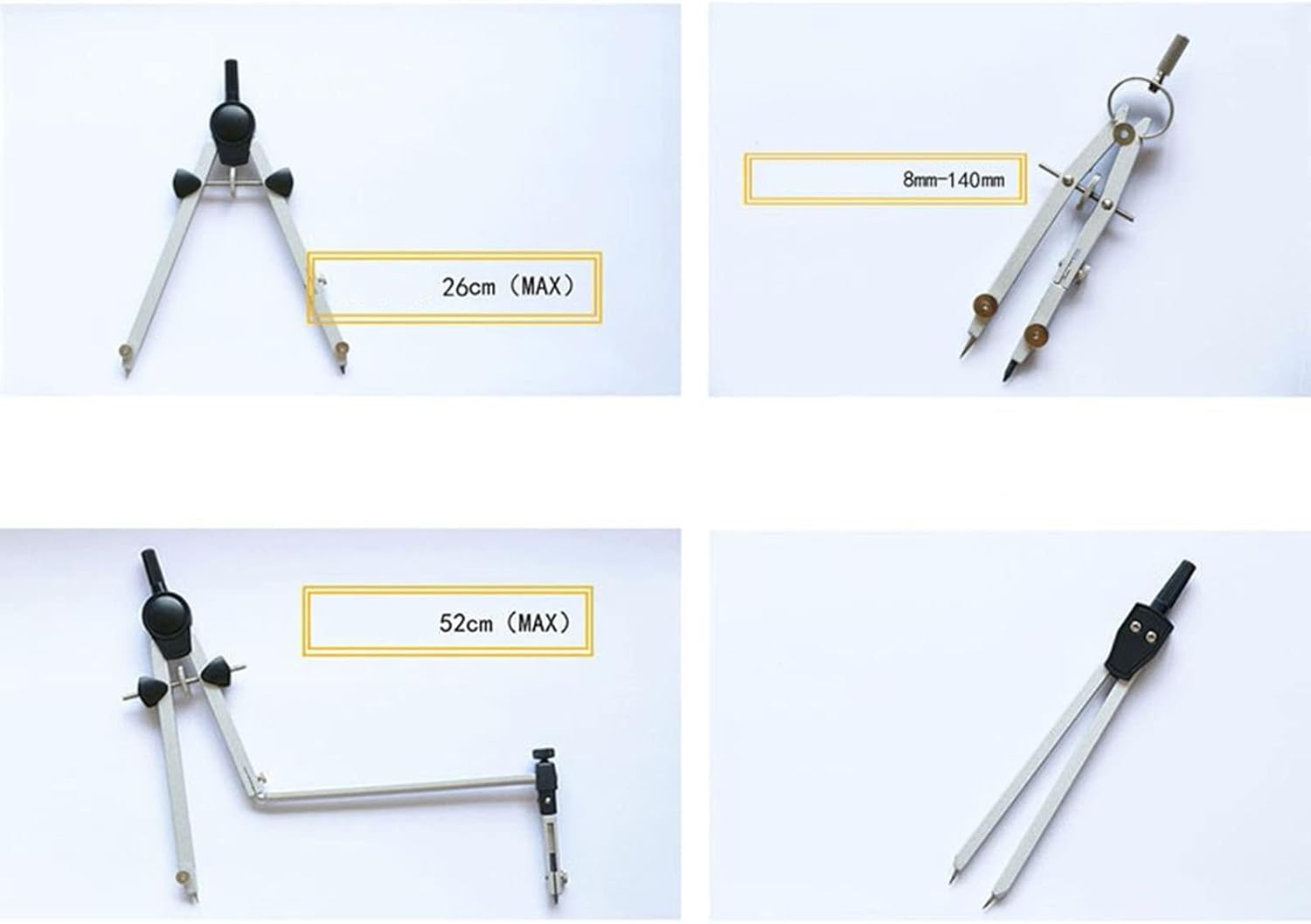 Custodia resistente per bussola con un bel pallet in plastica per proteggere e mantenere gli strumenti in un posto ordinato. La confezione include bussole, bussole a molla, calibro secondario, asta di prolunga, clip per penna, nucleo di piombo, centro principale. Girare la rotella centrale per regolare con precisione il diametro del cerchio disegnato. Realizzato in metallo, la lavorazione è rigorosa e precisa. Set kit geometria per realizzare schede didattiche e di studio di disegno di ingegneria architettura, lavorazione del legno.