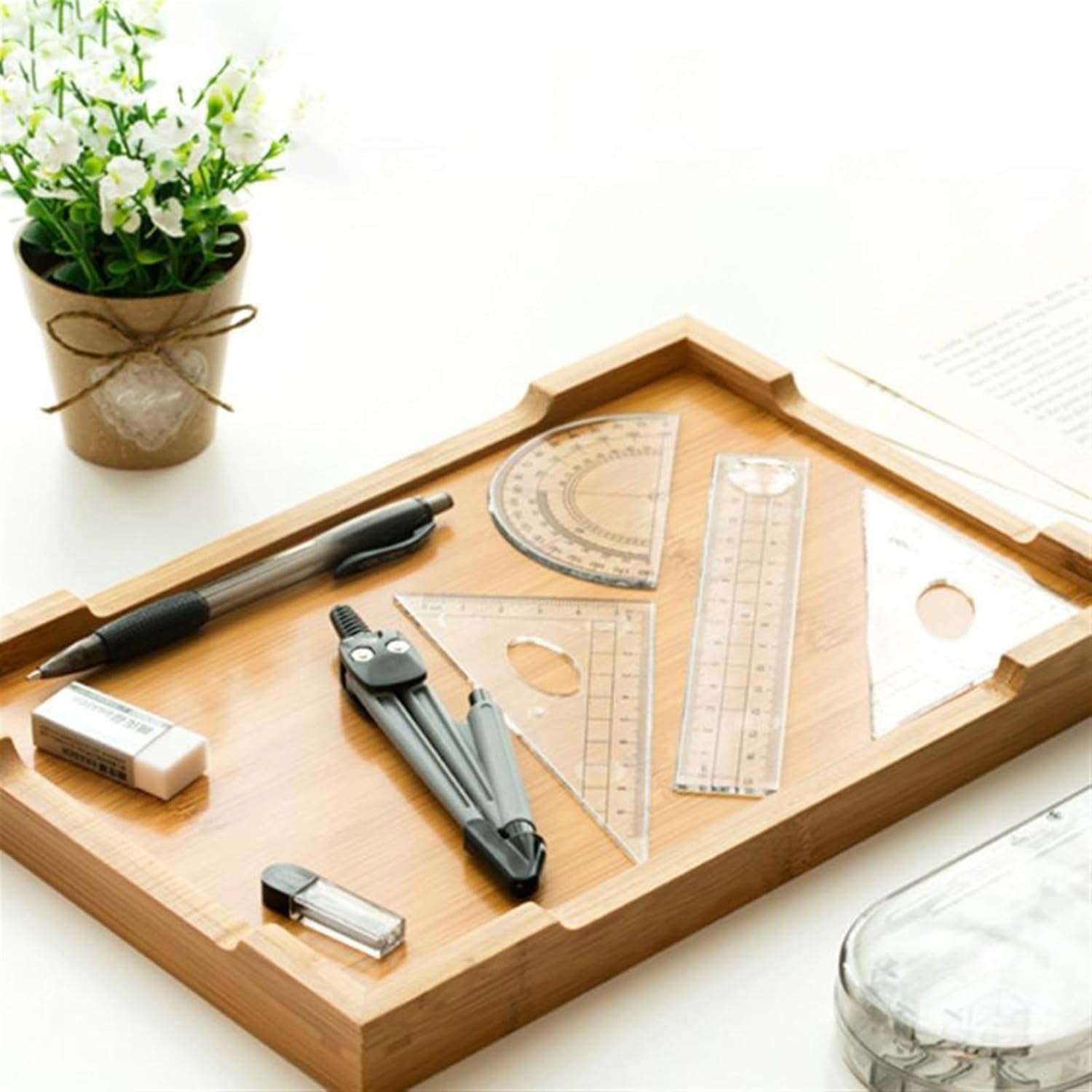 Dimensioni compatte e peso leggero, facile da trasportare. 8 pezzi di cancelleria in una custodia, facile da riporre. Perfetto strumento professionale per il disegno o la cancelleria. Ottimo regalo per gli studenti che tornano a scuola dalle vacanze. Esistono 4 diverse forme di righelli per soddisfare le diverse esigenze. Applicabile a tutti i livelli: ottimo per l'uso a scuola o a casa. Il miglior strumento per disegnare cerchi per studenti, artisti, matematici, falegnami. È un'ottima scelta per le lezioni di matematica.