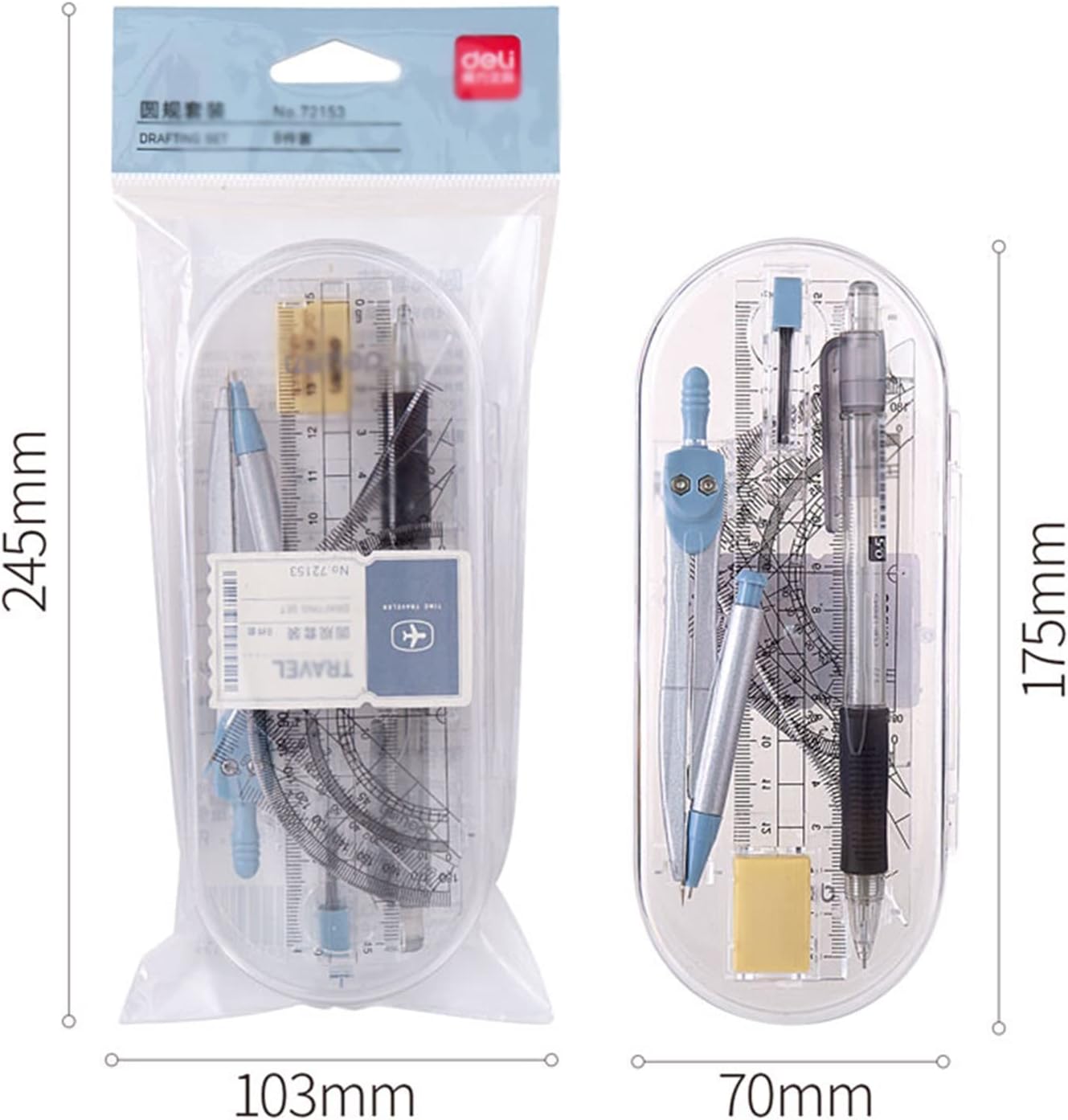 Design ergonomico: migliora significativamente la sicurezza e il comfort nell'uso delle bussole, che funzionano con matite e righelli, garantendo che gli utenti completino compiti matematici o piani di costruzione con alta efficienza. Bussola matematica e geometria Contenuto della confezione: 1 matita, 1 righello, 2 righelli triangolari, 1 righello 15, 1 goniometro, 1 bussola grafica e 1 gomma bianca. Set di matematica per la geometria con una robusta custodia in plastica per proteggere e riporre gli strumenti in un posto nello zaino o sulla scrivania. Il materiale addensato, la scala senza ostacoli, può essere utilizzato per il disegno geometrico e la misurazione dell'angolo. Il set di geometrie da 8 pezzi adatto per insegnanti, studenti e Wicker può aiutare gli studenti a risolvere tutti i progetti di base del set di bussole geometriche.