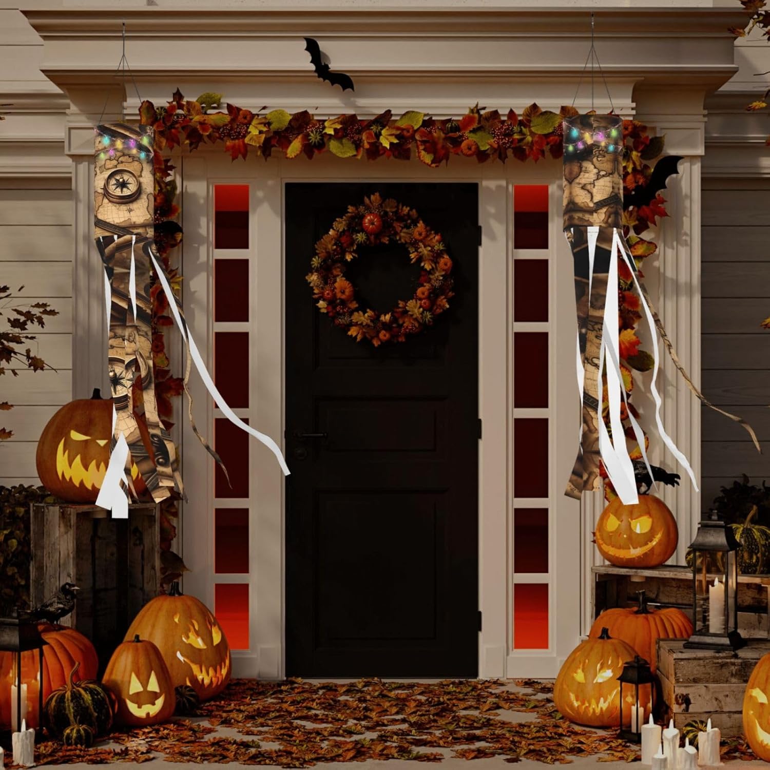 Realizzate con materiale leggero e arioso: le nostre calze a vento sono realizzate in poliestere leggero e svolazzante, progettate per un'asciugatura rapida e un volo ventilato, creando uno splendido display dinamico con le loro nove code. Ideali per tutte le feste: queste calze a vento sono perfette per Halloween, Natale e altre vacanze. Aggiungeranno un fascino accattivante a giardini, strade, parchi giochi, aperture di eventi e altro ancora. Struttura intelligente: misura 102 cm di altezza e 15,4 cm di larghezza, queste calze a vento hanno un'asta di supporto integrata e un connettore di tipo A sulla corda di nylon a tre lati lunga 40 cm per appenderlo in modo sicuro e facile. Illuminazione opzionale: scegli tra la nostra versione con una deliziosa stringa di luce a LED colorata per uno spettacolo notturno scintillante o la versione non illuminata per un elegante display diurno. Istruzioni per la cura: per mantenere il loro aspetto vivace, queste calze a vento devono essere lavate a mano e asciugate all'aria naturalmente. Si sconsiglia il lavaggio in lavatrice e la candeggina.