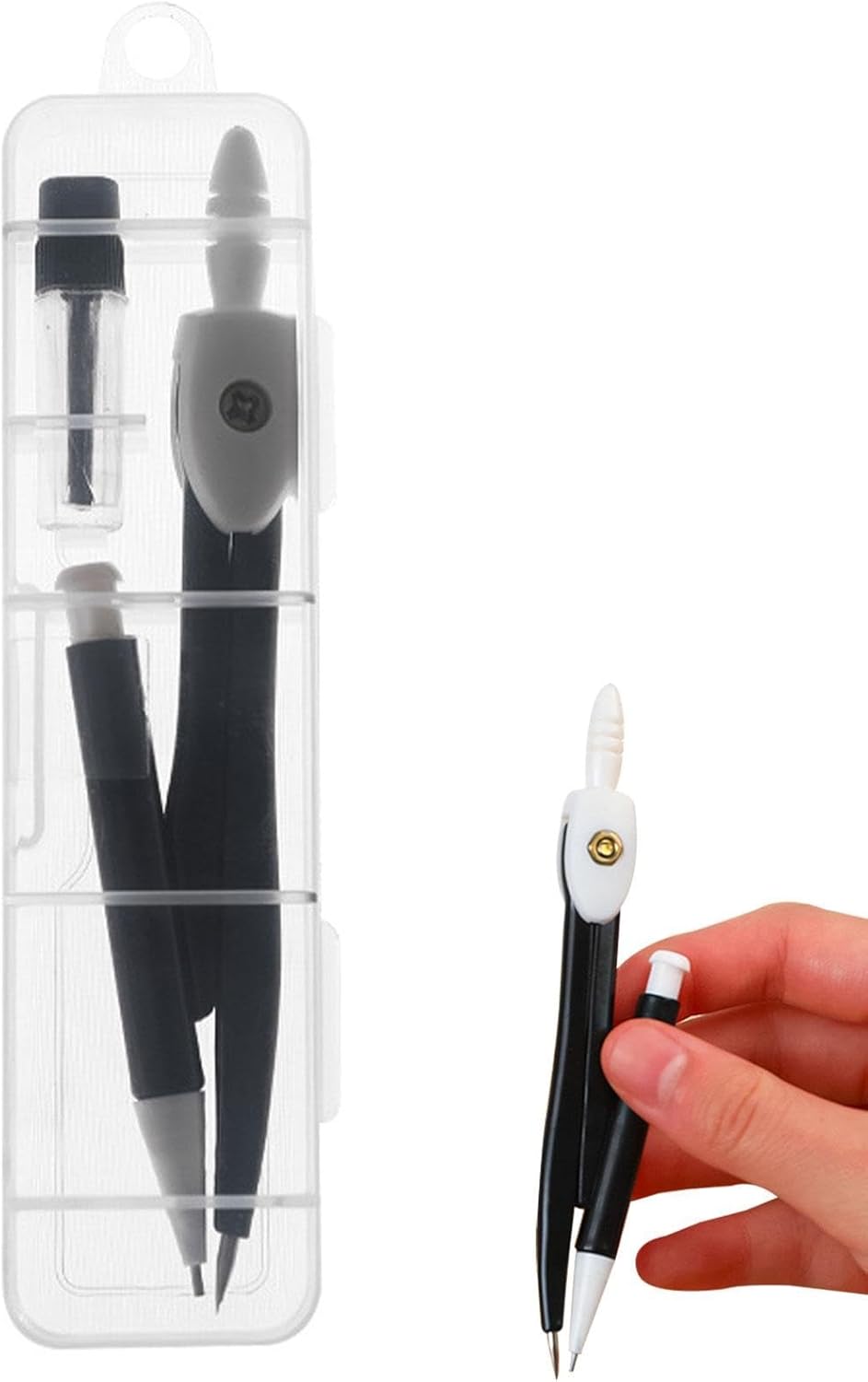 Usi versatili: Diventa creativo con questo set di bussole da disegno, progettato per utenti di tutti i livelli. Perfetto per lezioni di geometria, progettazione architettonica, redazione, costruzione e altro ancora. Goditi molteplici funzioni con facilità. Lunga durata: questo set di bussole da disegno è realizzato in polipropilene di alta qualità che dura a lungo e impermeabilizza efficacemente le bussole. Puoi riutilizzarli per vari progetti senza preoccuparti di ruggine o danni. Comodo da trasportare: con questo set da disegno, puoi portare facilmente i tuoi strumenti ovunque. Alloggiato in una robusta scatola trasparente, fornisce protezione e visibilità pur essendo compatto e leggero. Ideale per creatività e precisione all'aperto. Facile applicazione: concediti la tua creatività con questo set di compassi da disegno. Il suo design intuitivo consente una facile sostituzione del nucleo di piombo da 0,7 mm o di un nucleo di ricambio incluso nella confezione, offrendo più opzioni per disegnare cerchi e archi precisi. Uso antiscivolo: ottieni misurazioni precise senza sforzo con questo set da disegno. Il suo design antiscivolo e il manico antiscivolo lo rendono facile da usare e più conveniente, garantendo risultati stabili e precisi.