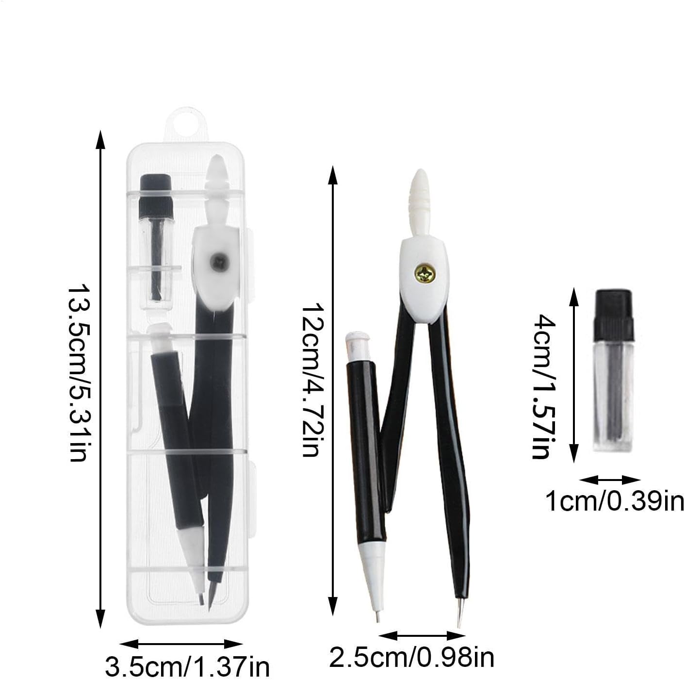 Uso antiscivolo: dotato di un manico antiscivolo per un uso facile e più comodo, questo set da disegno garantisce precisione. Il suo design antiscivolo impedisce lo scivolamento per misurazioni precise. Più funzioni: questo set di bussole da disegno è adatto a tutti i livelli di utenti, dai principianti ai professionisti. Ha molteplici funzioni per lezioni di geometria, redazione, progettazione architettonica, costruzione e altro ancora. Non facile da rompere: con materiale PP resistente e impermeabile, questo set da disegno fornisce precisione per tutti i tuoi progetti. Il materiale riutilizzabile significa che puoi usarlo per un lungo periodo di tempo. Comodo da prendere: questo set di compassi da disegno viene fornito in una scatola rigida trasparente, che lo rende facile da trasportare. Con il suo design leggero e compatto, riporlo nello zaino o nella borsa è un problema. Semplice da usare: migliora la tua esperienza di disegno con facilità utilizzando questo set di compasso. Con la sua funzione semplice da usare, sostituisci la penna come preferisci con un nucleo di piombo da 0,7 mm e un nucleo di ricambio incluso nella confezione.