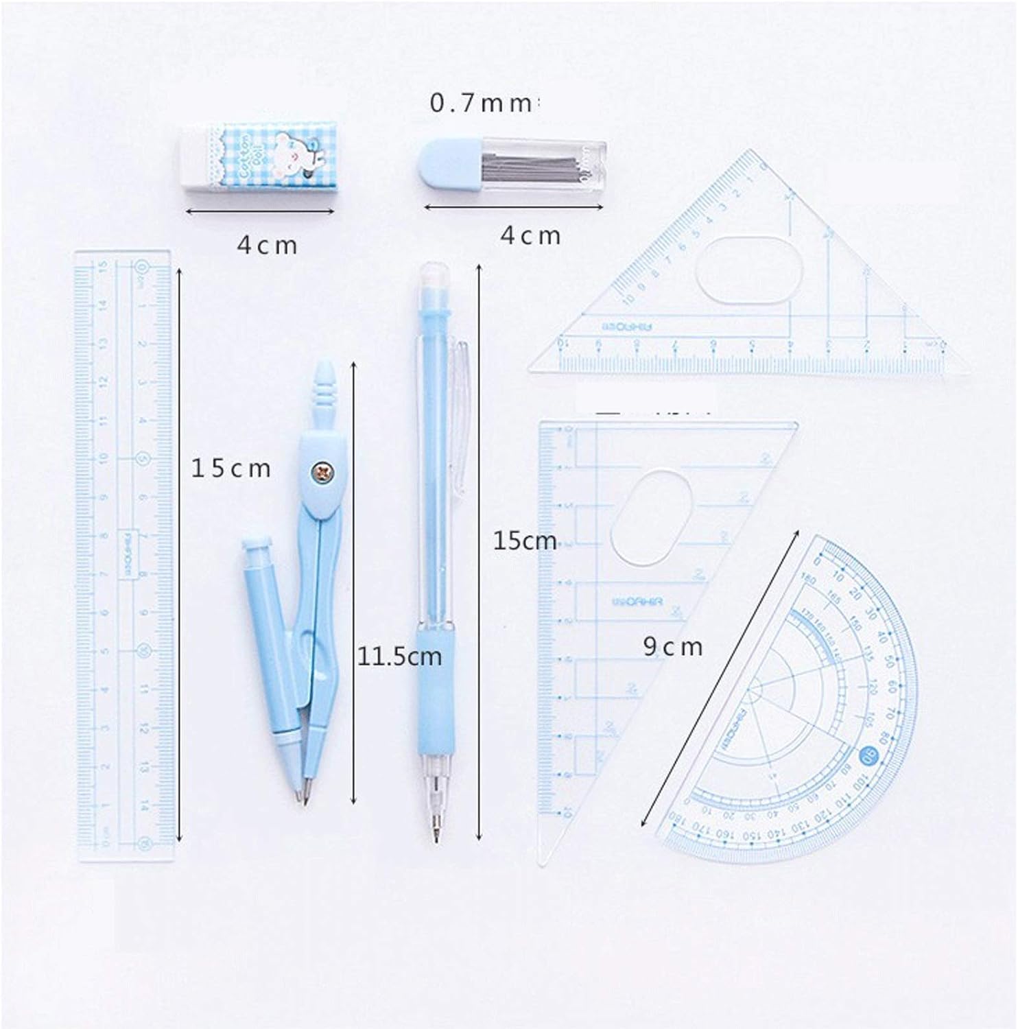 Il set professionale per geometria è progettato per studenti di geometria o per chiunque desideri esercitare le competenze matematiche generali. Ogni confezione include: bussola, 2 triangoli, goniometro, gomma, portamine, righello e nucleo di mina. Un insieme di tutti gli strumenti matematici necessari: utilizza un insieme di tutti gli strumenti matematici per risolvere problemi matematici. Il goniometro dello strumento triangolo di geometria matematica è veloce e facile da leggere. Scale chiare e segni precisi possono funzionare bene su qualsiasi superficie. Il kit di geometria è molto adatto per la costruzione e la misurazione di angoli, triangoli e altre forme geometriche. Il set per matematica/set di geometria è progettato da esperti matematici con tutti gli elementi essenziali per insegnanti e studenti di qualsiasi livello.