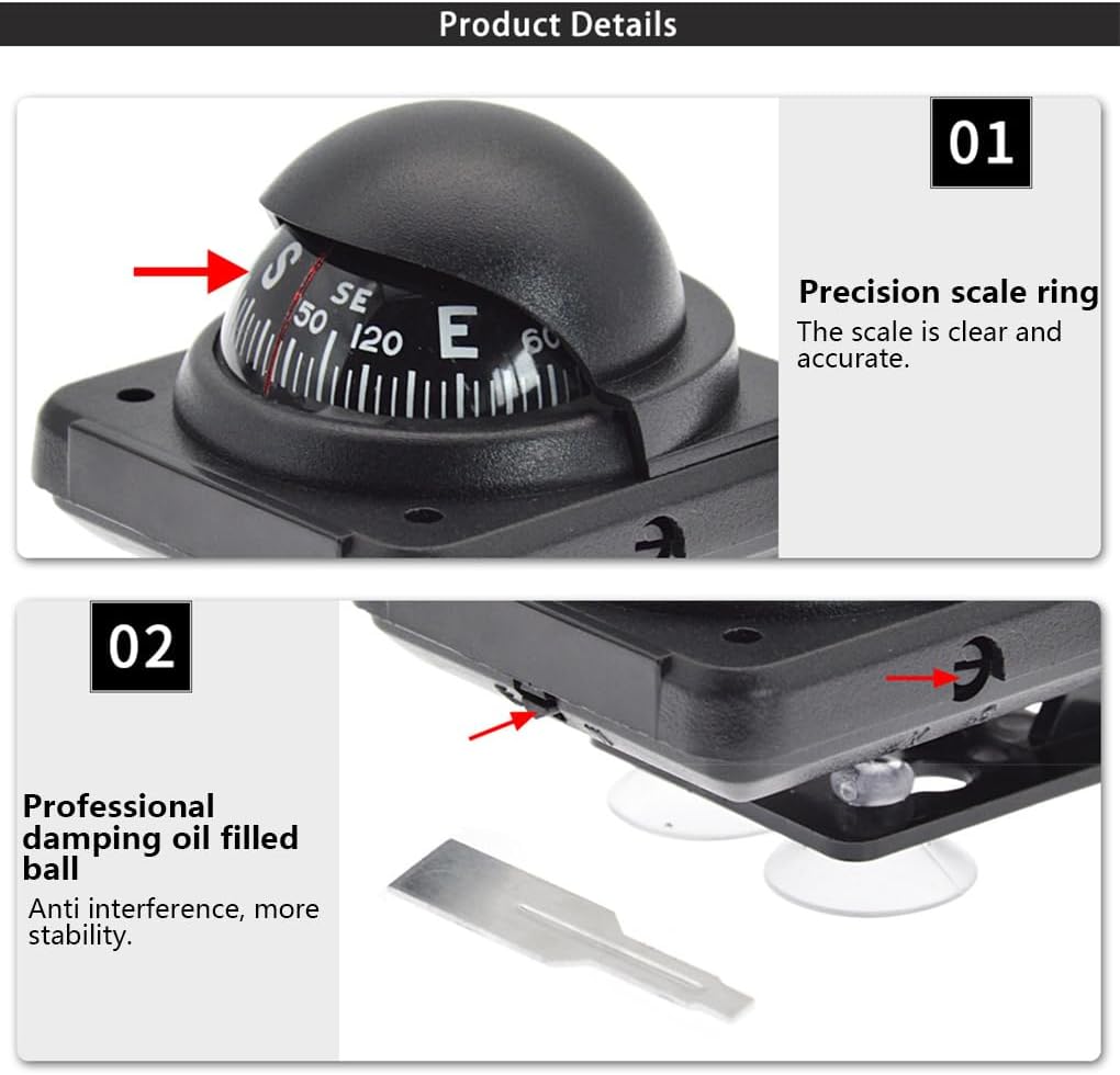 1. Pregevole fattura: la bussola per barche con anello di Per scala preciso descrive una Per scala chiara e precisa 2. Prestazioni: la bussola del veicolo ha una sfera di smorzamento professionale riempita di olio, anti-interferenza e maggiore stabilità 3. Convenienza: la rotazione del supporto inferiore può regolare l'angolo appropriato per guardare 4. Ampia applicazione: bussola per veicoli, bussola per navigazione e bussola per turismo all'aperto 5. Altro: dopo l'aggiornamento, l'aspetto squisito della bussola per auto è piacevole alla vista