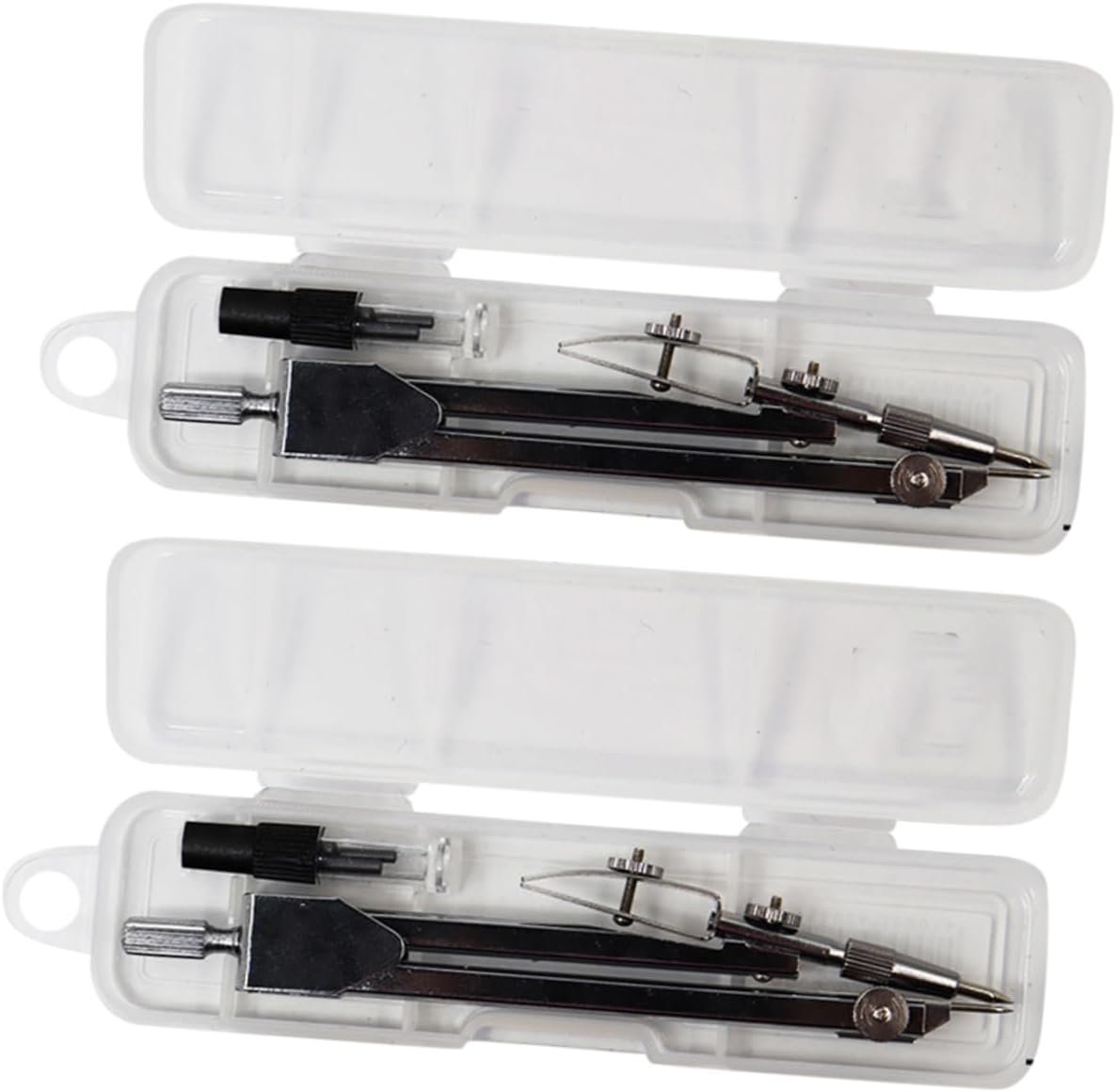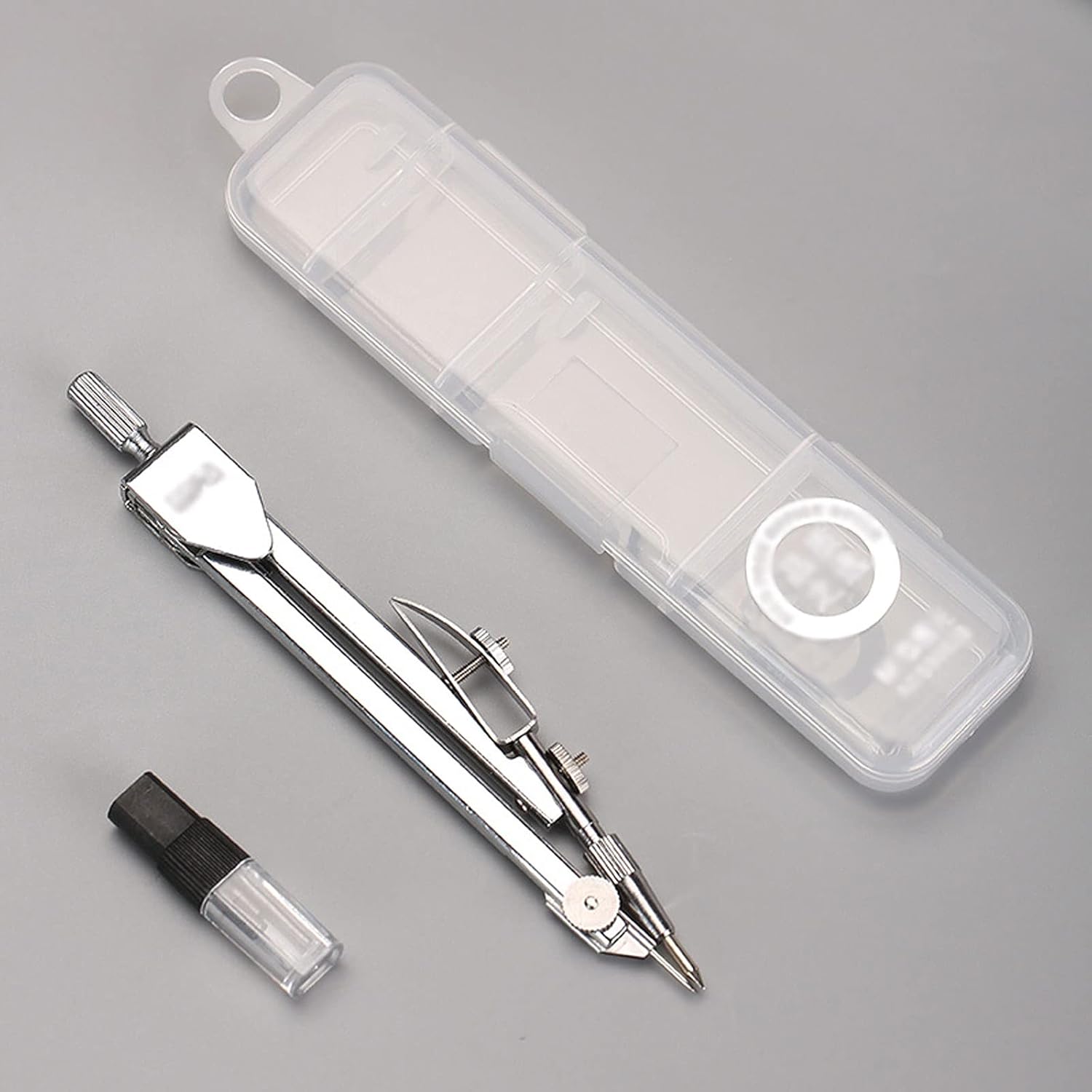 Aspetto semplice: il set Compass adotta un design semplice e materiale metallico. Dimensioni: 172 x 48 mm/6,77 x 1,89 pollici. Struttura stabile: la bussola matematica è solida e fissa e disegna saldamente un cerchio. Albero rotante: albero rotante concavo e convesso, facile da ruotare. Scatola in PP: il kit geometrico contiene una scatola trasparente, facile da riporre e trasportare.