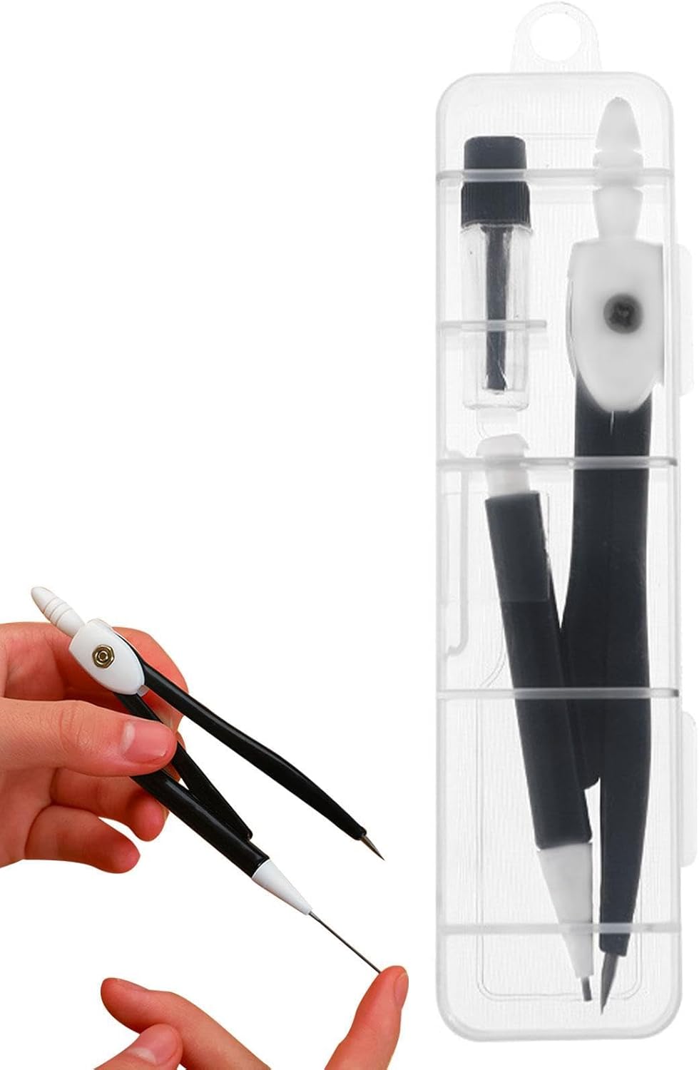 Uso antiscivolo: dotato di un manico antiscivolo per un uso facile e più comodo, questo set da disegno garantisce precisione. Il suo design antiscivolo impedisce lo scivolamento per misurazioni precise. Design multiuso: eleva il tuo gioco di disegno con questo versatile set di bussole da disegno. Con molteplici funzioni, è perfetto per lezioni di geometria, progettazione architettonica, redazione, costruzione e altro ancora. Adatto a tutti i livelli, dai principianti ai professionisti. Materiale riutilizzabile: realizzato in materiale PP impermeabile e riutilizzabile, questo set da disegno garantisce durata e precisione per periodi più lunghi. È perfetto per architetti, artisti e ingegneri. Facile da trasportare: questo set di bussole da disegno è facile da trasportare e trasportare, poiché viene utilizzato in una scatola rigida trasparente che protegge gli strumenti da danni e consente di vedere chiaramente il contenuto. La scatola è compatta e leggera, quindi puoi inserirla nello zaino. Facile da usare: questo set di compassi consente di disegnare cerchi e archi precisi con facilità. Il set di bussola contiene una scatola di mine da 0,7 mm con nucleo di ricambio per penna.