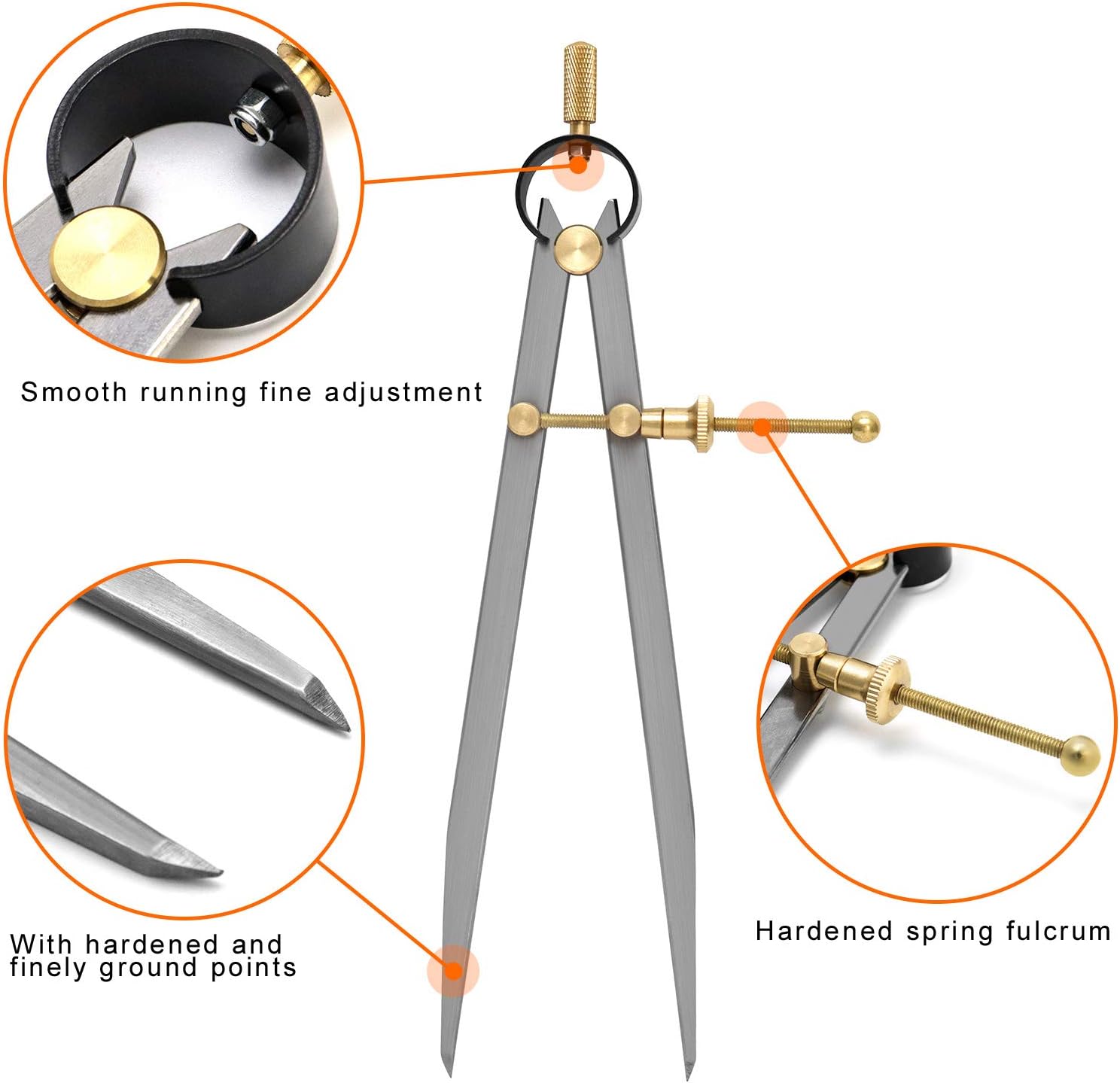 Materiale di alta qualità: pinze divisorie a molla di precisione QWORK realizzate in acciaio al carbonio spesso di alta qualità con punte temprate e finemente rettificate. Facile da usare: bussola da disegno facile da disegnare e regolare, robusta e bloccabile. Utilizzo: per geometria, disegno, disegno, misurazione precisa delle distanze tra due punti e disegno di archi. Adatto per: bussola a matita perfetta per falegnami. Servizio di soddisfazione al 100%: goditi un'esperienza fluida e senza frustrazioni con il nostro servizio di soddisfazione al 100% entro un mese.