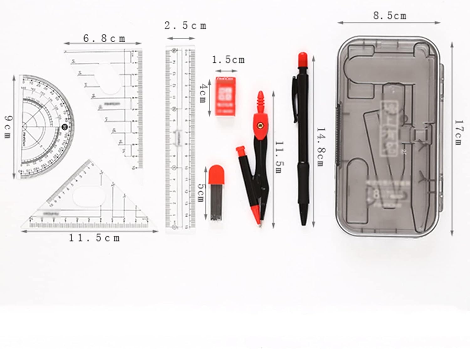 Nome del prodotto: Kit di geometria Materiale del prodotto: metallo + plastica Dimensioni complessive: 8,5*17,5 cm Ambito di applicazione dei prodotti: Casa/Scuola/Ufficio Note: 1. Si prega di controllare le dimensioni e il colore prima dell'acquisto. 2. Ad eccezione del kit geometrico mostrato in figura, non sono inclusi altri articoli. 3. Si prega di notare che monitor diversi possono causare una leggera differenza di colore, per favore capisci. 4.Le dimensioni potrebbero essere leggermente imprecise a causa dei diversi lotti di prodotto o della misurazione manuale, grazie per la tua comprensione! 5.Grazie per il tuo acquisto, se hai domande sui prodotti, non esitare a contattarci. Il nostro set di bussole soddisfa le esigenze di misurazione professionali, adatto a progettisti meccanici come ingegneri, architetti, ecc.