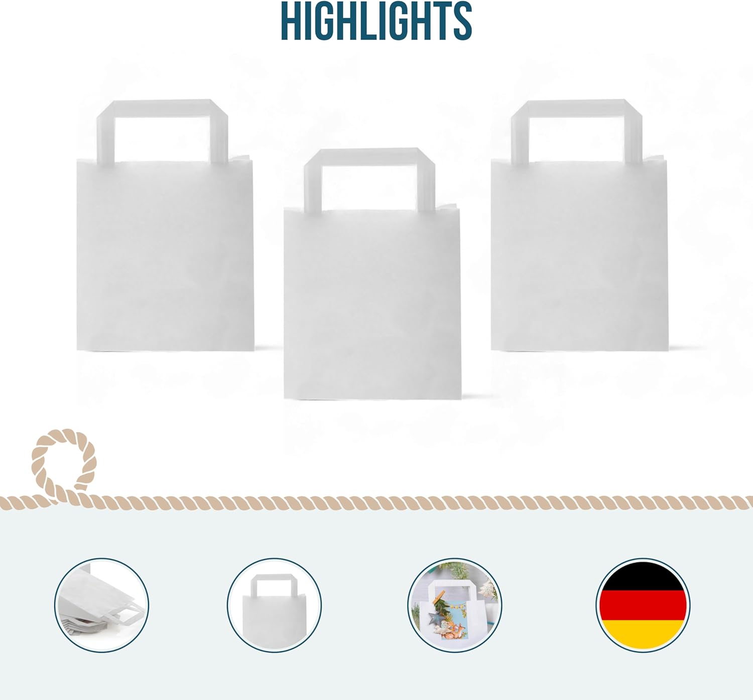 SACCHETTI CON MANICI: Set di 10 robusti sacchetti di carta kraft bianchi, perfetti per confezionare piccoli regali di Natale, sorprese dell'Avvento o regali di fine anno PER LE OCCASIONI FESTIVE: Ideale come sacchetto di San Nicola, sacchetto regalo sotto l'albero, confezione per i clienti in negozio o come piccolo sacchetto per una festa di fine anno ROBUSTI E RIUTILIZZABILI: Grazie alla base rinforzata e ai manici attorcigliati, i sacchetti possono essere riempiti in sicurezza e utilizzati più volte - per biscotti, candele profumate, decorazioni o regali fatti in casa PERFETTI PER IL FAI DA TE: La semplice superficie bianca è ideale per personalizzare con adesivi, nastri o rami di abete - un bel progetto creativo anche per i bambini a scuola o a casa MADE IN GERMANY: Questi sacchetti di carta sono prodotti in modo sostenibile, rispettosi dell'ambiente, di alta qualità e rappresentano un'alternativa elegante alla tradizionale carta da regalo