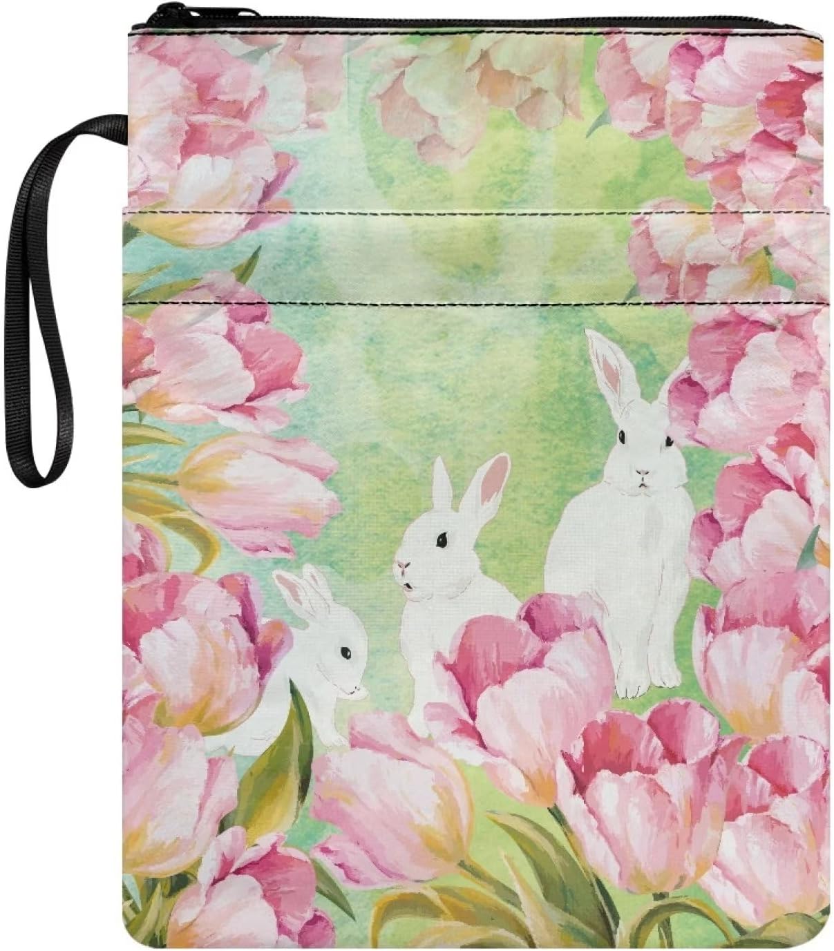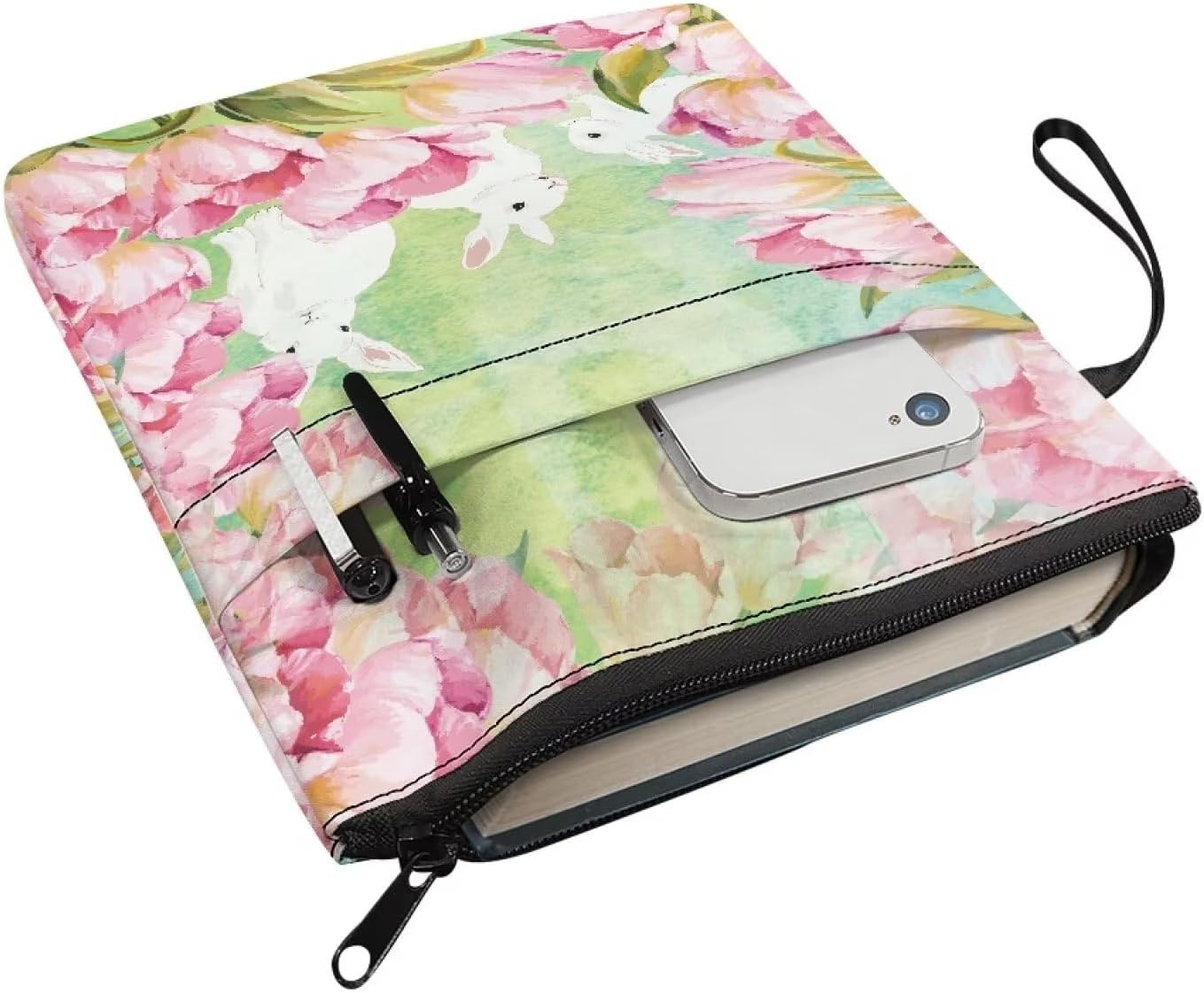 Busta libro con stampa coniglio e tasca frontale, 29 x 22 cm, per amanti, regali, ragazze, ragazzi, bambini, libri, protezione, pounch con zip