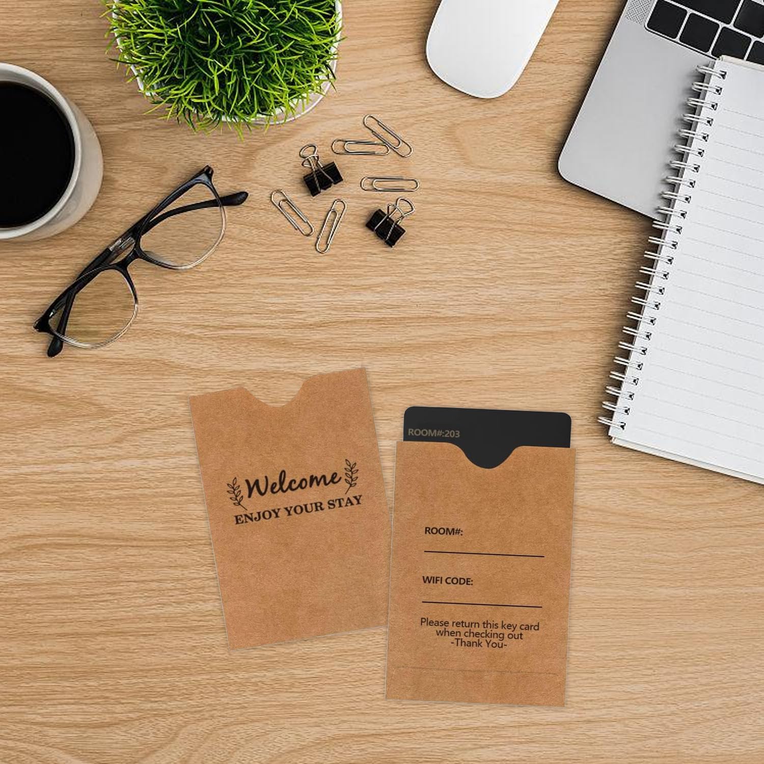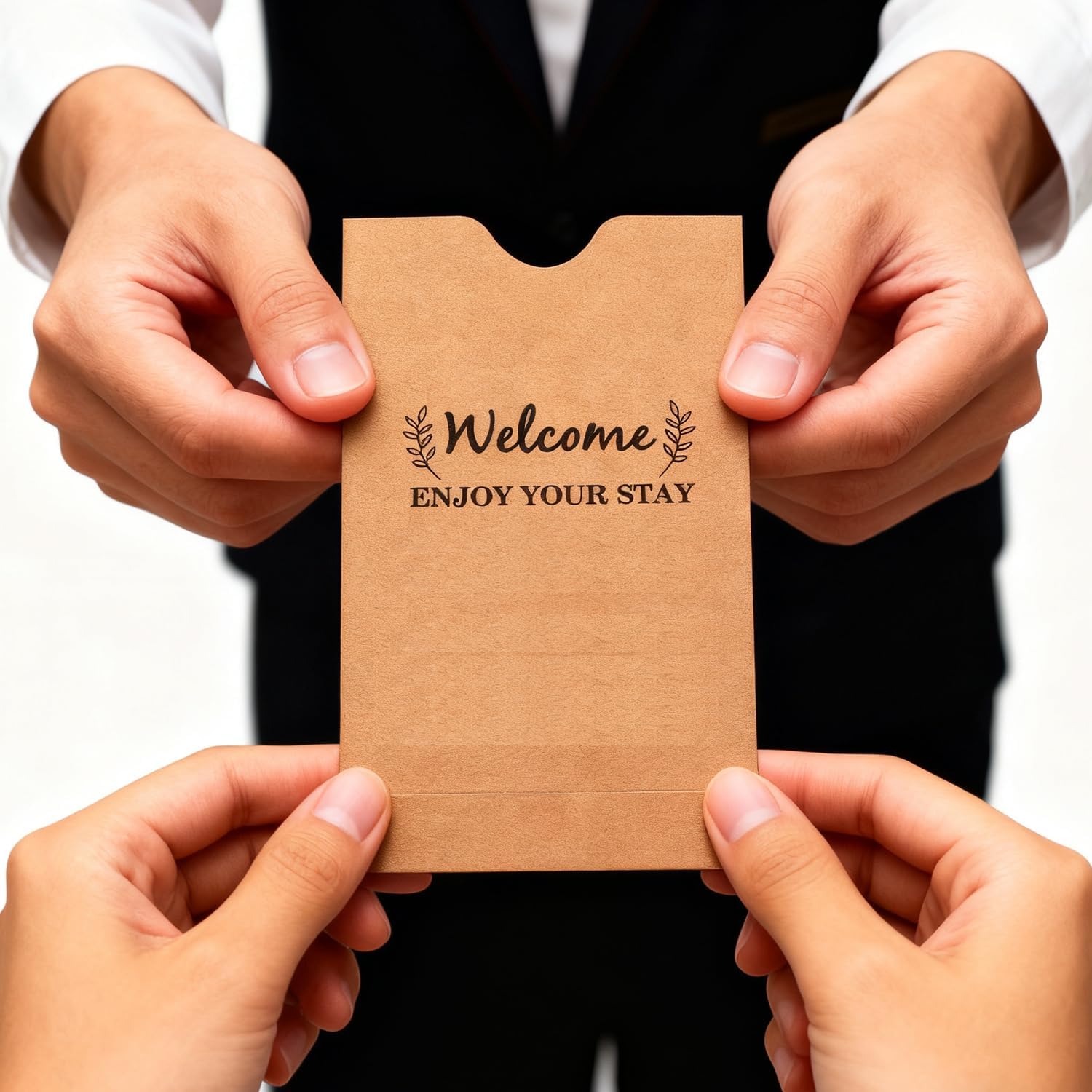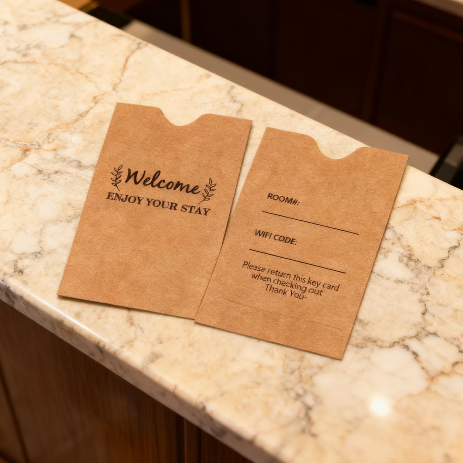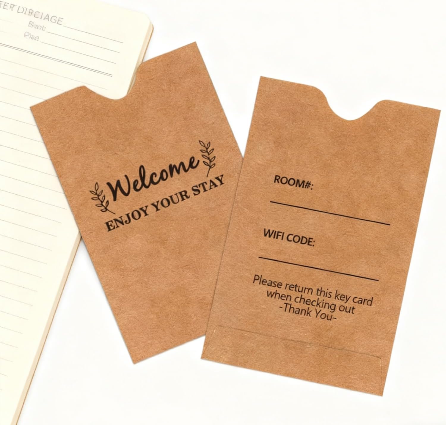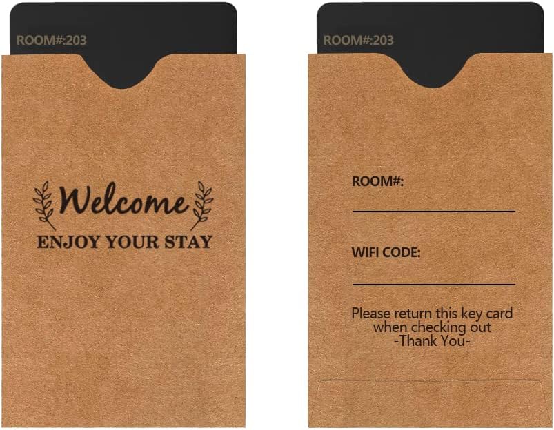1. Utilizzare queste custodie protettive per carte di credito per contenere le chiavi dell'hotel e le carte di viaggio. 2. Queste custodie per carte sono adatte per le chiavi dell'hotel, che stampano con "benvenuto, goditi il tuo soggiorno", fa una buona impressione al cliente. 3. Busta per keycard Goditi il tuo soggiorno Hotel Key Card Buste per hotel e motel, benvenuti ospiti. 4. Buste di benvenuto con design unico, che possono scrivere la stanza # e codice Wi-Fi. 5. Ogni custodia misura 90 x 60 mm, fornisce la copertura necessaria per le carte. Riceverai 200 protezioni per keycard.