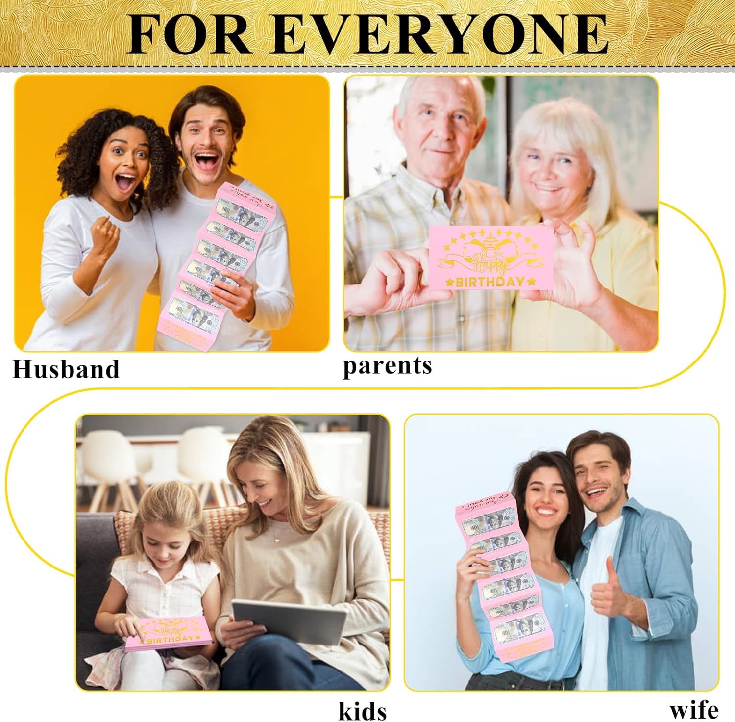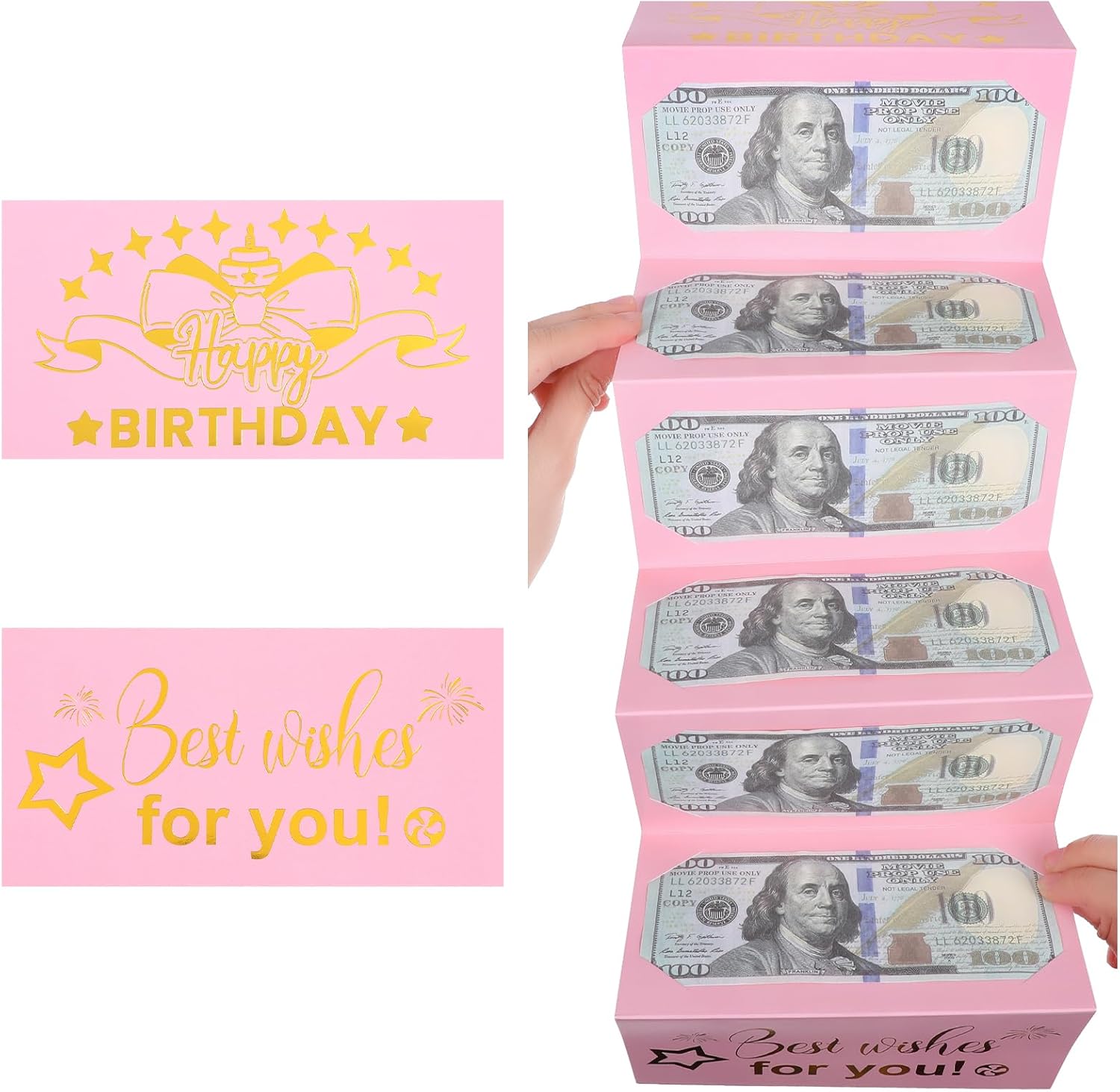 Elegante design "Happy Birthday": decorato con scritta "Happy Birthday" dal design intricato in una lussuosa tonalità oro sulla parte anteriore, questo biglietto cattura l'attenzione e trasmette uno spirito festivo e gioioso ad ogni curva e fiorita. Carta regalo a sorpresa: dotata di 6 slot per contanti, questa carta consente di inserire denaro, trasformandolo in una deliziosa sorpresa. Immagina la gioia della tua famiglia o degli amici mentre scoprono il tesoro nascosto all'interno della festa, lasciando un'impressione duratura. Perfetto per qualsiasi festa di compleanno: che tu stia celebrando un compleanno importante o sorprendi una persona cara, questo biglietto è una scelta eccellente per compleanni di tutte le età, dai sedici ai novant'anni. Un ricordo caro: più di un semplice biglietto, è un ricordo destinato ad essere apprezzato per anni. Il design elegante combinato con un regalo in denaro lo trasforma da semplice saluto a prezioso ricordo della tua premura e generosità. Ideale per tocchi personali: l'ampio spazio all'interno del biglietto è perfetto per aggiungere le tue parole, rendendolo un'ottima scelta per coloro che desiderano aggiungere un tocco personale ai propri saluti. Il cartoncino di alta qualità garantisce che il tuo messaggio venga presentato nel miglior modo possibile.