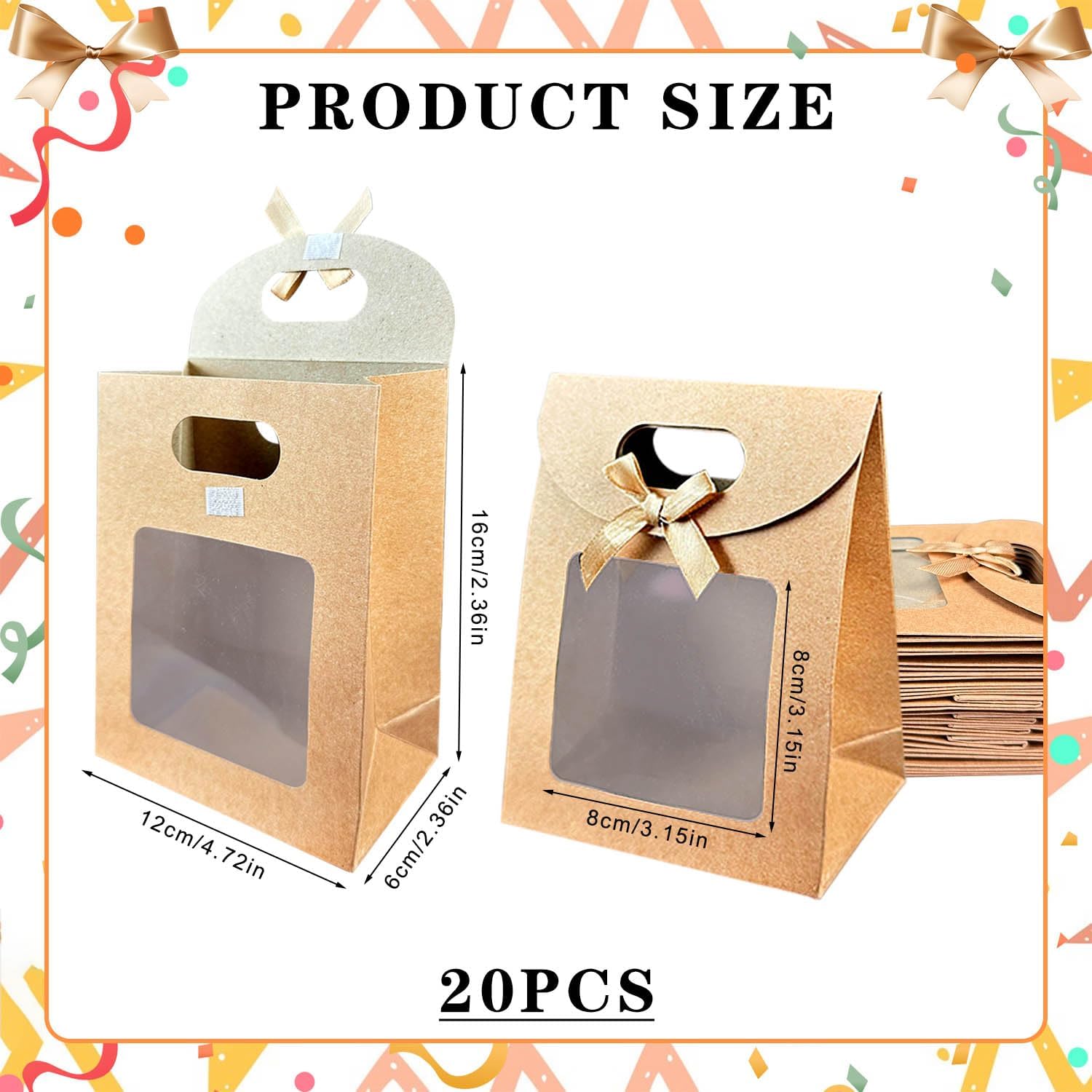 【Materiale di alta qualità】 I sacchetti regalo con finestra trasparente sono realizzati in carta kraft di alta qualità, resistente e spessa, non facile da strappare, elegante e bella e può essere riutilizzata a lungo. Le nostre scatole regalo con finestra sono ripiegabili per risparmiare spazio e sono riciclabili dopo ogni utilizzo. 【Pacchetto incluso】Riceverai 20 sacchetti regalo con finestra di visualizzazione, che misurano 16 x 12 x 6 cm, facili da piegare e riporre. Ogni sacchetto di carta con finestra ha un bellissimo fiocco decorativo, perfetto come sacchetto per confezioni regalo. 【Design umanizzato】 I sacchetti regalo con finestra di visualizzazione presentano un design a finestra trasparente, che rende più facile vedere gli oggetti all'interno e rende più facile per gli altri mostrare i tuoi sentimenti. Inoltre, la base rettangolare assicura che la borsa stessa e tutto ciò che contiene rimanga in posizione verticale. La borsa è dotata di maniglie per un facile trasporto. 【Creatività fai da te】 I nostri sacchetti regalo per finestra sono senza motivi aggiuntivi, puoi realizzarli tu stesso, puoi rendere la borsa unica dipingendo, stampando, adesivi e varie decorazioni per renderla piena di personalità. 【Ampia gamma di usi】 Il sacchetto regalo con finestra è adatto per confezionare dolci, cioccolatini, gioielli e regali. Adatto per matrimoni, compleanni, feste, celebrazioni, Natale e altri festival.