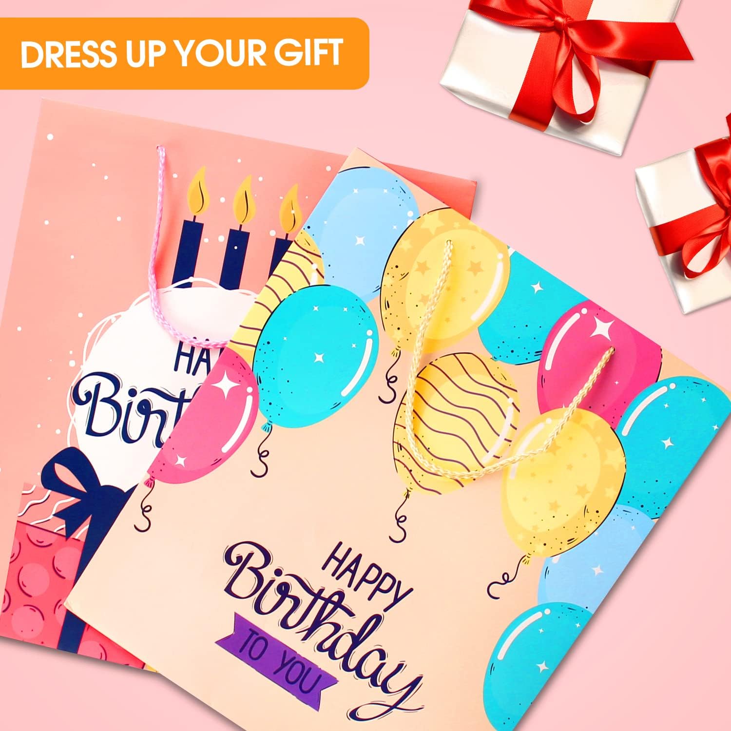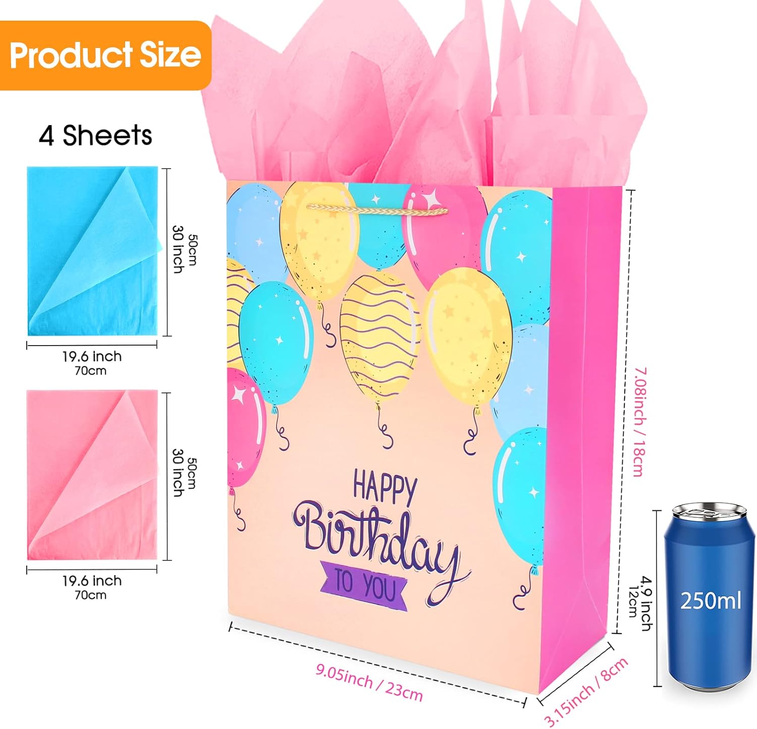 【Sacchetti regalo】: L'acquisto di sacchetti regalo di medie dimensioni contiene 2 pacchetti di sacchetti regalo di compleanno con carta velina GRATUITA (2 blu e 2 rosa), sacchetti regalo colorati e robusti per feste, realizzati in cartone ecologico. Ideale per confezionare un regalo o conservare oggetti. 【Misure】: sacchetto regalo di medie dimensioni con rosa singola, 230 mm di altezza, 180 mm di larghezza e 80 mm di profondità, totale 2 confezioni di sacchetti regalo di carta con manici. 4 fogli di carta velina da 700mm la dimensione adatta alla tua confezione regalo. 【Design unico】: confezione regalo ecologica con design misto di palloncini per torta, abbinato a un sacchetto di carta regalo visivo semplice e generoso, il design multiuso rende questi sacchetti regalo di carta disponibili per sacchetti di compleanno/sacchetti per feste/sacchetti di carta, adatti per molte occasioni tra cui feste di compleanno, baby shower, celebrazioni e così via. 【Ampio utilizzo】: i sacchetti di compleanno per uso quotidiano sono disponibili in divertenti design pastello che sono perfetti. per donne, ragazze, ragazze, bambini, bambini per compleanni, feste, congratulazioni, vacanze, baby shower, Natale, Capodanno e altri regali da confezionare. 【GARANZIA DI RIMBORSO AL 100%】: Garantiamo la qualità della bella borsa regalo rosa.