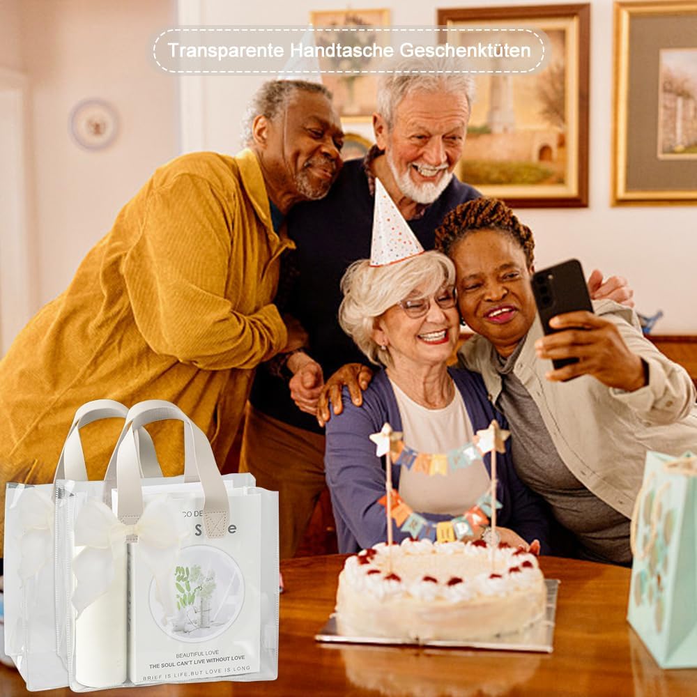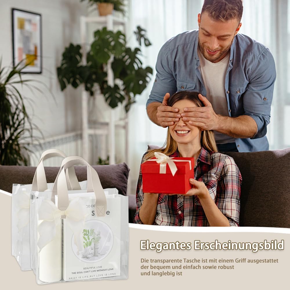 Il pacchetto include: riceverai 2 sacchetti regalo trasparenti con manici. Borsa trasparente con 2 anelli, la borsa regalo trasparente misura 23*14*25 cm Materiale di qualità: questa borsa trasparente è realizzata in materiale PVC di alta qualità, robusto e durevole Pratico da trasportare: le maniglie larghe e robuste consentono di trasportare comodamente la borsa regalo senza causare spiacevoli pizzicature Facile da trasportare: la borsa regalo trasparente con manici è leggera e facile da trasportare, molto comoda sia per l'uso quotidiano che per i regali di festa Ampiamente utilizzata: questa borsa trasparente è adatta per molte occasioni, che si tratti di una festa di compleanno, di una festa o di un regalo aziendale, può mostrare il tuo gusto e l'attenzione ai dettagli