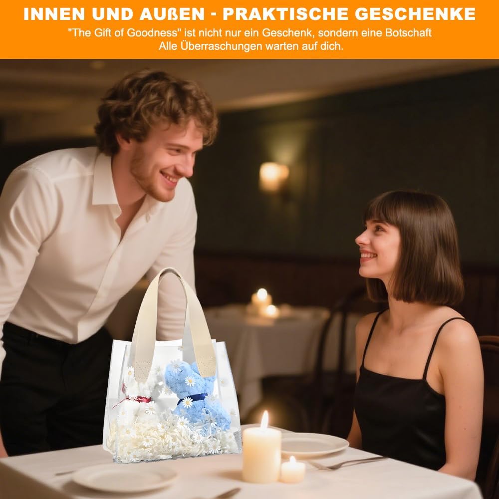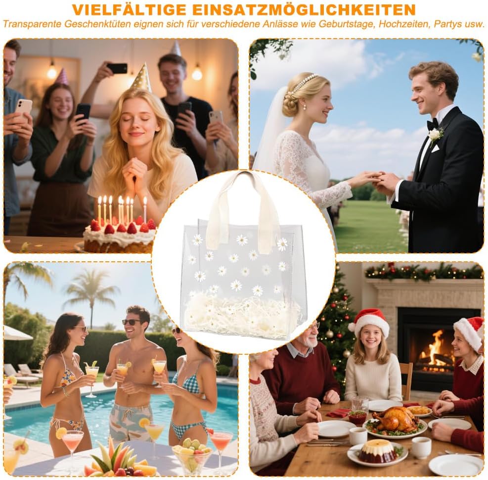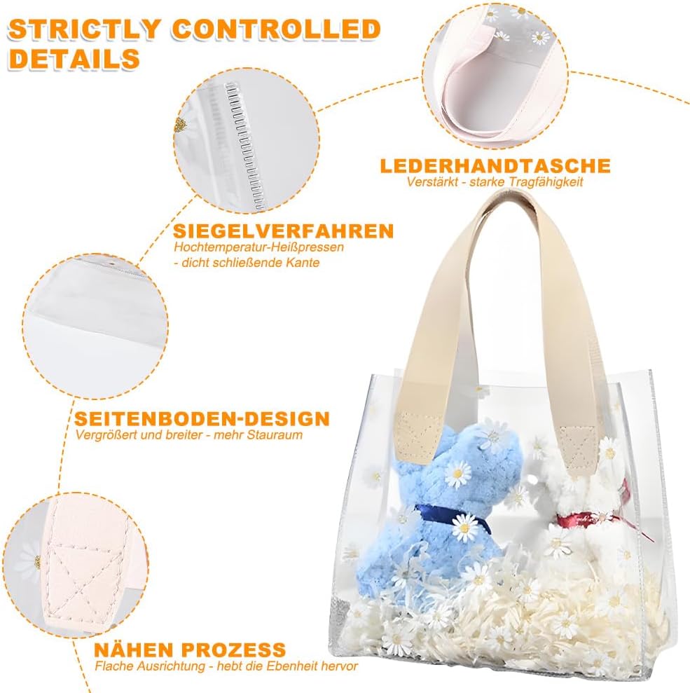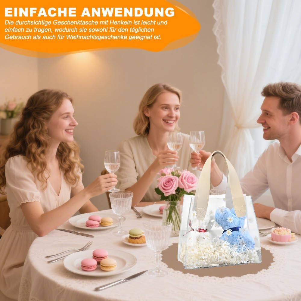 Il pacchetto include: riceverai 2 sacchetti regalo trasparenti con manici. Borsa trasparente con 2 anelli, la borsa regalo trasparente misura 23*14*25 cm Materiale di qualità: questa borsa trasparente è realizzata in materiale PVC di alta qualità, robusto e durevole Pratico da trasportare: le maniglie larghe e robuste consentono di trasportare comodamente la borsa regalo senza causare spiacevoli pizzicature Facile da trasportare: la borsa regalo trasparente con manici è leggera e facile da trasportare, molto comoda sia per l'uso quotidiano che per i regali di festa Ampiamente utilizzata: questa borsa trasparente è adatta per molte occasioni, che si tratti di una festa di compleanno, di una festa o di un regalo aziendale, può mostrare il tuo gusto e l'attenzione ai dettagli