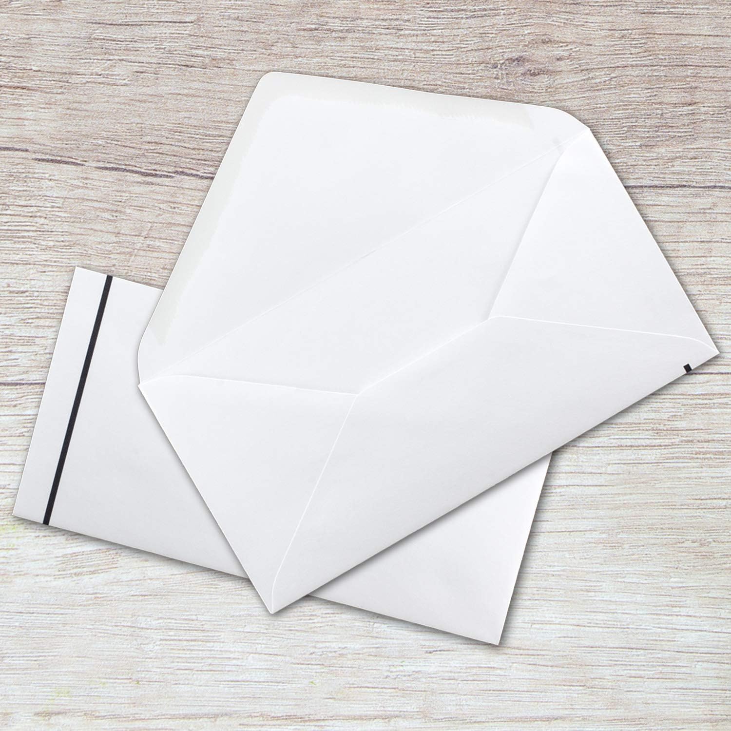 Scegli il formato e la quantità desiderati. Ideale per l'invio di annunci di lutto, biglietti di condoglianze e inviti per funerali Con classico tratto nero sulla parte anteriore Buste di carta, colore: bianco, grammatura: 90 g/m², formato: DIN lungo 110 x 220 mm (11 x 22 cm), con incollaggio a umido con gommatura, senza finestra, lembo a punta Superficie verniciata opaca, non a specchio Contenuto: 50 buste, produzione e vendita dalla Germania, Gustav Neuser, professionisti dei biglietti e della carta da oltre 100 anni
