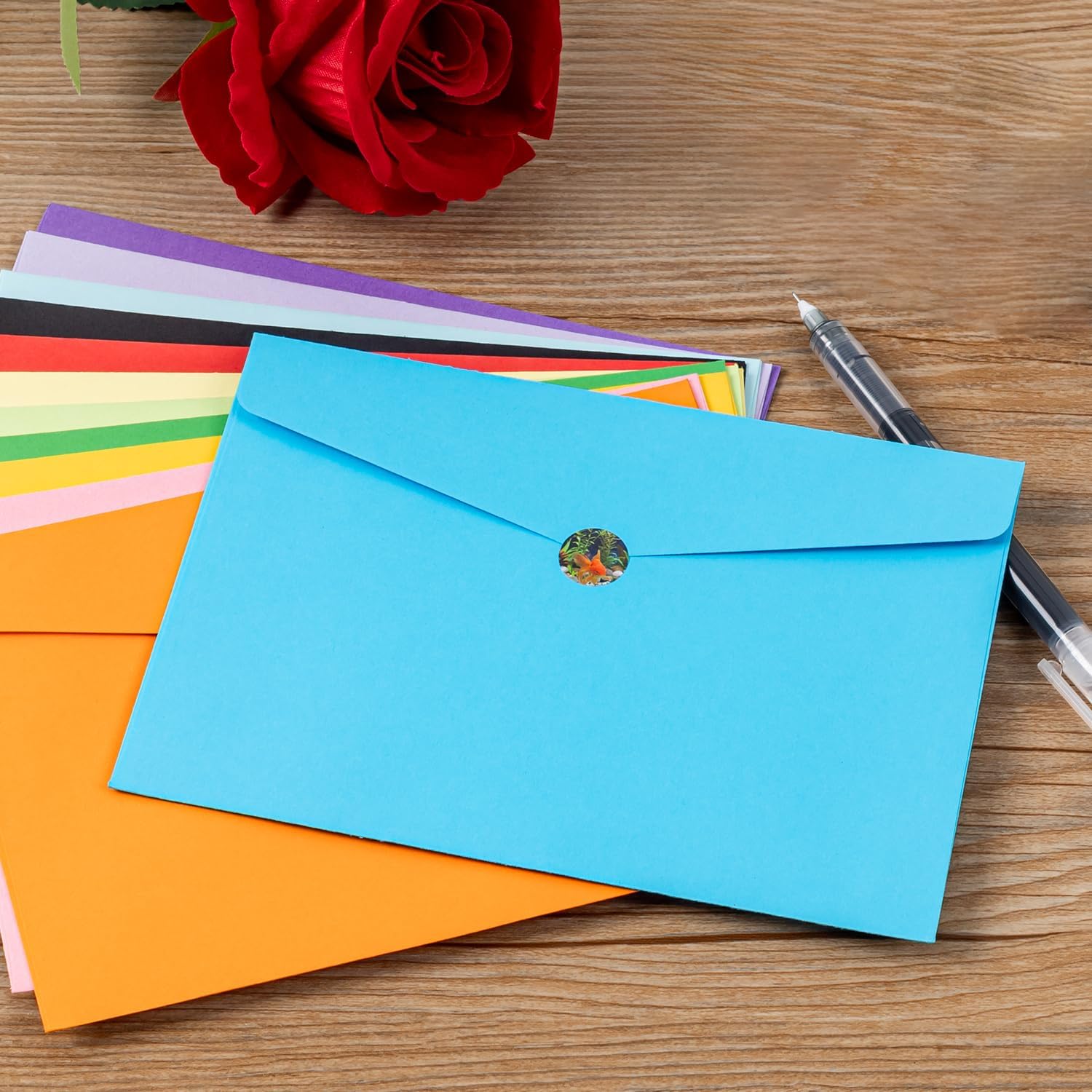 Materiali di Alta Qualità: Queste buste colorate sono realizzate in carta da lettere di alta qualità, riciclabile e che non si strappa facilmente; lo spessore delle diverse buste colorate può variare leggermente ma non influisce sull'utilizzo, sono tutte ugualmente resistenti e non c'è bisogno di preoccuparsi dello sbiadimento. Perfette per le Lettere: Sono vuote su entrambi i lati, quindi potete usare la vostra immaginazione per creare una busta fai-da-te diversa; le buste colorate sono perfette anche per avvolgere e spedire biglietti di ringraziamento, inviti, cartoline, biglietti d'auguri, lettere, fatture, assegni, foto e altro ancora. Formato Busta Adatto: Tutte le buste colorate misurano 17,5*12,5 cm, un formato abbastanza grande per contenere più cose e naturalmente perfetto per spedire le lettere ovunque vengano inviate. Adesivi Graziosi: Ci sono due dimensioni di adesivi, 27 stili e un totale di 81 piccoli adesivi, che possono essere utilizzati sia come chiusura della busta che come decorazione della busta, in modo da poter personalizzare la busta a piacimento. Cosa Riceverete: Riceverete 72 buste, di cui 12 colori in totale, con 3 adesivi identici. Queste buste colorate porteranno il buonumore ai vostri amici e potrete condividere la gioia con i vostri amici.