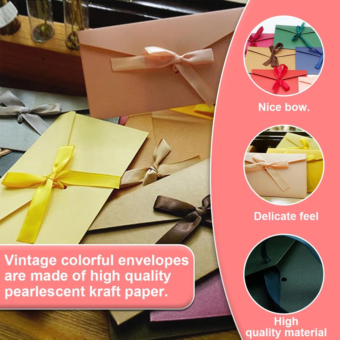 Quantità: 12 buste colorate, 12 colori in totale, quantità sufficiente e colori diversi per soddisfare il tuo uso quotidiano. Stile nastro: un totale di 12 buste squisite. Diversamente dalle buste ordinarie, ciascuna delle nostre buste è dotata di un nastro che può legare un bellissimo fiocco sulla superficie della busta, rendendola più bella e strutturata. Materiale: le buste dai colori retrò sono realizzate in carta kraft perlescente di alta qualità. La carta è spessa e ruvida, ha una sensazione delicata al tatto, è liscia e di alta qualità, robusta e durevole, ha una buona sensazione al tatto ed è resistente agli strappi. Non è necessario preoccuparsi di danneggiare la busta durante l'invio. Alta qualità: le buste sono realizzate in carta perlata di alta qualità, atossica ed ecologica, la carta è liscia e confortevole al tatto. Il colore è brillante e brillante, non sbiadisce, materiale di alta qualità, trama retrò, puoi scegliere con sicurezza. Ampiamente usato: queste buste possono essere utilizzate per tutte le occasioni, come compleanni, lettere di ringraziamento, ricevimenti di nozze, San Valentino, baby shower, lauree, riunioni di lavoro, ecc., così come normali lettere personali, abbiamo abbastanza colori e quantità per soddisfare le vostre diverse esigenze.